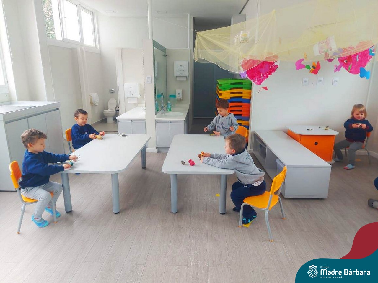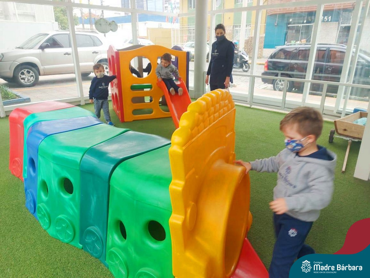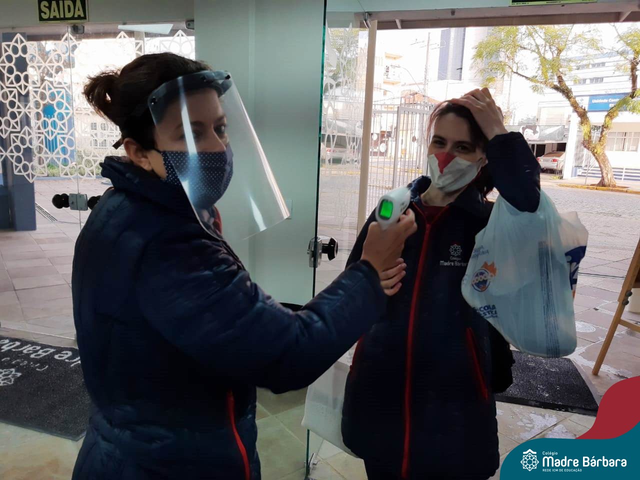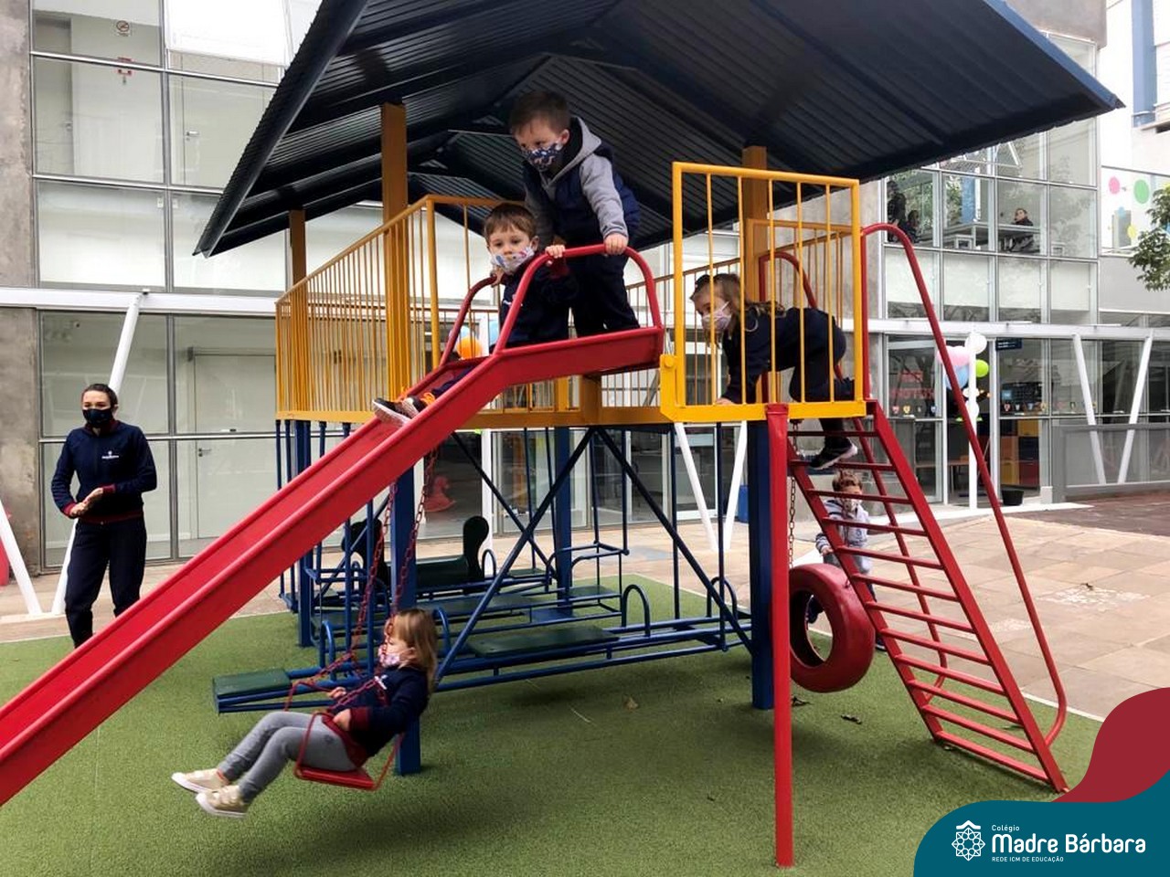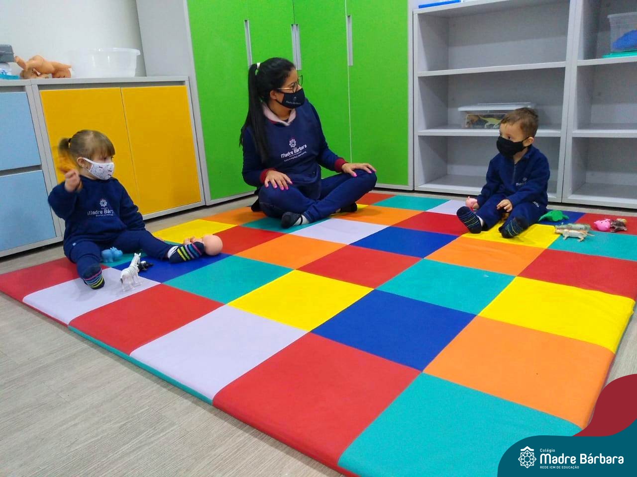 Nesta terça-feira (15) o Colégio Madre Bárbara – Rede ICM retornou com os atendimentos presenciais na Educação Infantil. Com todos os protocolos, medidas e cuidados de higiene e segurança, 184 crianças estão retornando para a escola. Destas, farão revezamento em dois grupos (A – segunda, terça e quarta-feira e B – quinta e sexta-feira), preenchendo 50% da capacidade da sala. O Colégio conta com equipes responsáveis pelo fluxo de entrada e saída, com checklist de aferição da temperatura, conferência do uso correto de máscaras, higienização dos pés no tapete sanitizante e limpeza das mãos com álcool gel.