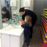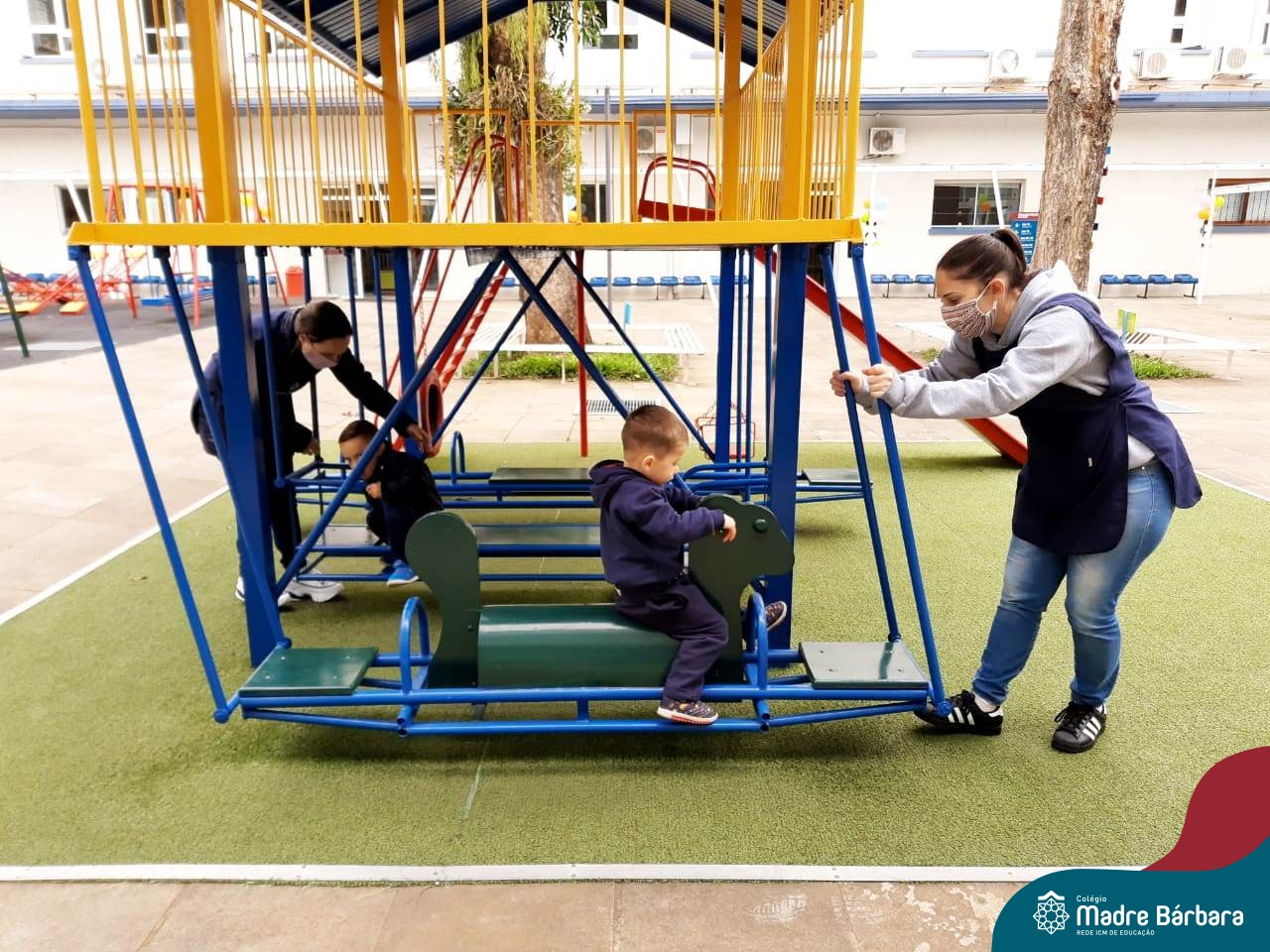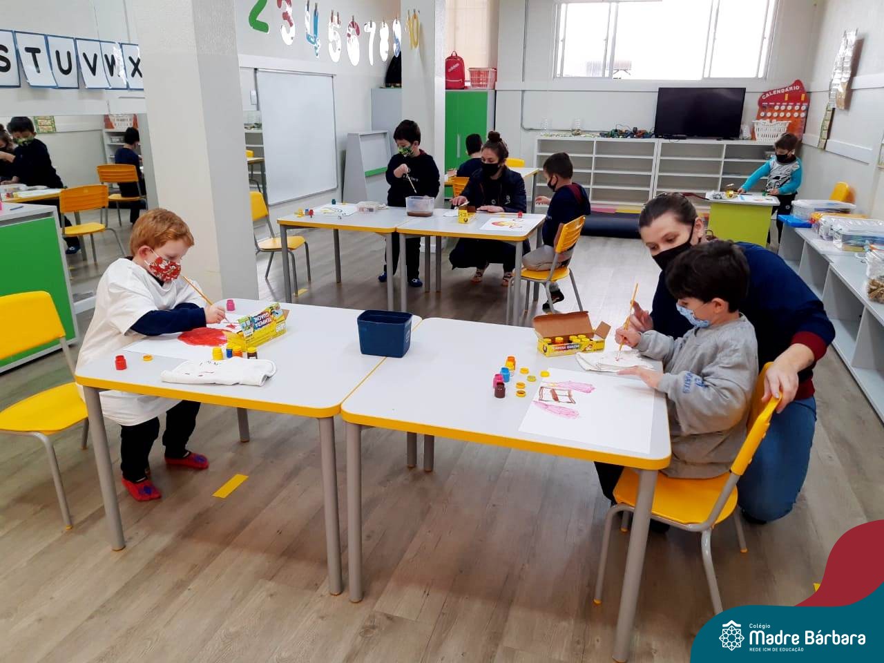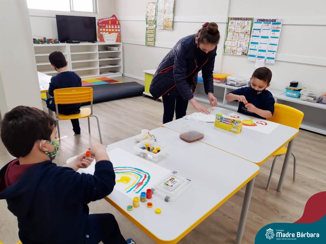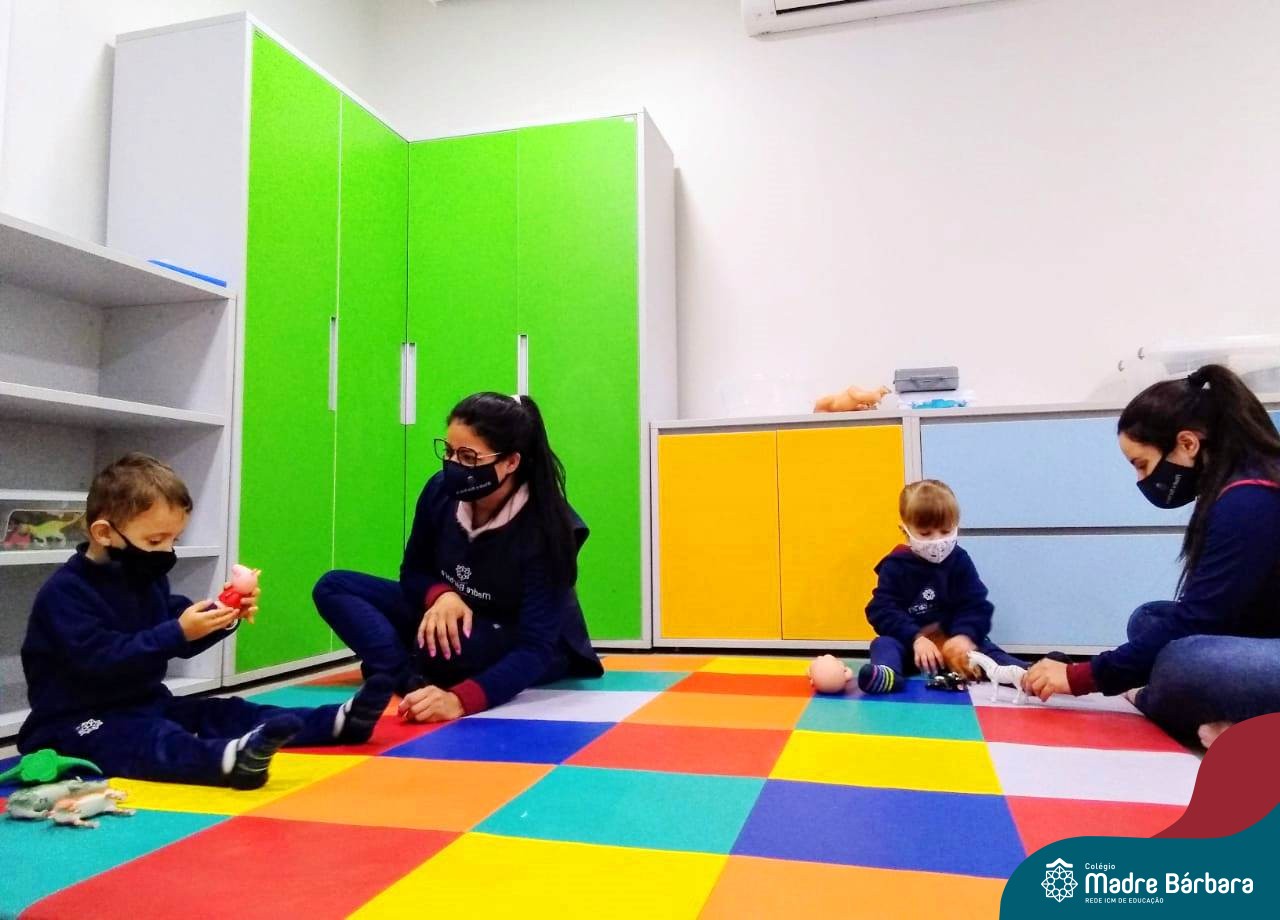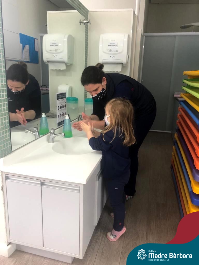 Nesta terça-feira (15) o Colégio Madre Bárbara – Rede ICM retornou com os atendimentos presenciais na Educação Infantil. Com todos os protocolos, medidas e cuidados de higiene e segurança, 184 crianças estão retornando para a escola. Destas, farão revezamento em dois grupos (A – segunda, terça e quarta-feira e B – quinta e sexta-feira), preenchendo 50% da capacidade da sala. O Colégio conta com equipes responsáveis pelo fluxo de entrada e saída, com checklist de aferição da temperatura, conferência do uso correto de máscaras, higienização dos pés no tapete sanitizante e limpeza das mãos com álcool gel.