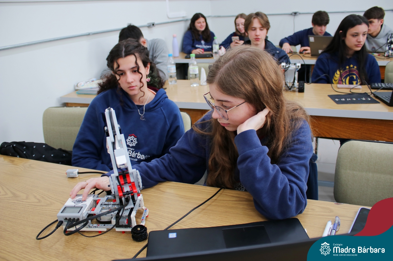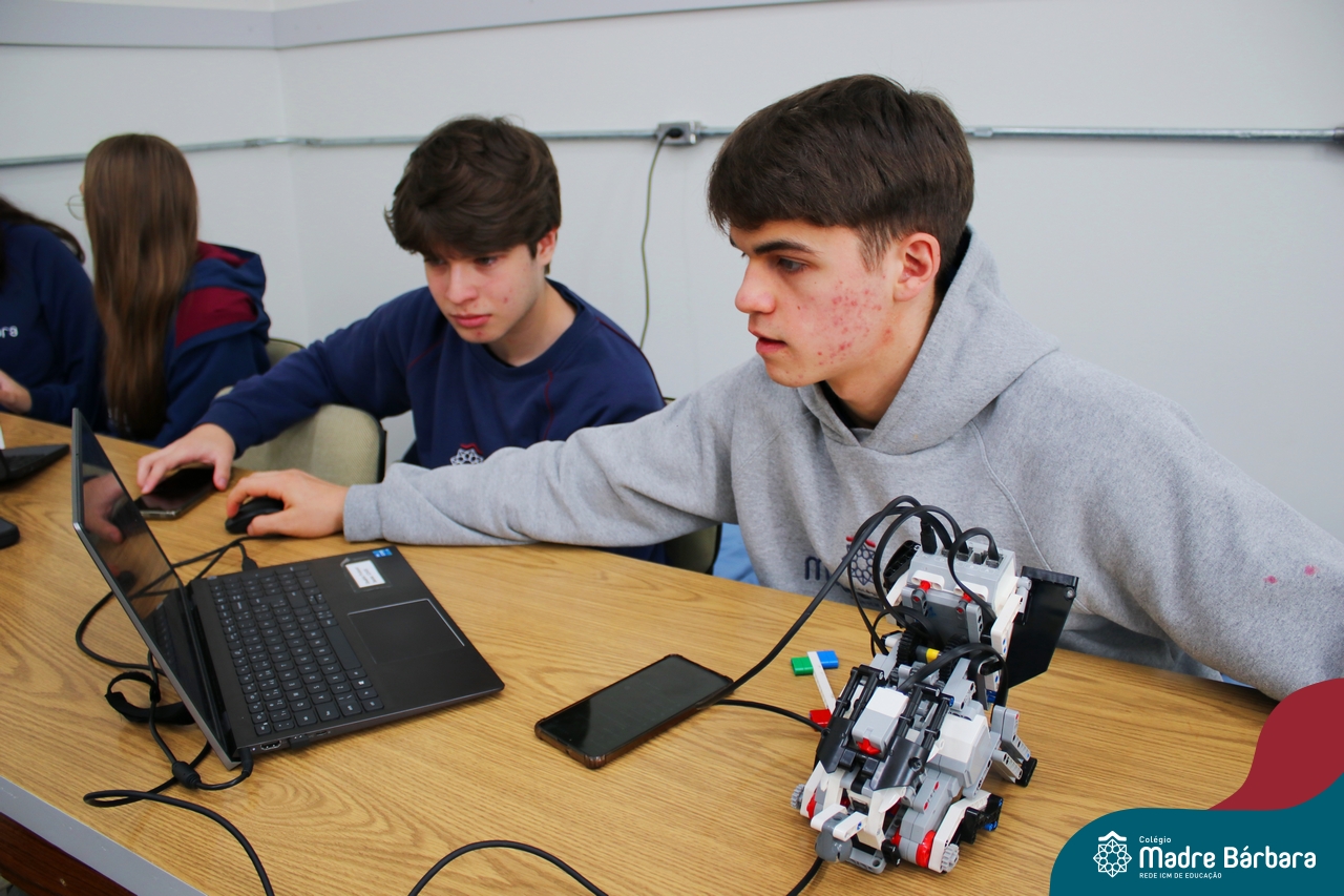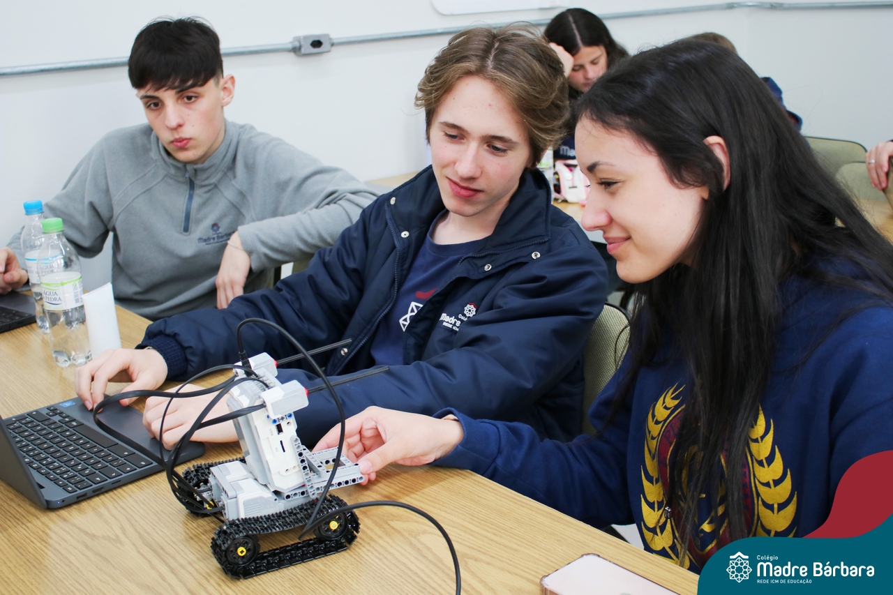 Para aprender conceitos relacionados a linguagem de programação, o grupo de estudantes da Eletiva de Gamificação foram desafiados a construir um protótipo, utilizando o kit Lego EV3 e posteriormente, programá-lo. Foram três projetos distintos, os quais permitiram aos alunos analisar, experimentar, resolver situações problema e trabalhar em equipe. Uma vivência que permite buscar soluções de forma prática, aplicando conhecimento e enfatizando o protagonismo. Essa é uma das propostas do Novo Ensino Médio do Colégio Madre Bárbara.