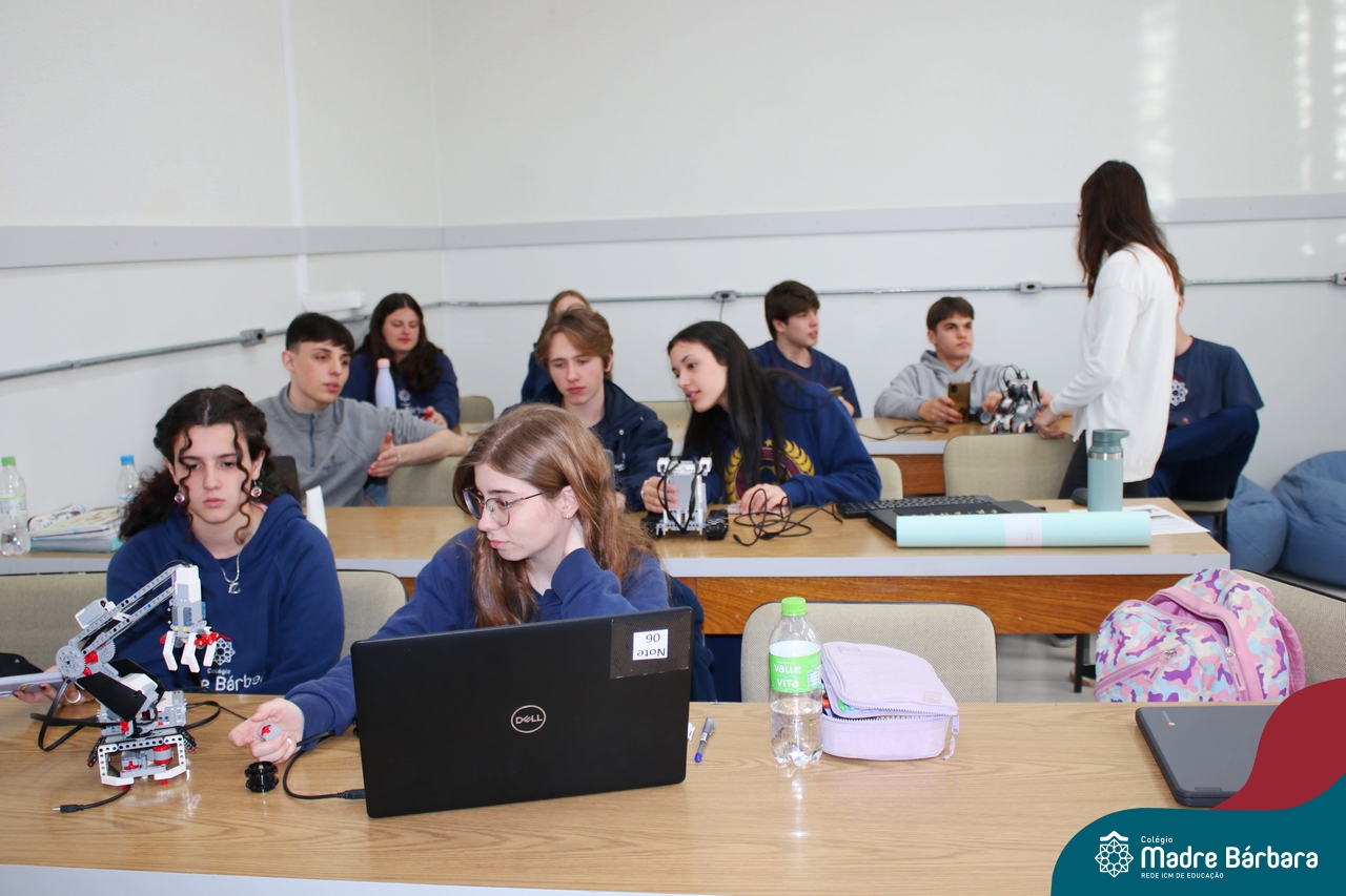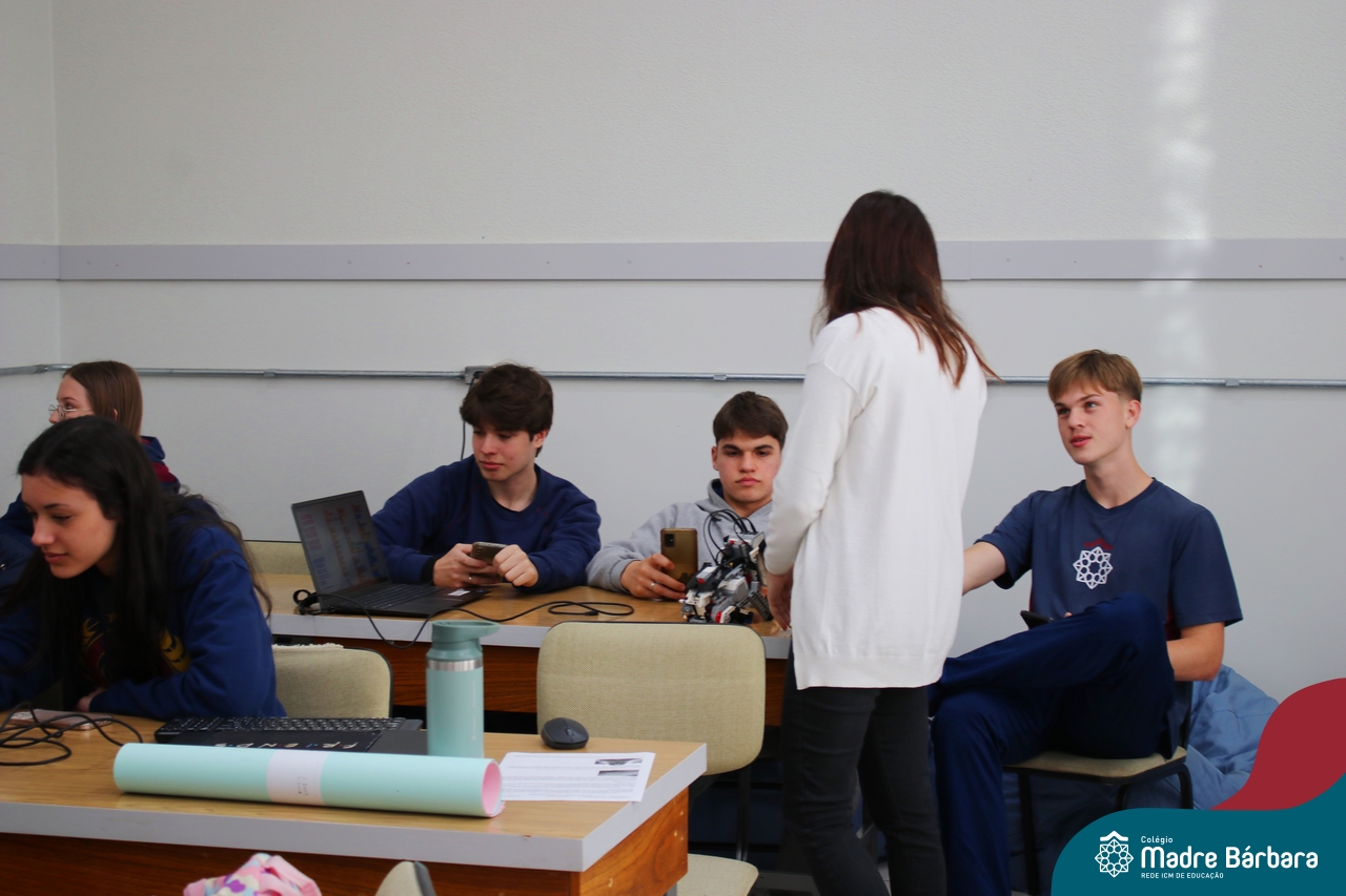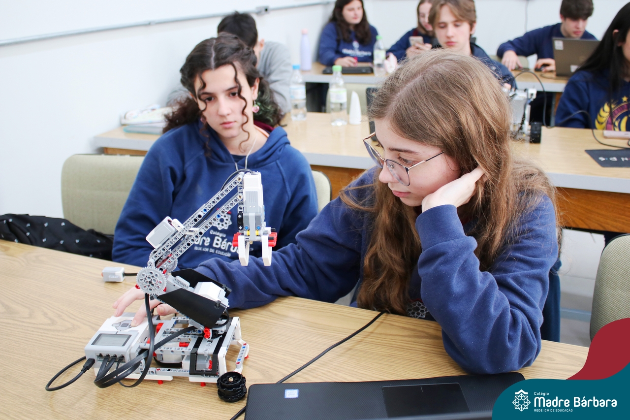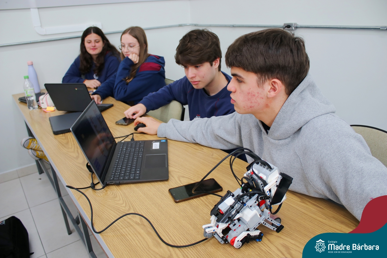 Para aprender conceitos relacionados a linguagem de programação, o grupo de estudantes da Eletiva de Gamificação foram desafiados a construir um protótipo, utilizando o kit Lego EV3 e posteriormente, programá-lo. Foram três projetos distintos, os quais permitiram aos alunos analisar, experimentar, resolver situações problema e trabalhar em equipe. Uma vivência que permite buscar soluções de forma prática, aplicando conhecimento e enfatizando o protagonismo. Essa é uma das propostas do Novo Ensino Médio do Colégio Madre Bárbara.