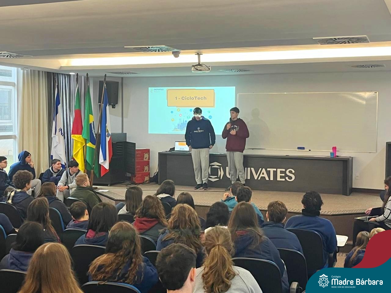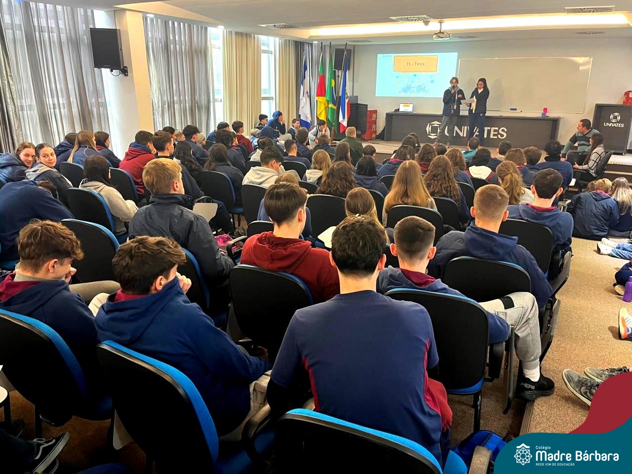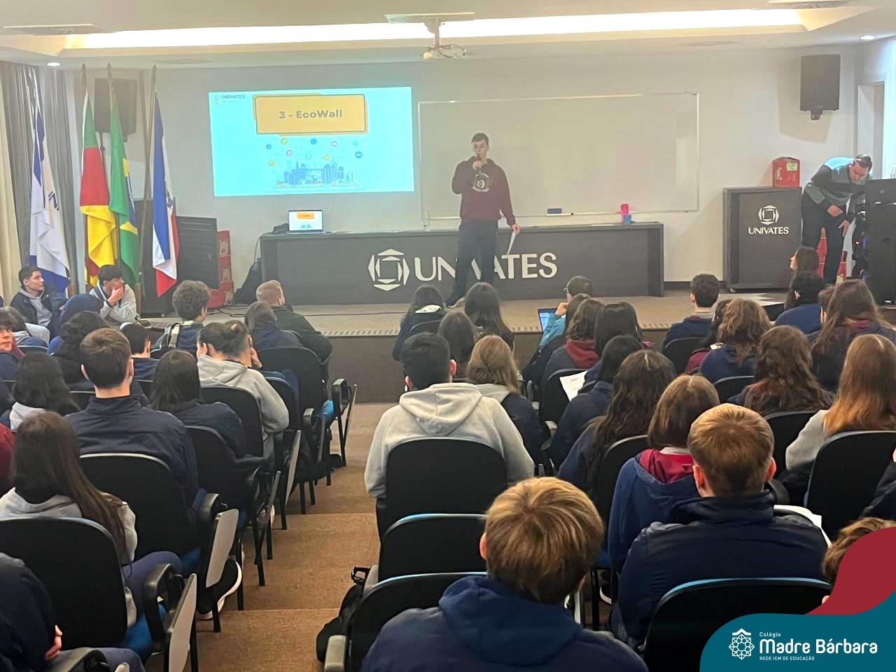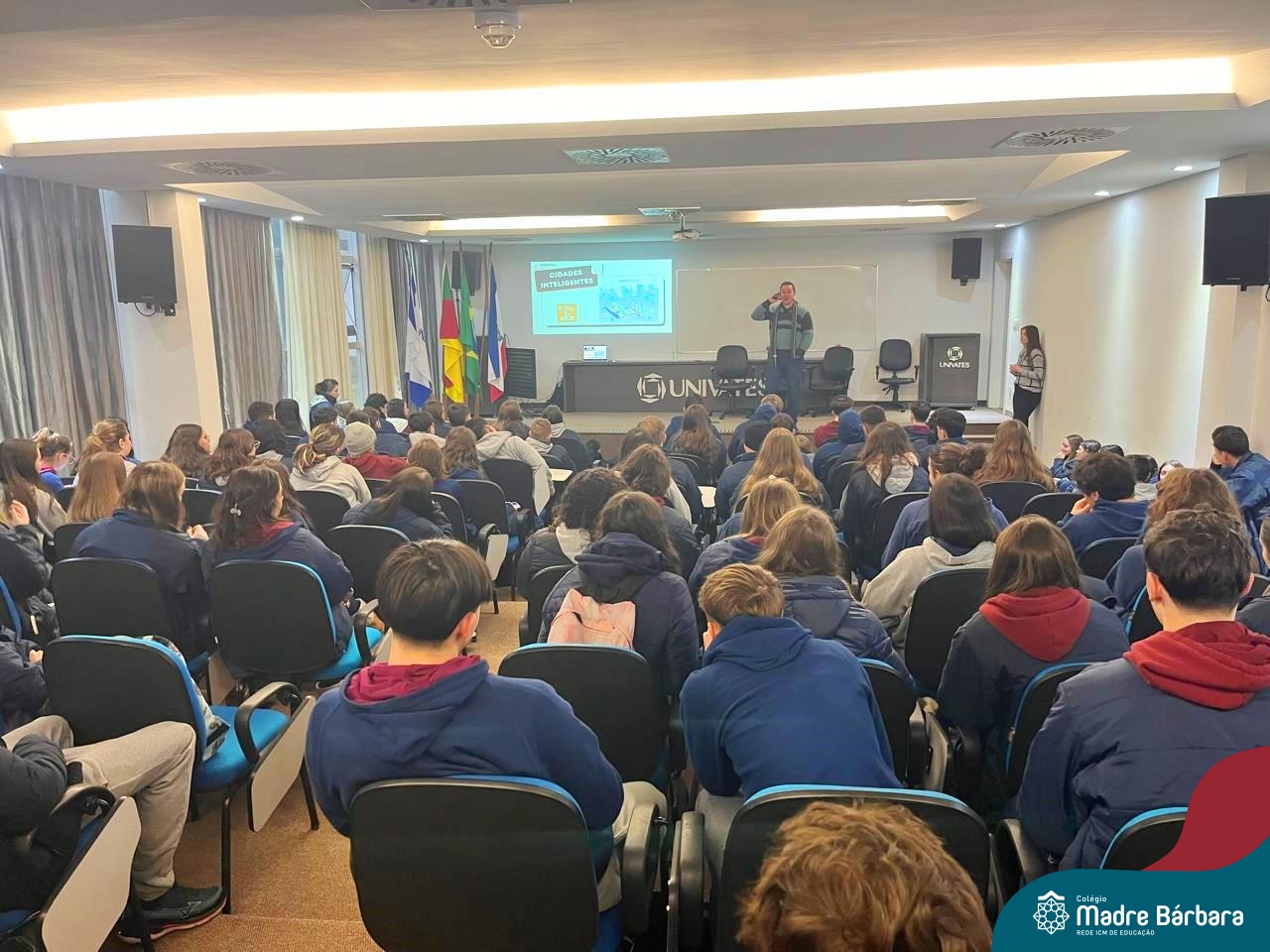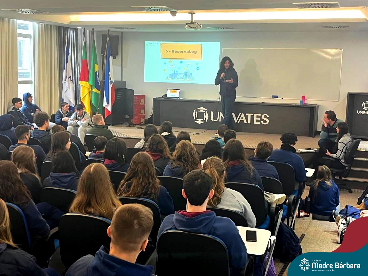 Os estudantes do Ensino Médio realizaram, na manhã de quinta-feira (11.07) uma atividade do Programa de Orientação Profissional junto ao Parque Científico e Tecnológico do Vale do Taquari (TECNOVATES). No encontro, foram recepcionados pelo coordenador da Inovates, Michel Machado e foram trabalhadas questões ligadas ao empreendedorismo, inovação e resolução de problemas. Foi proposto que, em grupos, criassem projetos que solucionassem problemas utilizando a temática cidades inteligentes. Após as apresentações para banca convidada, houve premiação para os projetos destaque. Parabenizamos nossos estudantes pela dedicação e por se comprometerem com projetos criativos e inovadores!