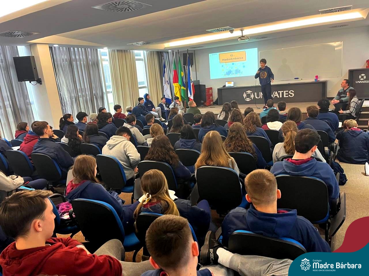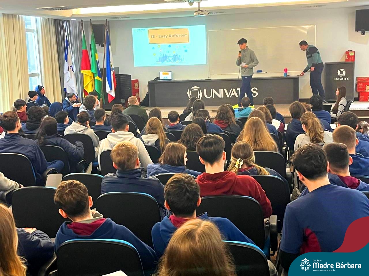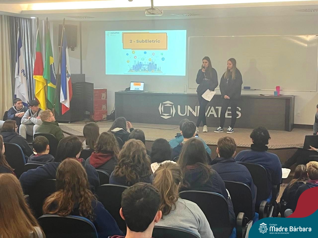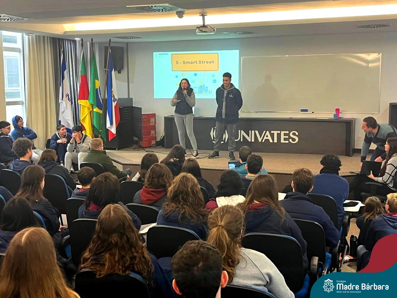 Os estudantes do Ensino Médio realizaram, na manhã de quinta-feira (11.07) uma atividade do Programa de Orientação Profissional junto ao Parque Científico e Tecnológico do Vale do Taquari (TECNOVATES). No encontro, foram recepcionados pelo coordenador da Inovates, Michel Machado e foram trabalhadas questões ligadas ao empreendedorismo, inovação e resolução de problemas. Foi proposto que, em grupos, criassem projetos que solucionassem problemas utilizando a temática cidades inteligentes. Após as apresentações para banca convidada, houve premiação para os projetos destaque. Parabenizamos nossos estudantes pela dedicação e por se comprometerem com projetos criativos e inovadores!