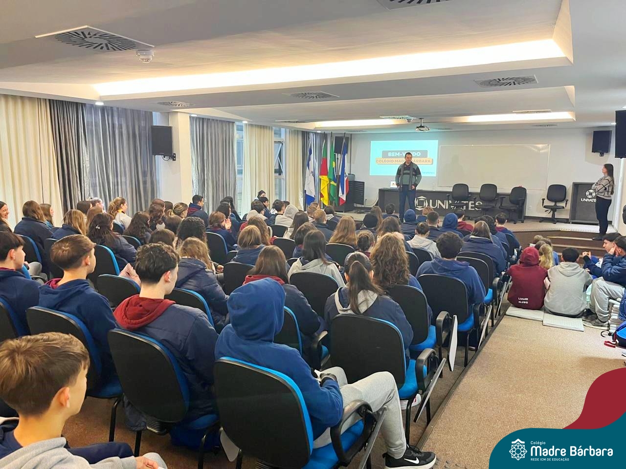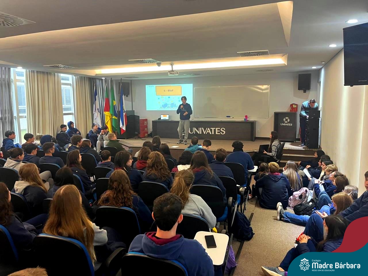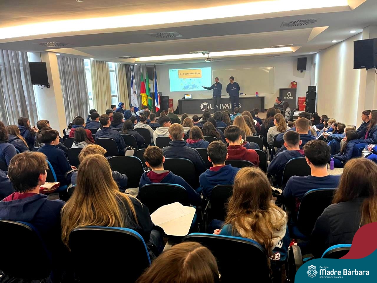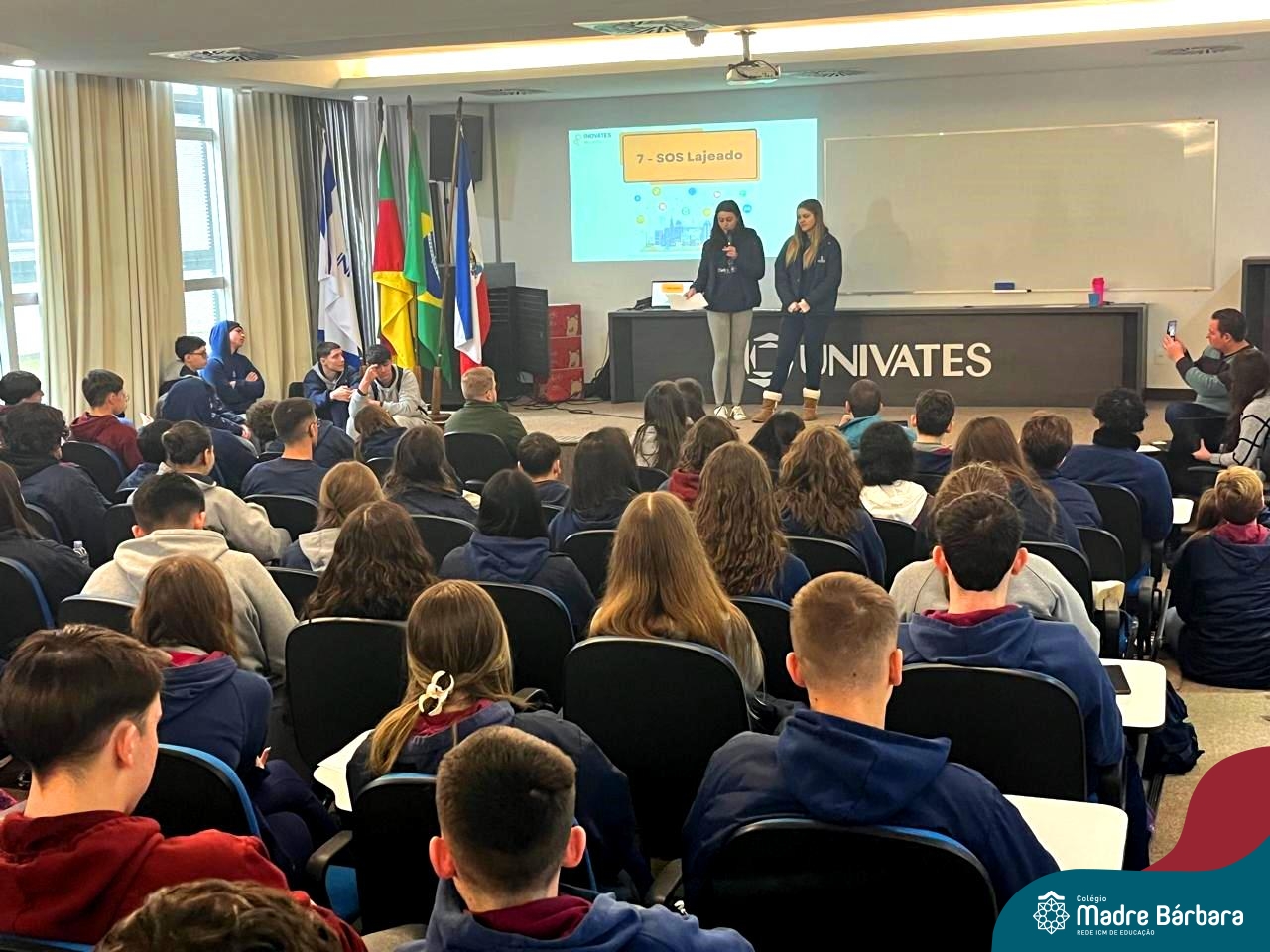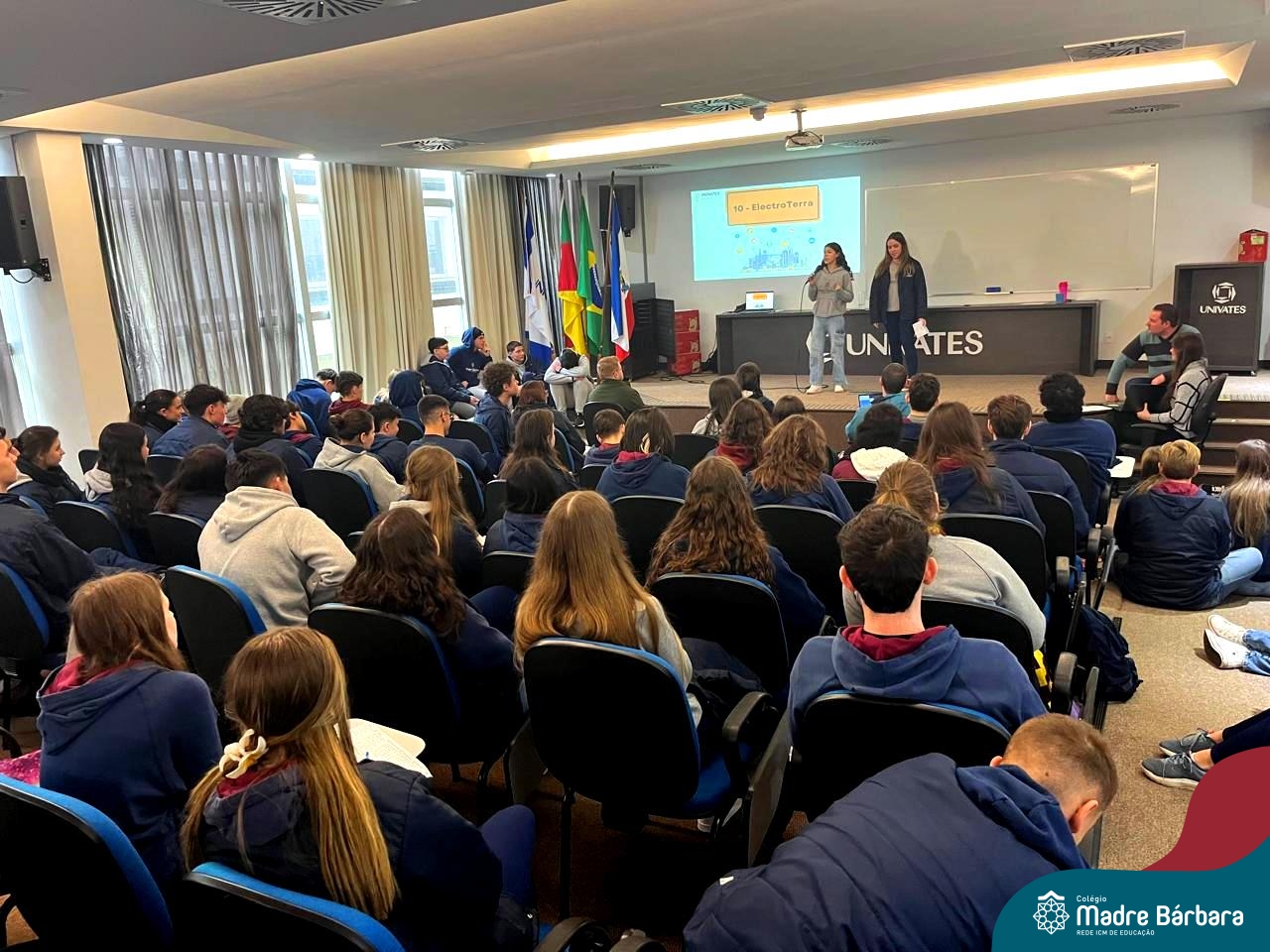 Os estudantes do Ensino Médio realizaram, na manhã de quinta-feira (11.07) uma atividade do Programa de Orientação Profissional junto ao Parque Científico e Tecnológico do Vale do Taquari (TECNOVATES). No encontro, foram recepcionados pelo coordenador da Inovates, Michel Machado e foram trabalhadas questões ligadas ao empreendedorismo, inovação e resolução de problemas. Foi proposto que, em grupos, criassem projetos que solucionassem problemas utilizando a temática cidades inteligentes. Após as apresentações para banca convidada, houve premiação para os projetos destaque. Parabenizamos nossos estudantes pela dedicação e por se comprometerem com projetos criativos e inovadores!