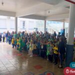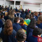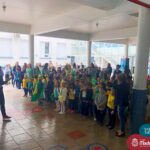 Nesta terça-feira (06.09) representantes dos alunos da Educação Infantil, Anos Iniciais, Anos Finais e Ensino Médio estiveram na área coberta do Colégio Madre Bárbara – Rede ICM para o encerramento das atividades da Semana da Pátria. Alunos dos Anos Iniciais e da Educação Infantil levaram seus trabalhos e apresentaram as intenções/reflexões elaboradas em ala sobre os desejos para o país.