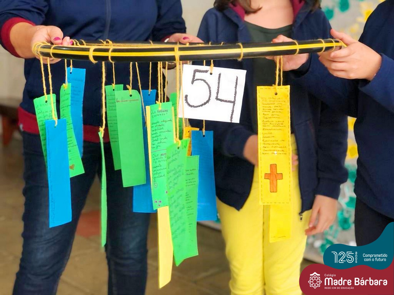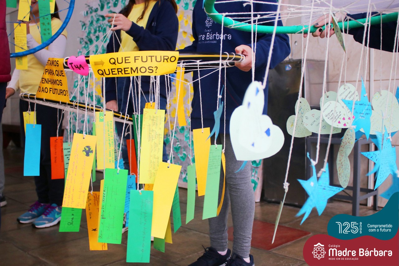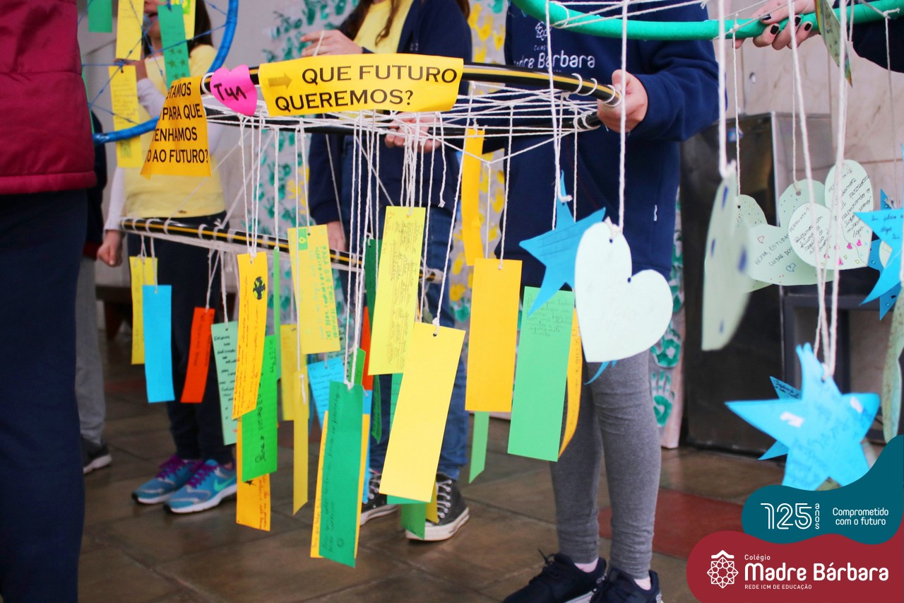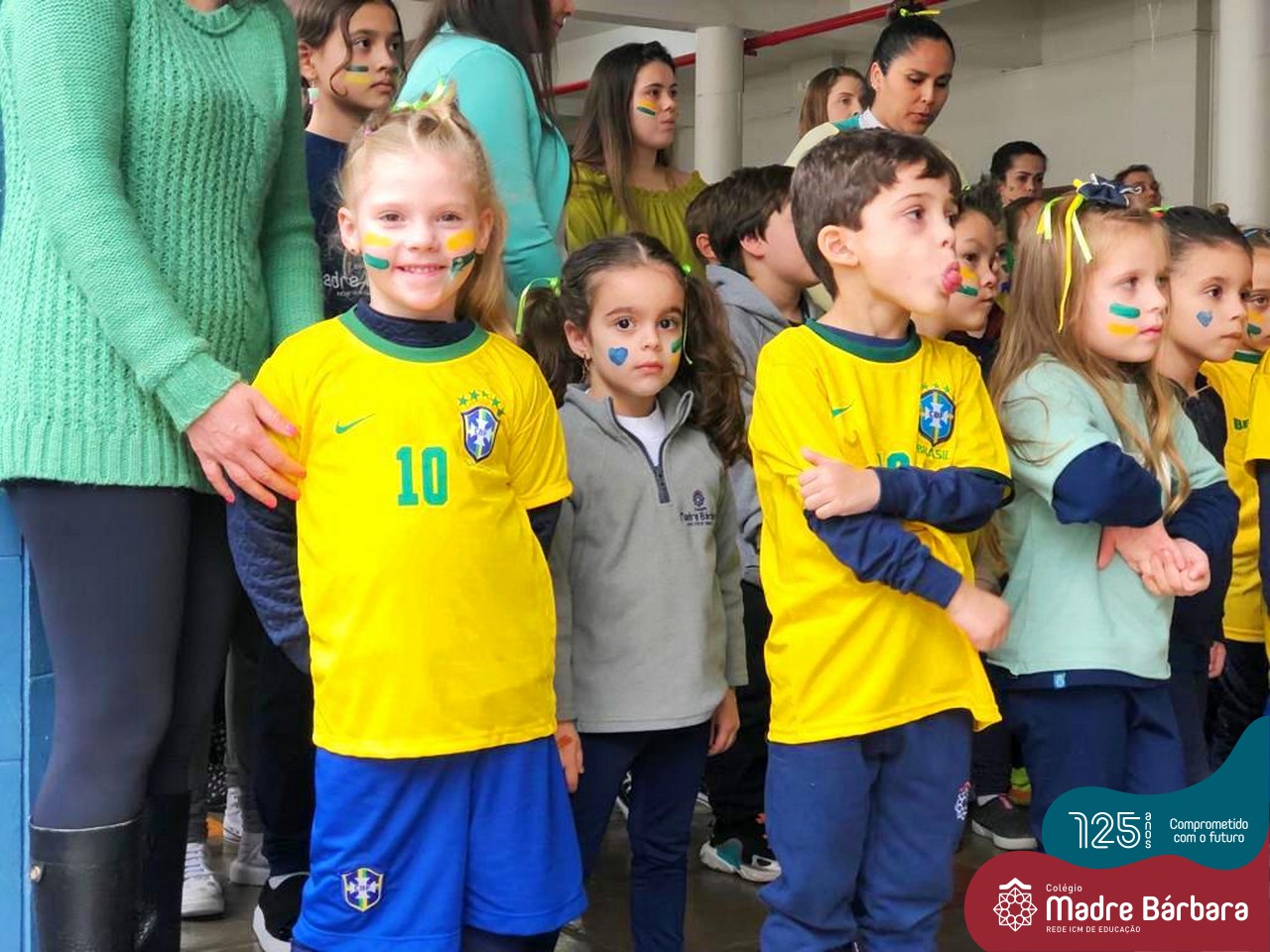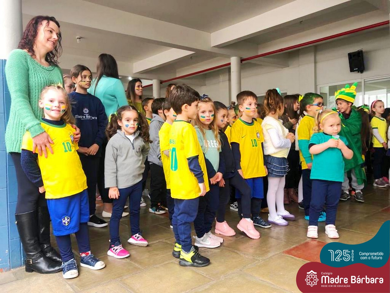 Nesta terça-feira (06.09) representantes dos alunos da Educação Infantil, Anos Iniciais, Anos Finais e Ensino Médio estiveram na área coberta do Colégio Madre Bárbara – Rede ICM para o encerramento das atividades da Semana da Pátria. Alunos dos Anos Iniciais e da Educação Infantil levaram seus trabalhos e apresentaram as intenções/reflexões elaboradas em ala sobre os desejos para o país.