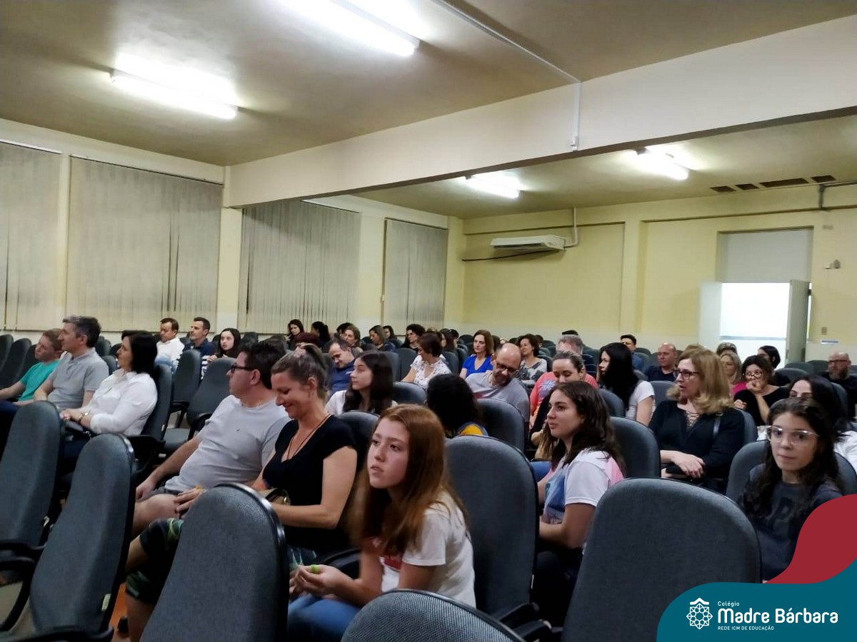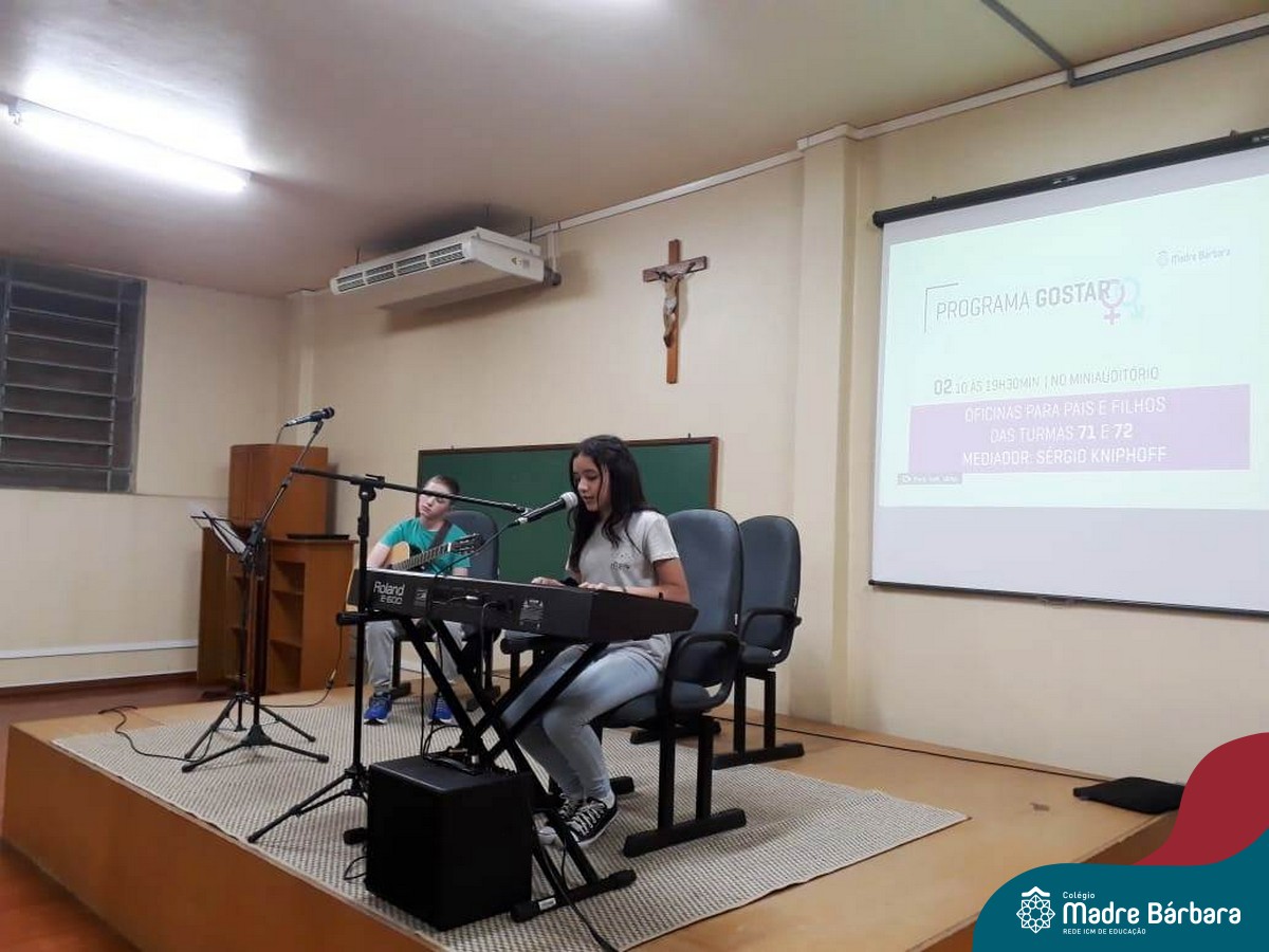 Na noite dessa quarta-feira os alunos das turmas 71 e 72 acompanhados pelas famílias, participaram do Encerramento do Gostar 2019 (Grupo de Orientação Sexual Trabalhando Afetividade e Relacionamento). O projeto realizado pelo Serviço de Orientação Educacional (SOE) contou com a presença do médico e parceiro Sérgio Kniphoff que foi mediador dos debates sobre variados temas. No abertura da noite, os alunos Lorenzo e Isadora surpreenderam cantando e tocando algumas músicas.