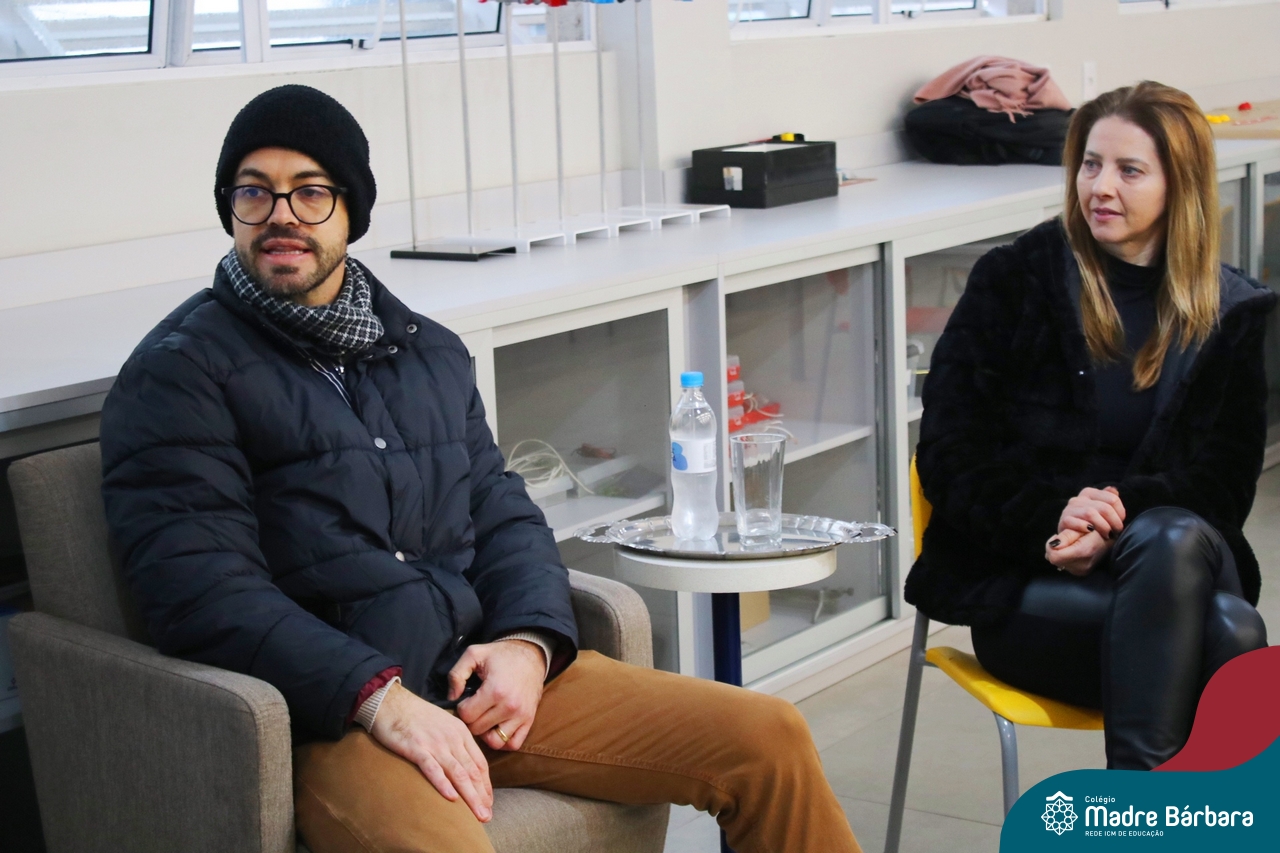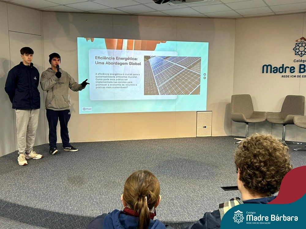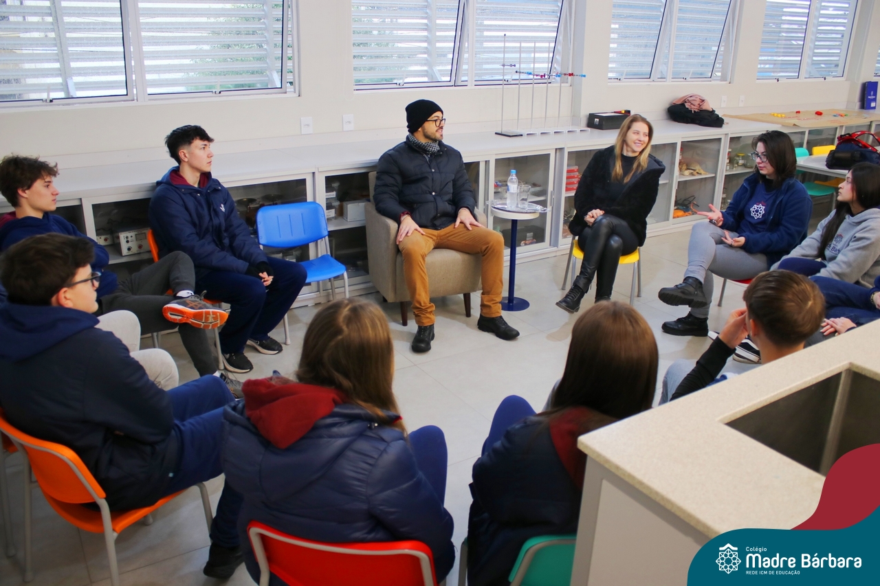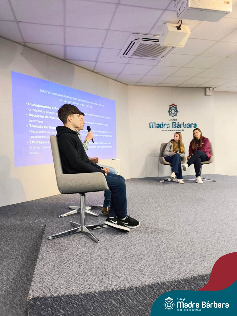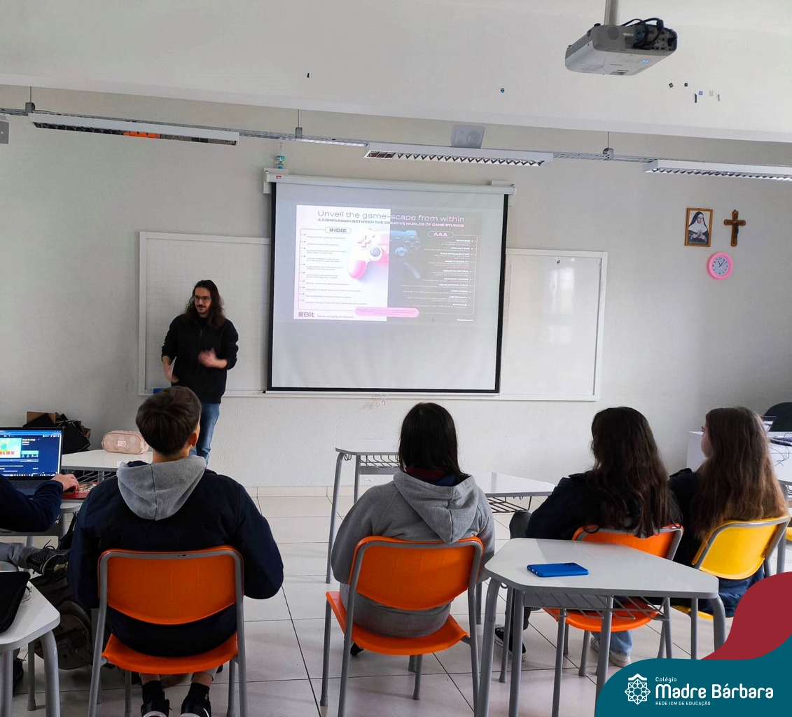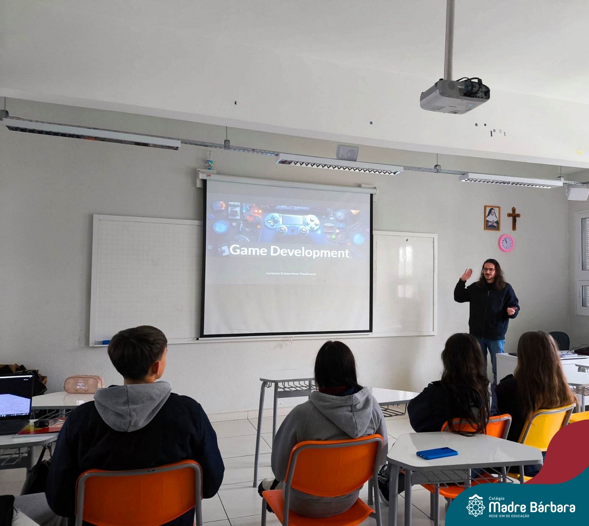Ocorreu também a apresentação dos projetos finais da eletiva Eficiência Energética: entre o passado e o futuro e na eletiva de Gamificação, os estudantes contaram com a presença de Lorenzo Kauffmann, ex-aluno do Colégio Madre Bárbara, que hoje atua como programador de jogos para uma empresa alemã. Lorenzo, além de prestigiar os jogos criados pelo grupo de alunos, pontuou diferentes aspectos relacionados à sua formação e área de atuação.