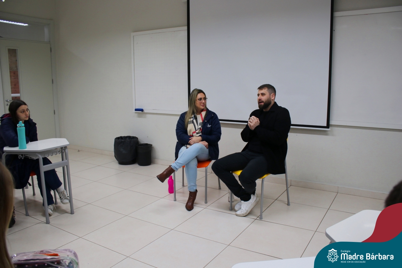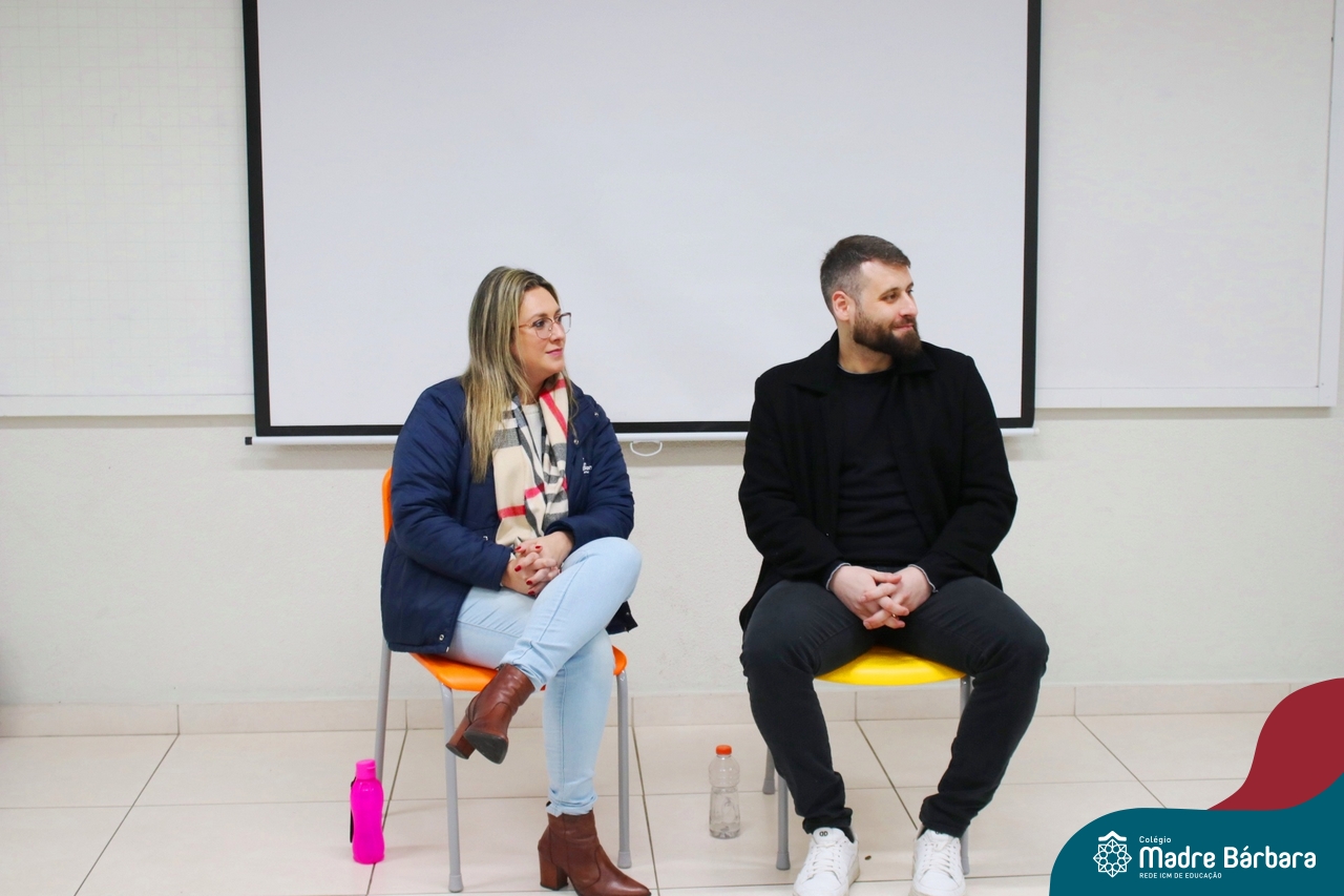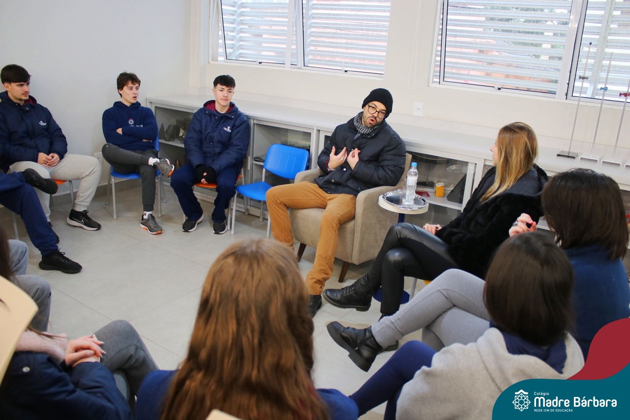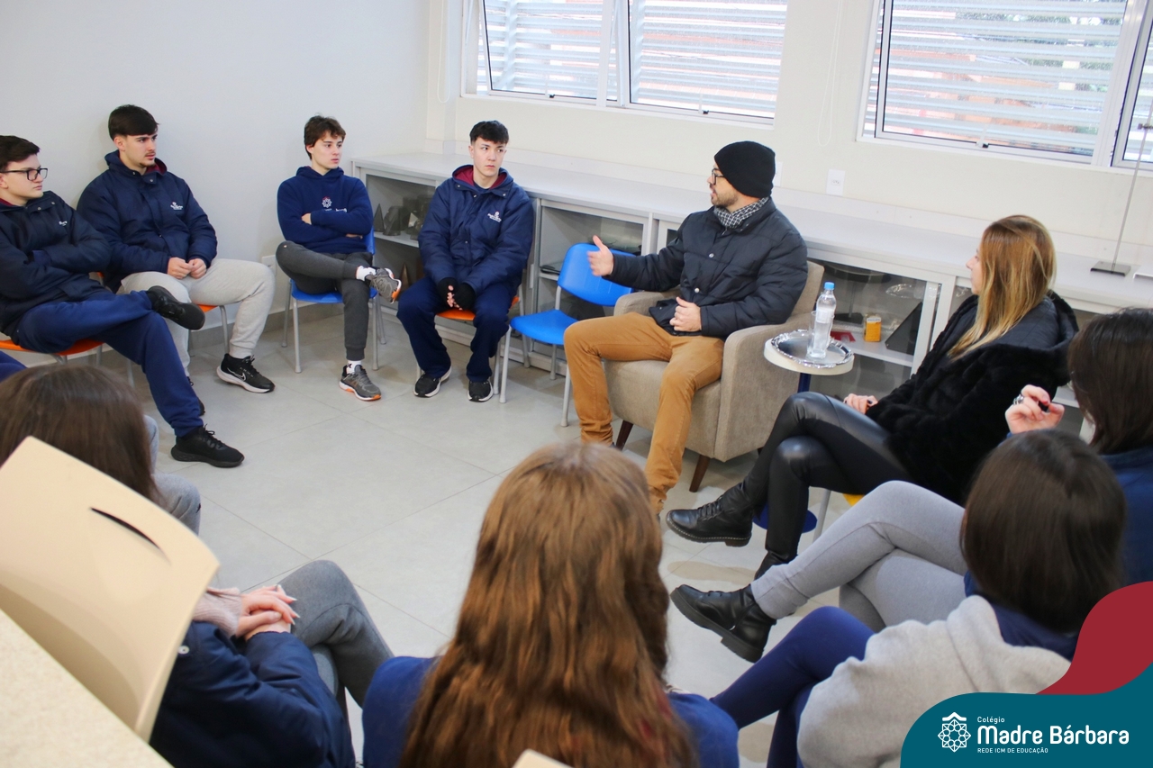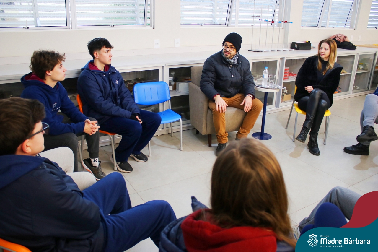 Ocorreu também a apresentação dos projetos finais da eletiva Eficiência Energética: entre o passado e o futuro e na eletiva de Gamificação, os estudantes contaram com a presença de Lorenzo Kauffmann, ex-aluno do Colégio Madre Bárbara, que hoje atua como programador de jogos para uma empresa alemã. Lorenzo, além de prestigiar os jogos criados pelo grupo de alunos, pontuou diferentes aspectos relacionados à sua formação e área de atuação.