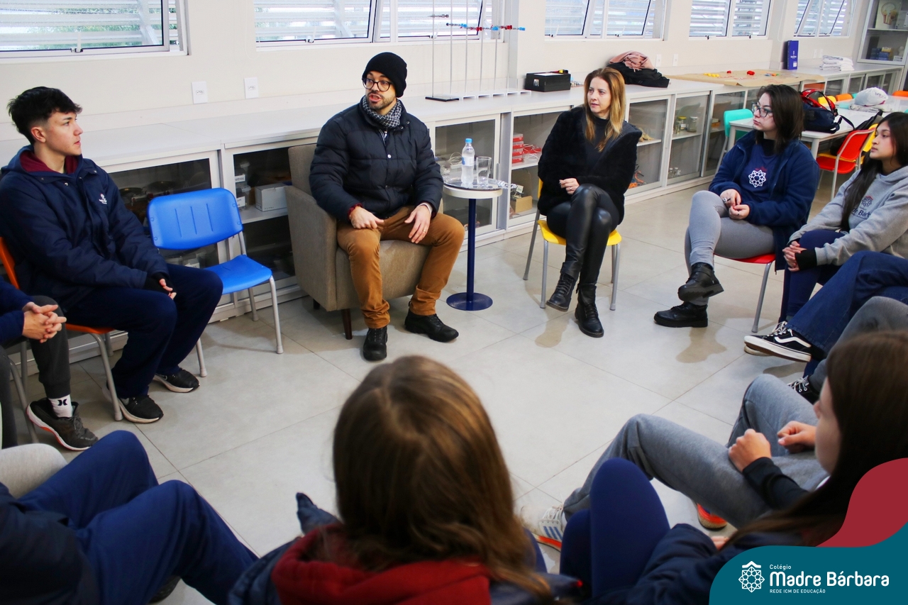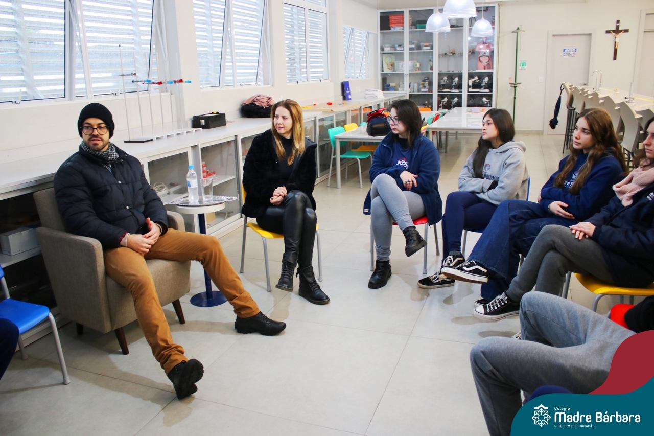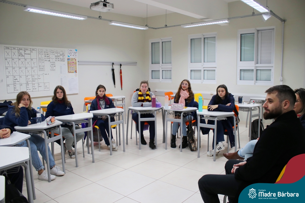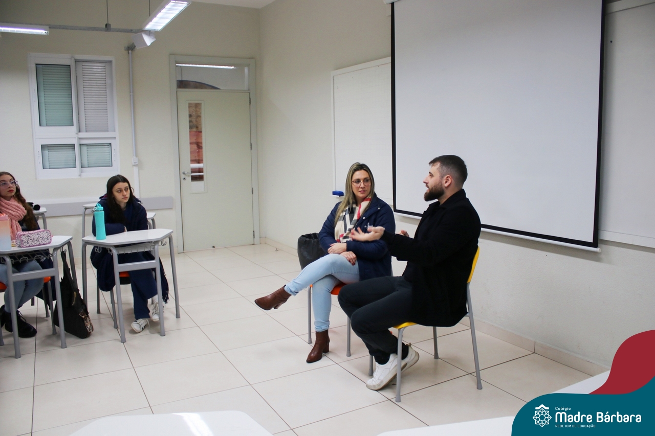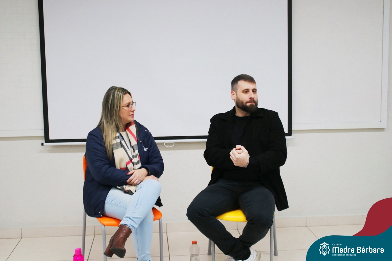 Ocorreu também a apresentação dos projetos finais da eletiva Eficiência Energética: entre o passado e o futuro e na eletiva de Gamificação, os estudantes contaram com a presença de Lorenzo Kauffmann, ex-aluno do Colégio Madre Bárbara, que hoje atua como programador de jogos para uma empresa alemã. Lorenzo, além de prestigiar os jogos criados pelo grupo de alunos, pontuou diferentes aspectos relacionados à sua formação e área de atuação.