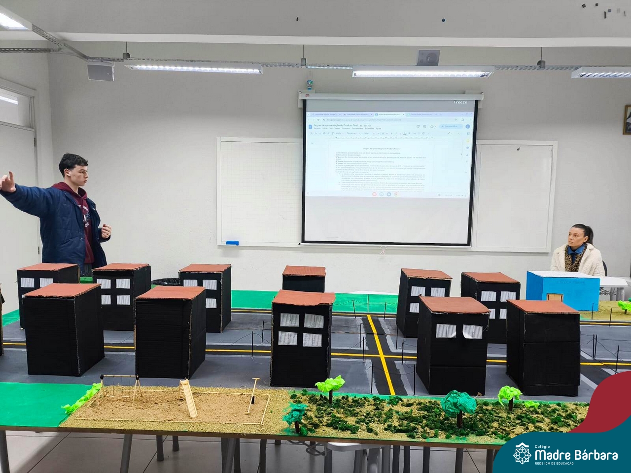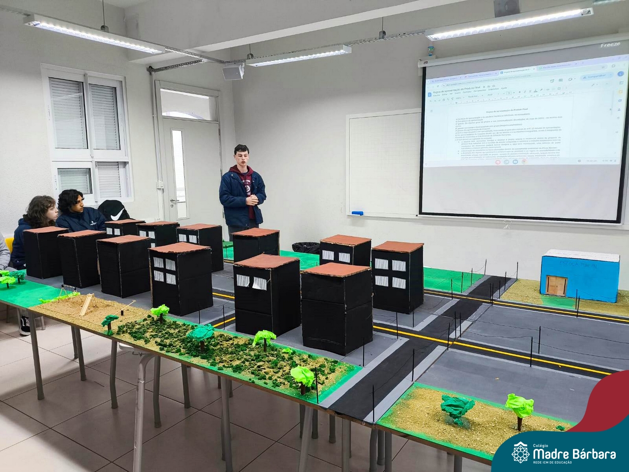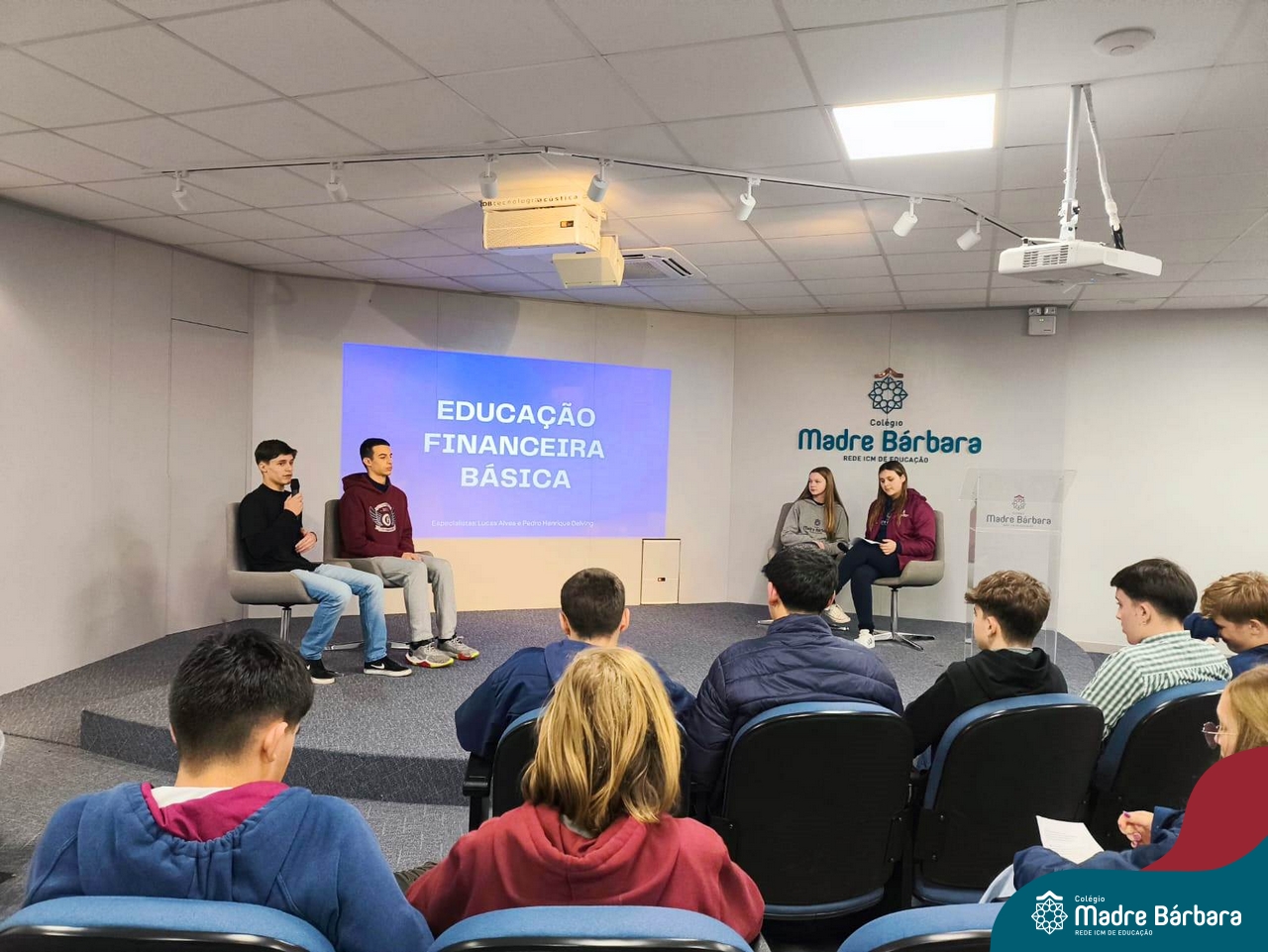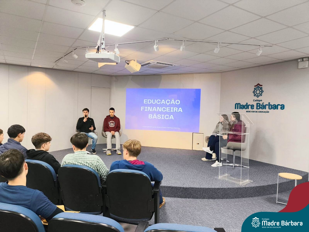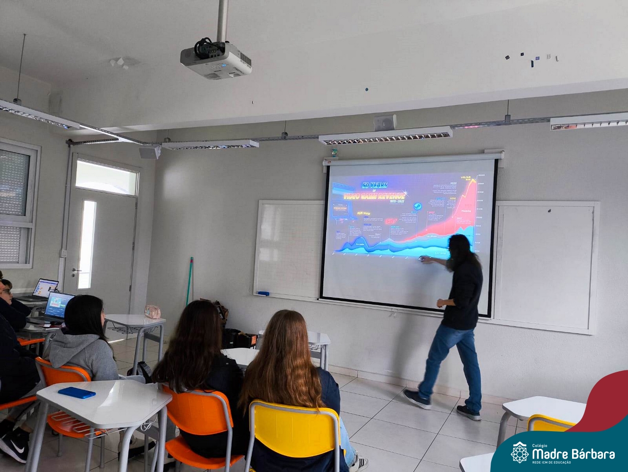 Ocorreu também a apresentação dos projetos finais da eletiva Eficiência Energética: entre o passado e o futuro e na eletiva de Gamificação, os estudantes contaram com a presença de Lorenzo Kauffmann, ex-aluno do Colégio Madre Bárbara, que hoje atua como programador de jogos para uma empresa alemã. Lorenzo, além de prestigiar os jogos criados pelo grupo de alunos, pontuou diferentes aspectos relacionados à sua formação e área de atuação.