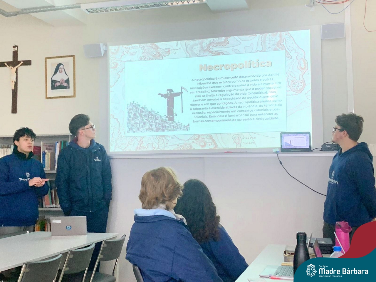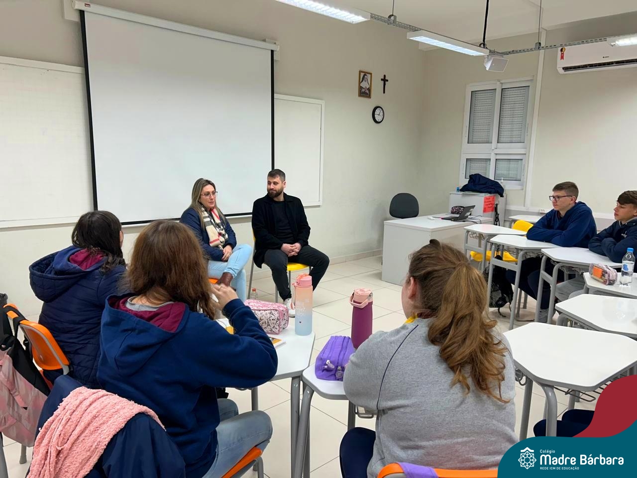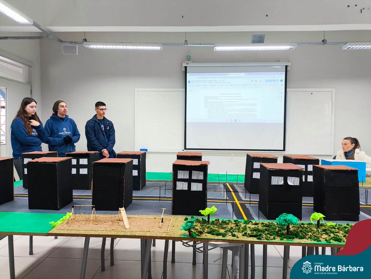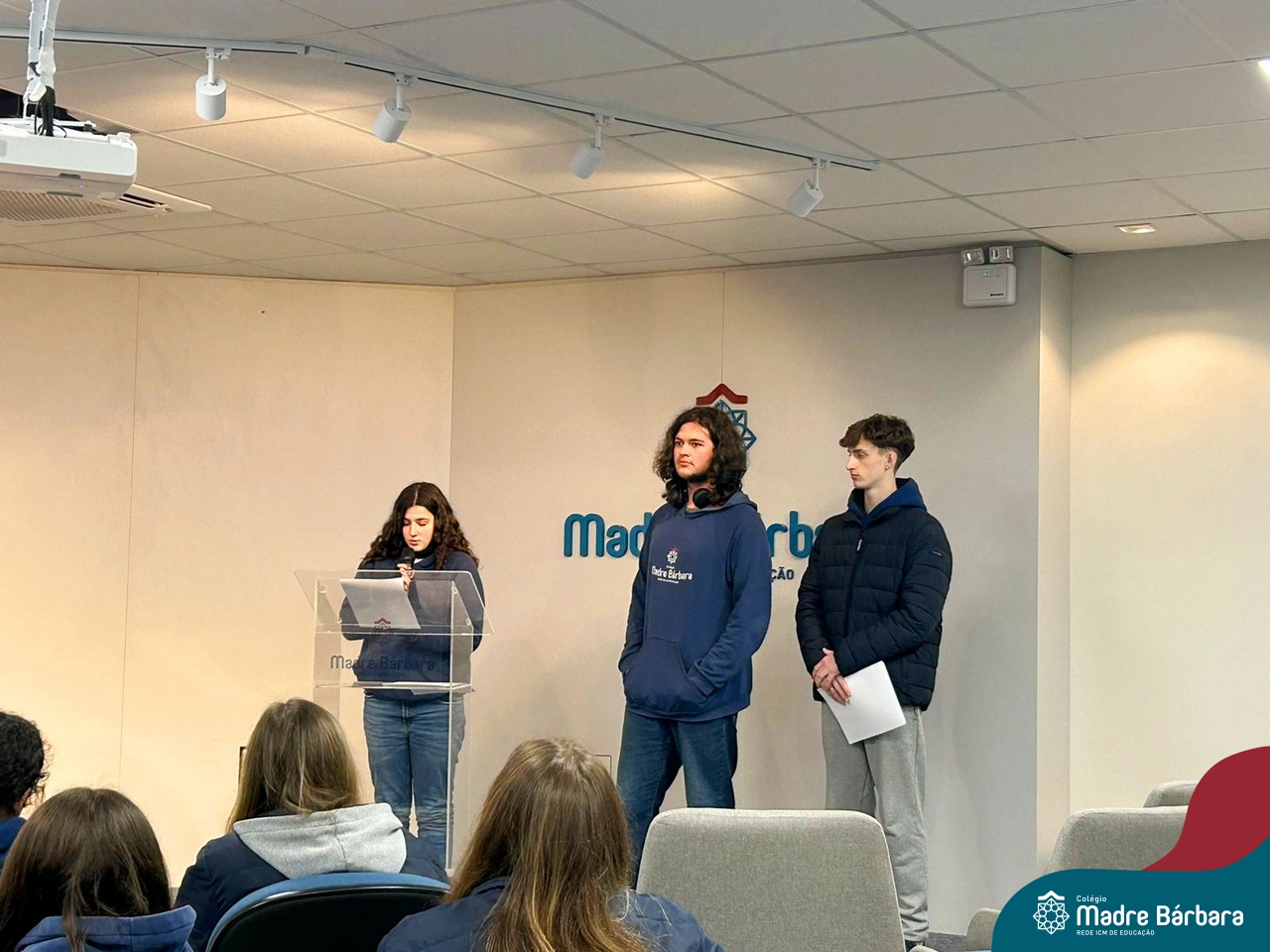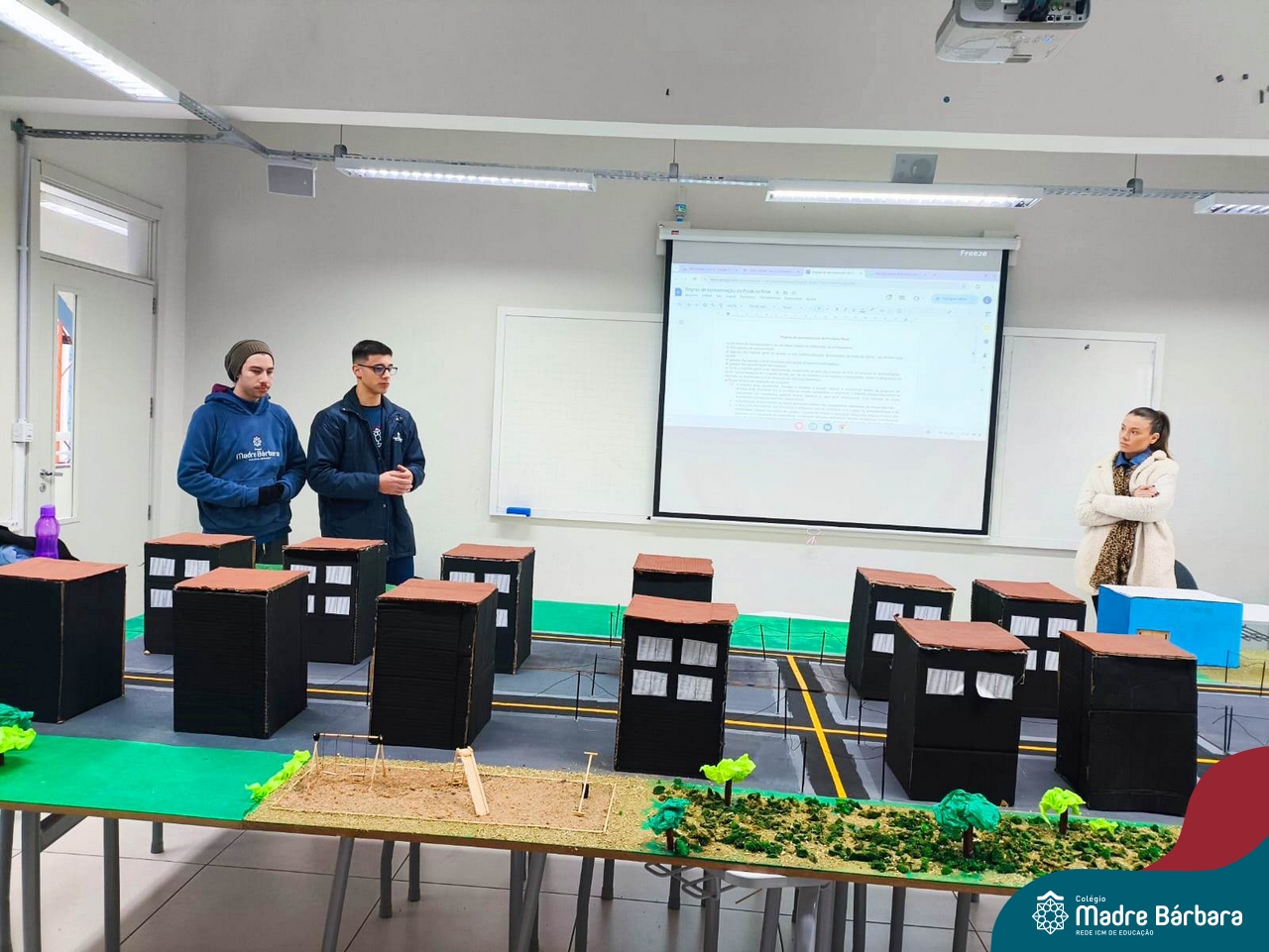 Ocorreu também a apresentação dos projetos finais da eletiva Eficiência Energética: entre o passado e o futuro e na eletiva de Gamificação, os estudantes contaram com a presença de Lorenzo Kauffmann, ex-aluno do Colégio Madre Bárbara, que hoje atua como programador de jogos para uma empresa alemã. Lorenzo, além de prestigiar os jogos criados pelo grupo de alunos, pontuou diferentes aspectos relacionados à sua formação e área de atuação.