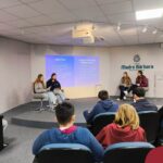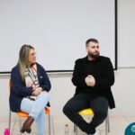 O itinerário de Jornalismo Digital encerrou com um bate-papo com os jornalistas Renata Leal e Tiago Wietholter, que compartilharam com os estudantes as razões de suas escolhas pelo Jornalismo, além de suas experiências profissionais.