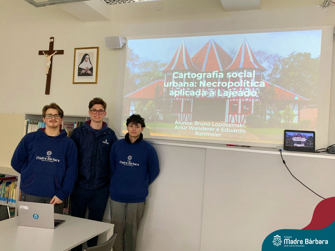 No Itinerário Aprendizagens Interculturais, estudantes das terceiras séries do Ensino Médio foram desafiados a elaborar cartografias sociais urbanas, a partir da análise de dados qualitativos e quantitativos da cidade de Lajeado e região, relacionando-os ao direito à cidade, categoria proposta pelo geógrafo David Harvey, com o objetivo de desenvolver um olhar crítico e analítico sobre a realidade na qual estão inseridos. O Itinerário foi orientado pela professora Juciane.