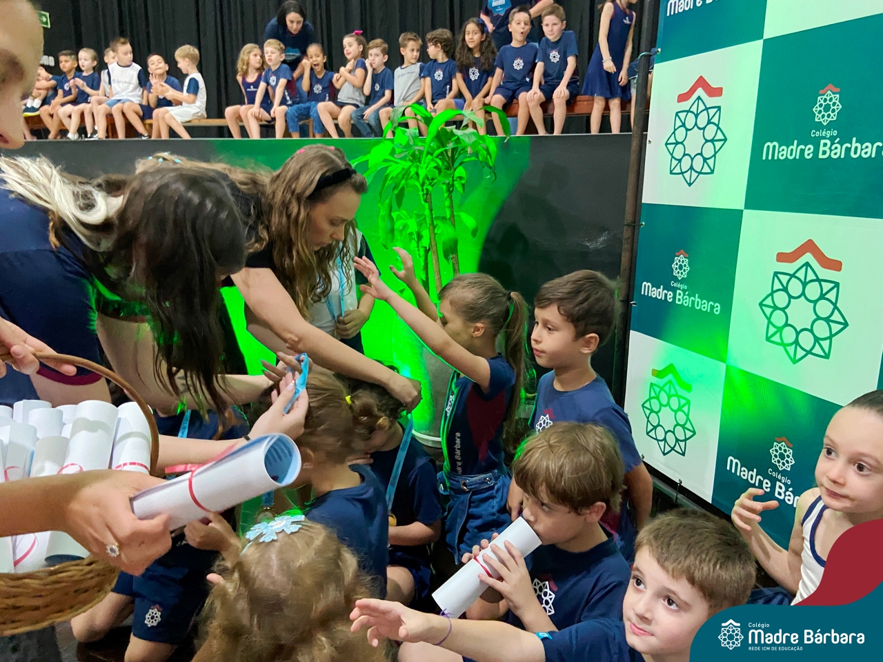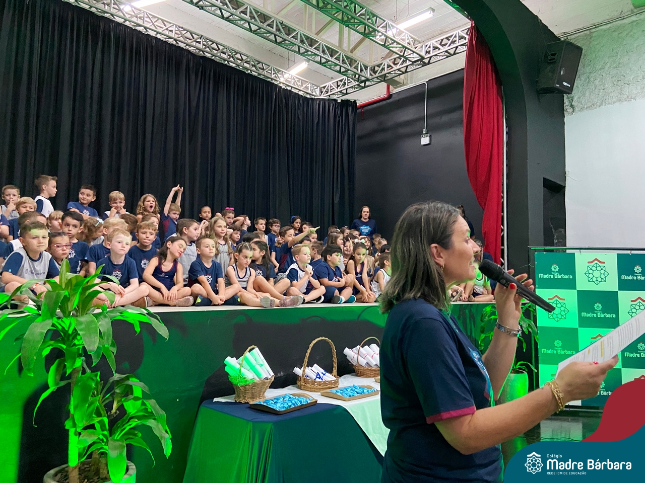 No dia 12 de dezembro, a educação infantil viveu um momento inesquecível com as crianças do nível 5, que celebraram o encerramento de um ciclo repleto de aprendizados e crescimento. Com emoção e alegria, as crianças encantaram a todos ao cantarem a música “Anunciação”, uma verdadeira expressão de esperança e renovação. Cada uma recebeu uma medalha, simbolizando não apenas a conclusão desta etapa, mas também a promessa de um novo ciclo que se inicia. Foi um momento de muita emoção, com vibração e entusiasmo entre crianças, professores e familiares, que se uniram para celebrar cada conquista. Ao final, todos compartilham a alegria e o amor, encerrando com chave de ouro uma vivência única e inesquecível. Que essa energia positiva continue a acompanhar cada um em sua jornada de aprendizado e crescimento!