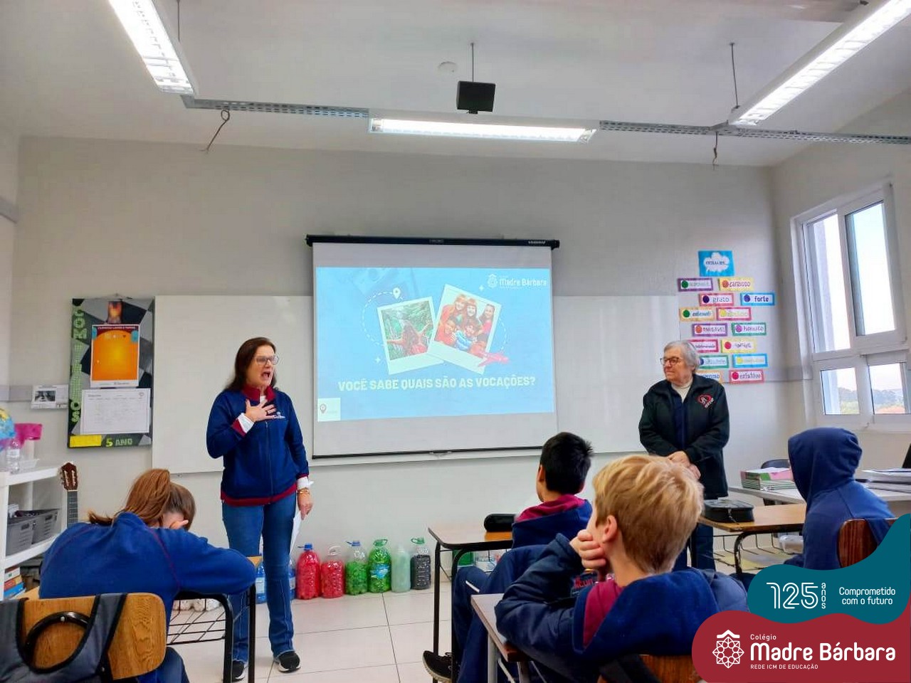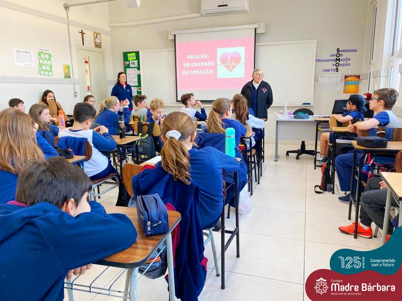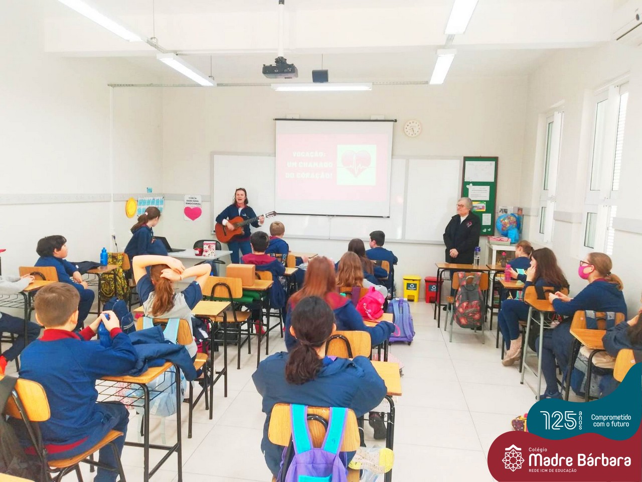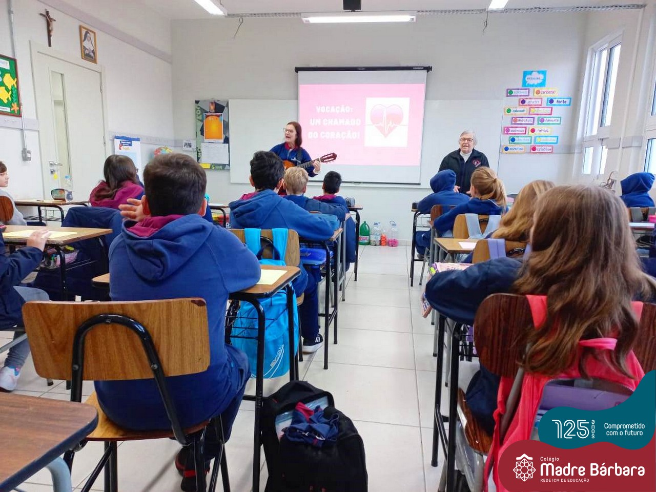 Na última quarta-feira (24.08), a Pastoral Escolar realizou encontros, com os quintos anos da manhã e da tarde para conversar sobre vocação. O que é , quais são os tipos de vocação, suas particularidades, a diferença entre vocação profissional e vocação pessoal e assim por diante. Momento riquíssimo, em perguntas e respostas, onde percebemos o quanto nossos educandos buscam conhecer e saber mais.