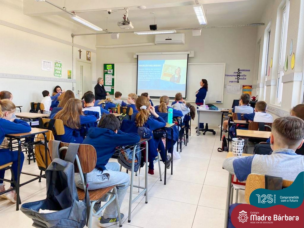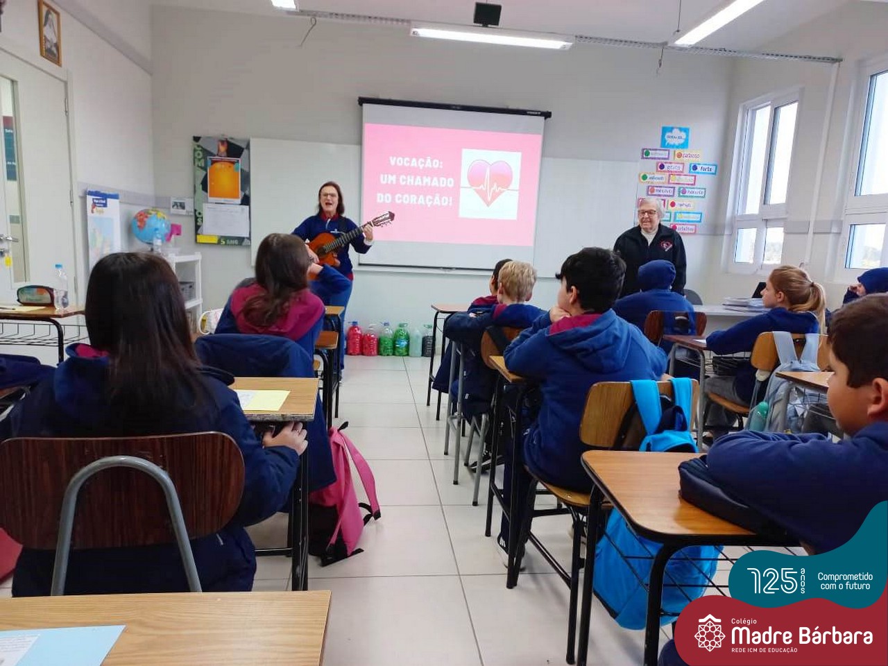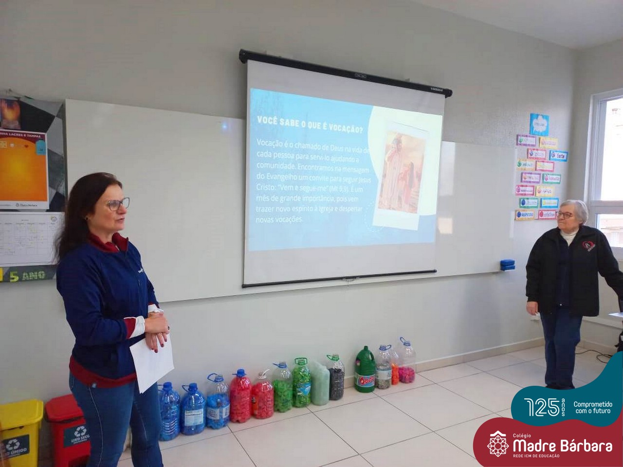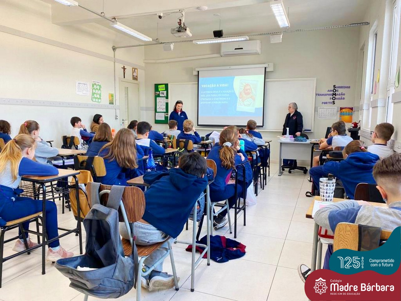 Na última quarta-feira (24.08), a Pastoral Escolar realizou encontros, com os quintos anos da manhã e da tarde para conversar sobre vocação. O que é , quais são os tipos de vocação, suas particularidades, a diferença entre vocação profissional e vocação pessoal e assim por diante. Momento riquíssimo, em perguntas e respostas, onde percebemos o quanto nossos educandos buscam conhecer e saber mais.
