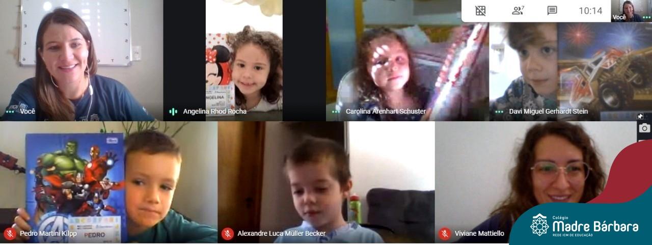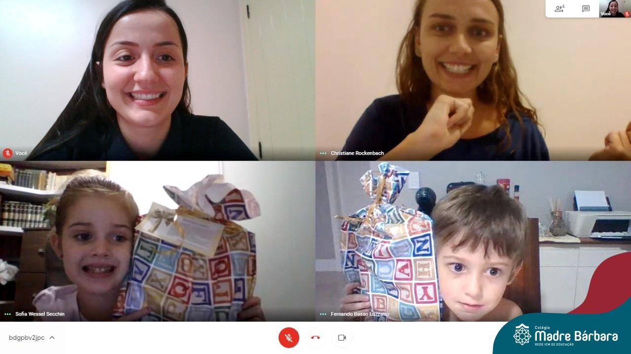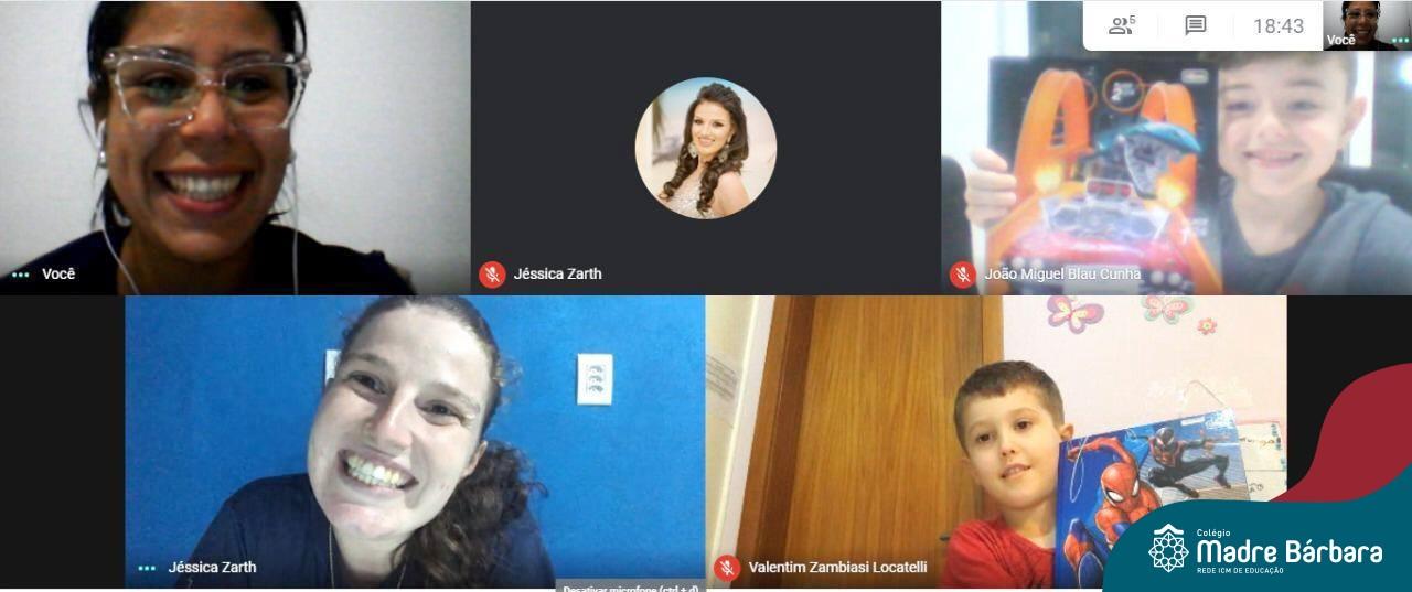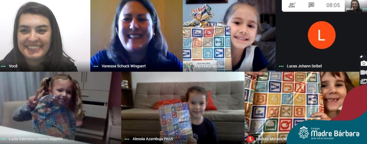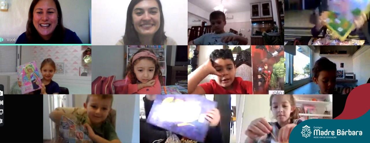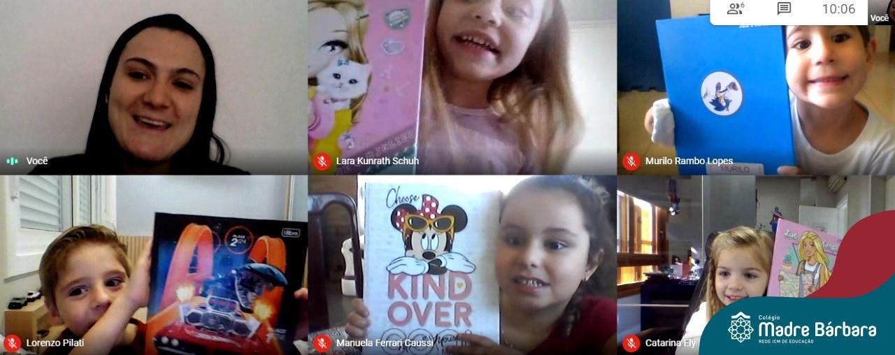 Na última sexta-feira (23.04) as turmas dos Níveis 5 participaram de uma videochamada muito especial. Receberam o seu caderno embalado em um pacote de presente e juntos na aula, tiveram o primeiro contato com o mesmo, através de uma linda situação de aprendizagem. Foi um momento muito mágico. As crianças estavam muito felizes!