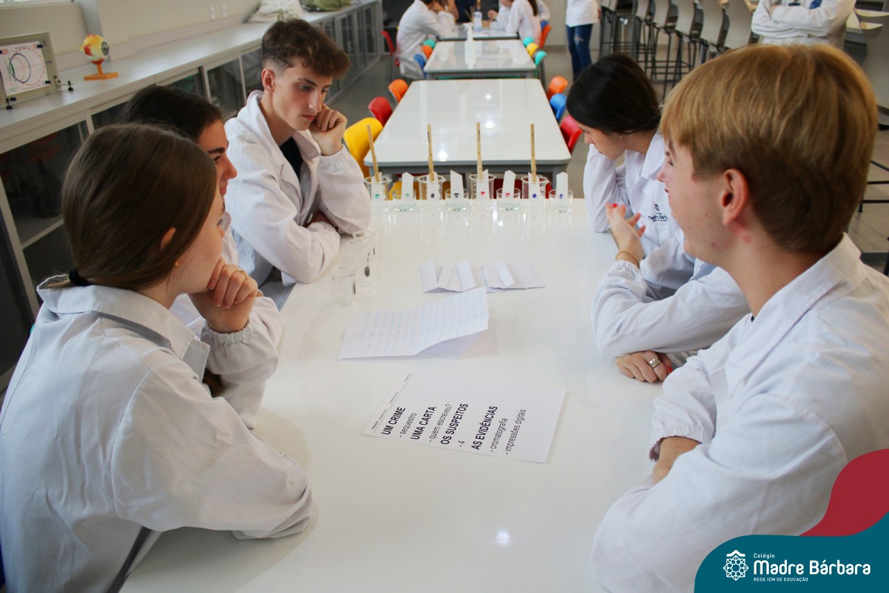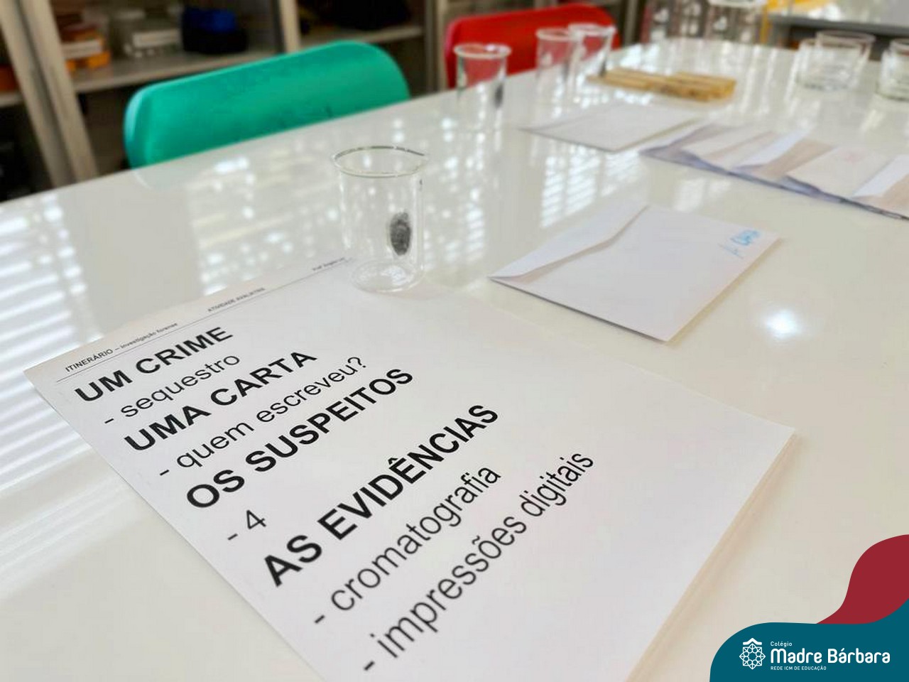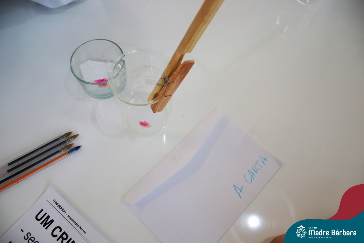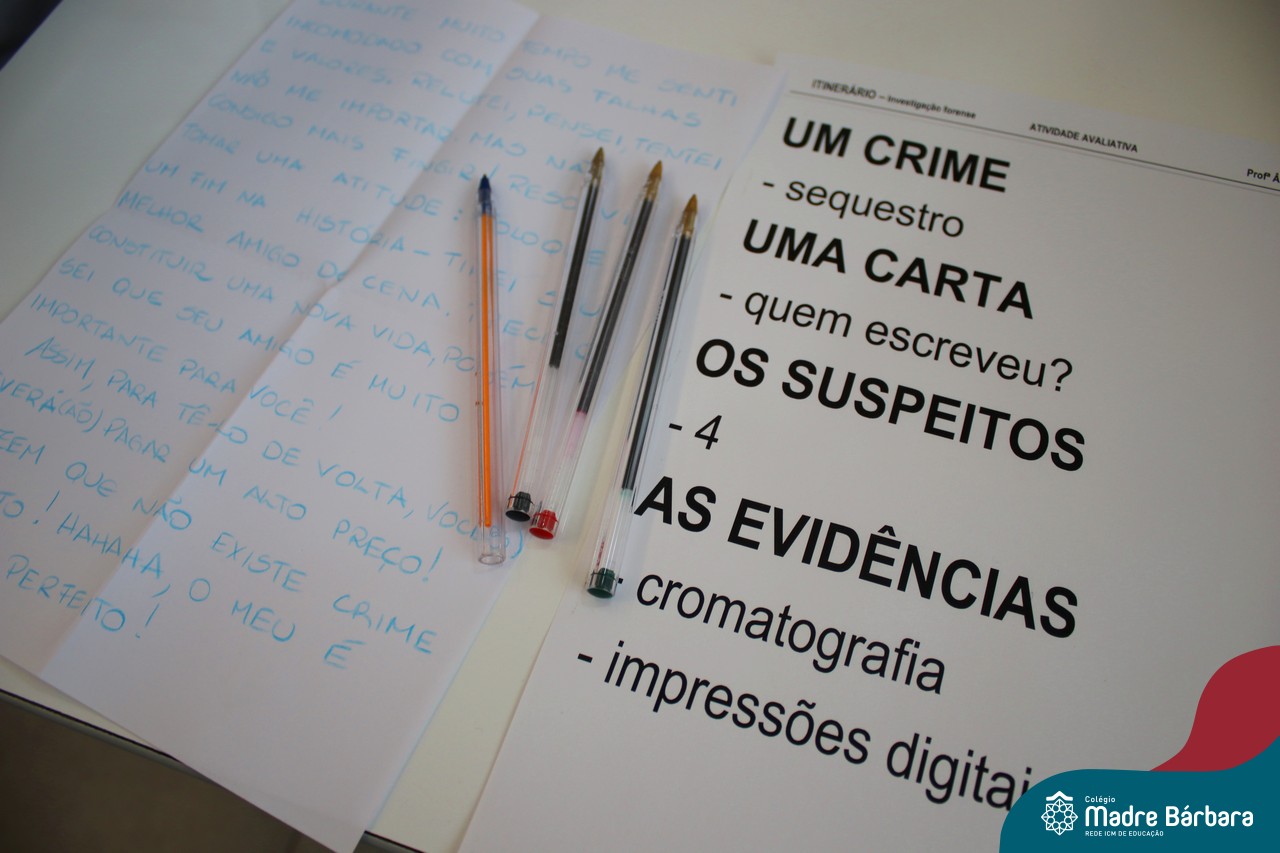 Um crime, uma carta, impressões digitais e quatro suspeitos! Você seria capaz de desvendar este mistério? A turma do Itinerário Investigação Forense participou de uma desafiadora atividade planejada pela Professora Ângela Lenz. Utilizando-se de técnicas de papiloscopia e cromatografia, os estudantes do 2º ano do Ensino Médio debruçaram-se na instigante busca pelo autor da conduta criminosa. E o resultado? Criminoso identificado a partir dos vestígios papilares e da identificação da cor da caneta utilizada na escrita da carta.