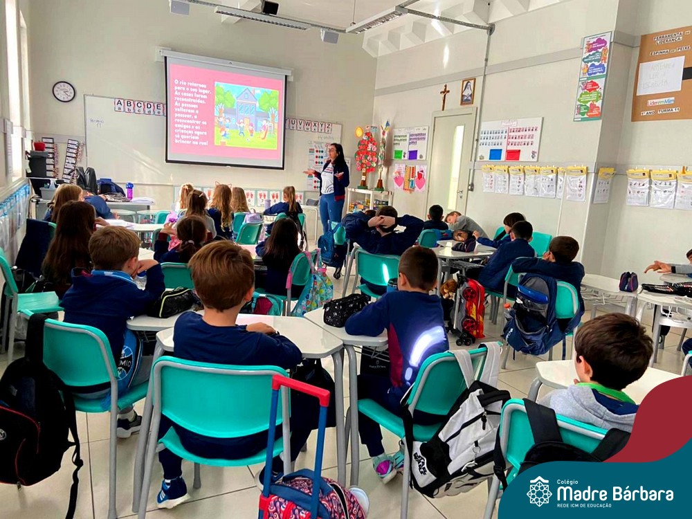 O recomeço em todos em todas as turmas do Colégio Madre Bárbara, no dia de hoje, foi pautado na escuta ativa e na alegria do reencontro. Nos Anos Iniciais o planejamento envolveu justamente a acolhida a este momento tão sensível, com atividades que proporcionaram a reflexão socioemocional das crianças. Círculos de acolhimento, dinâmicas, sensibilizações foram algumas das atividades desenvolvidas.