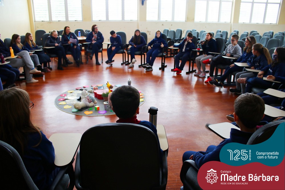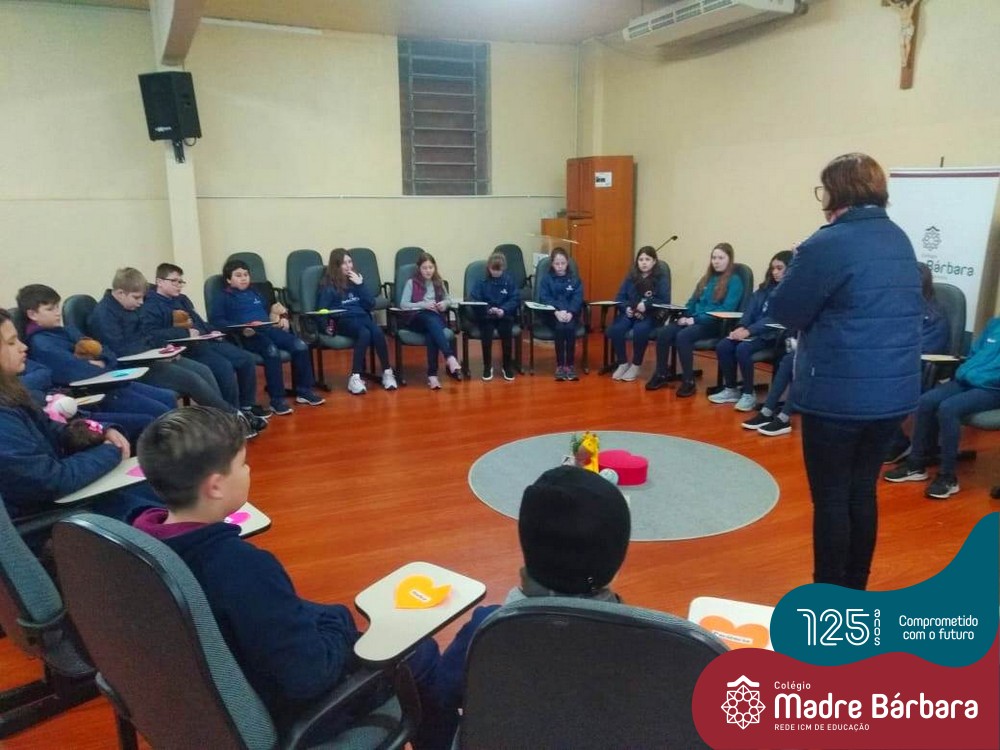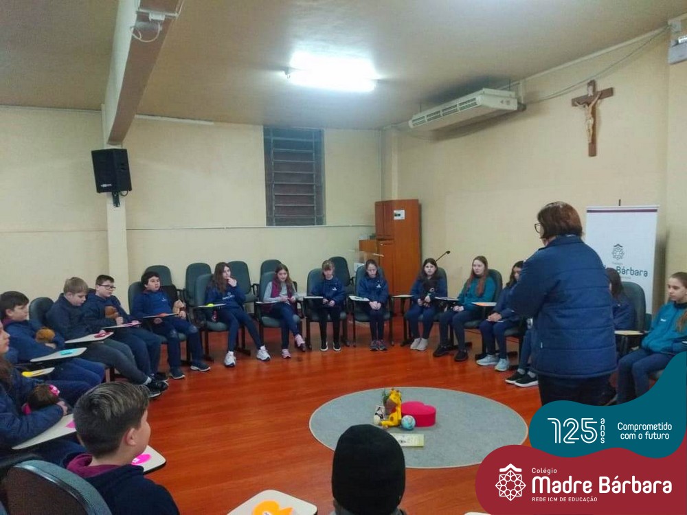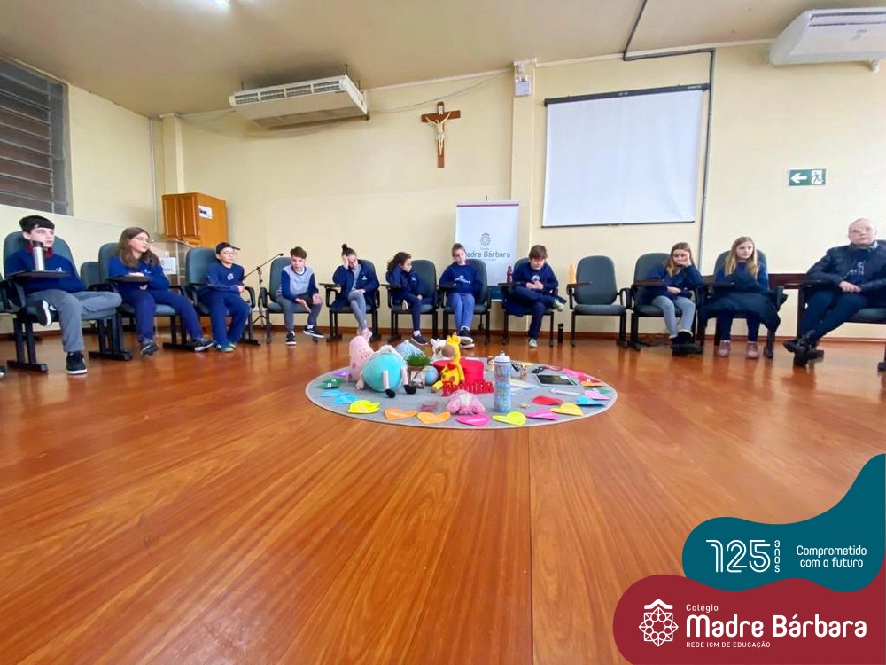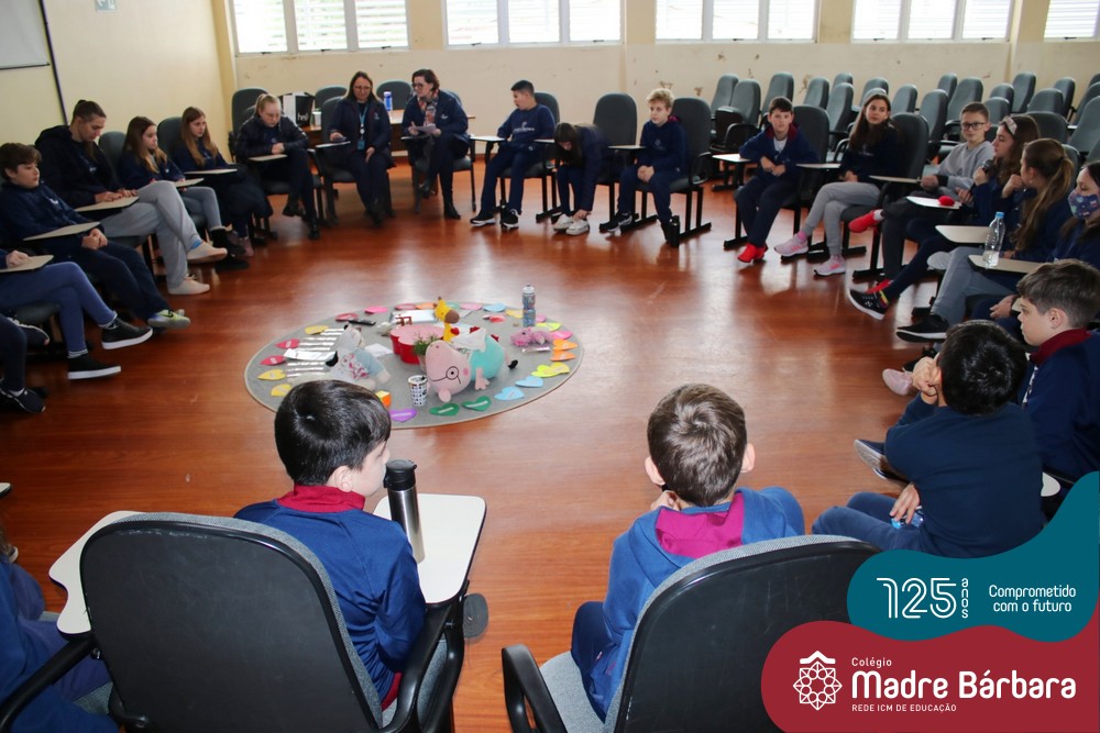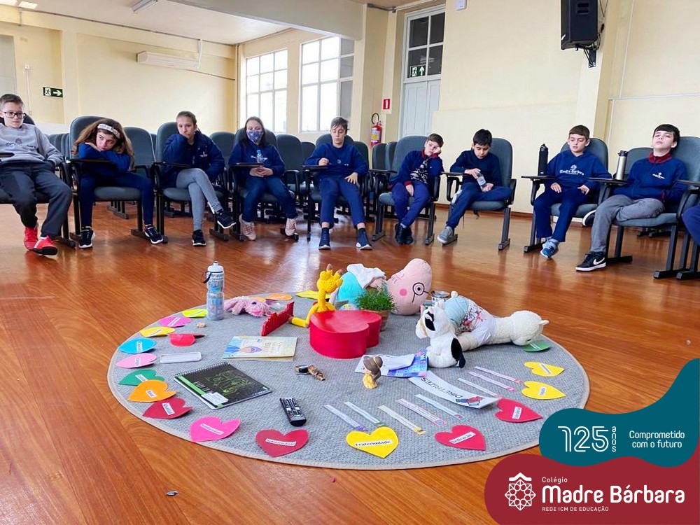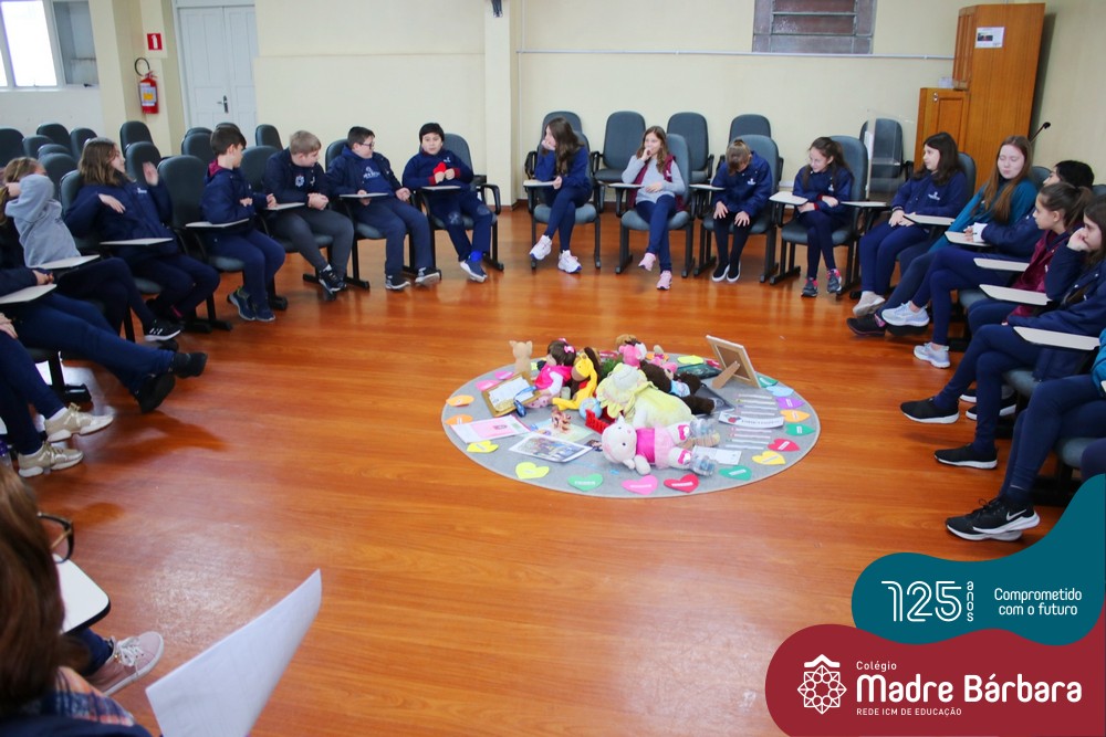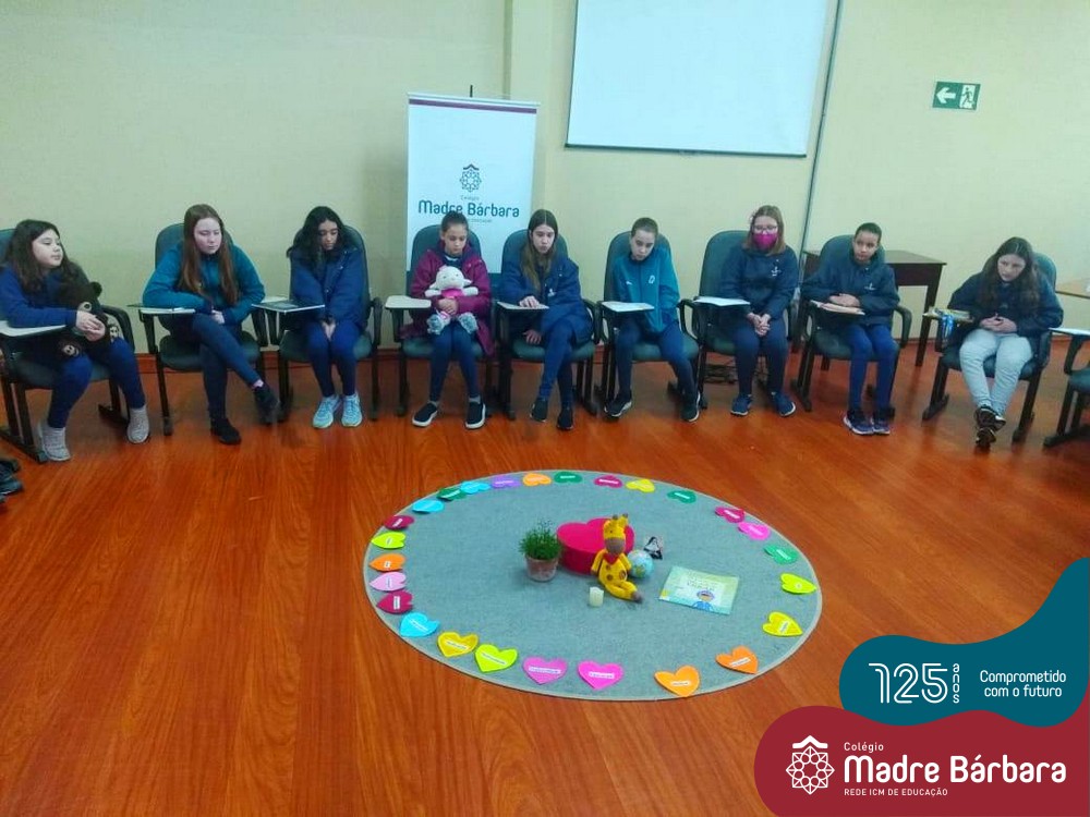 Continuando as atividades do Projeto “Escutando Sentimentos”, foram realizados nesta semana, Círculos de Construção da Paz com as turmas 44 (Prof. Viviane), 54 (Prof. Márcia), 52 (Prof. Jaqueline) e turma 53 (Prof. Fabiele). Conectados pelo coração, em sintonia com seus sentimentos, os estudantes participaram ativamente das atividades propostas para os Círculos de Construção da Paz. Os Círculos foram conduzidos pelas Facilitadoras Odete Maria Spessatto e Solange Marostega.