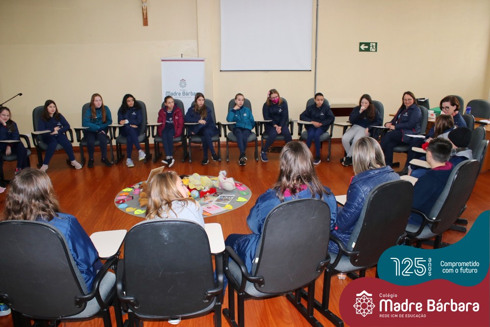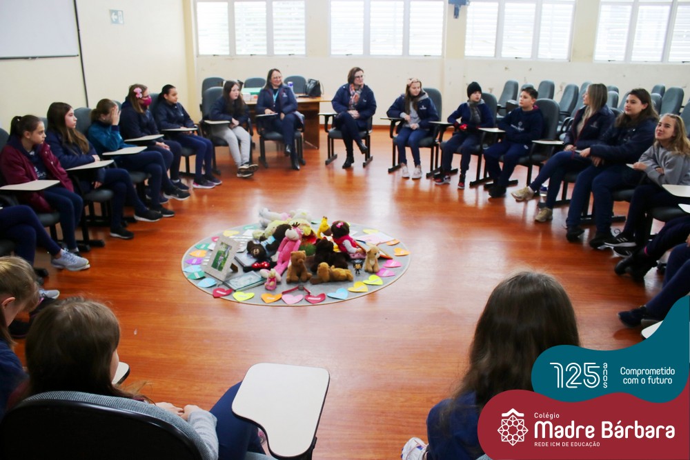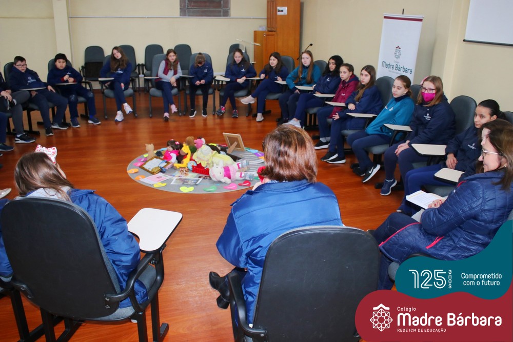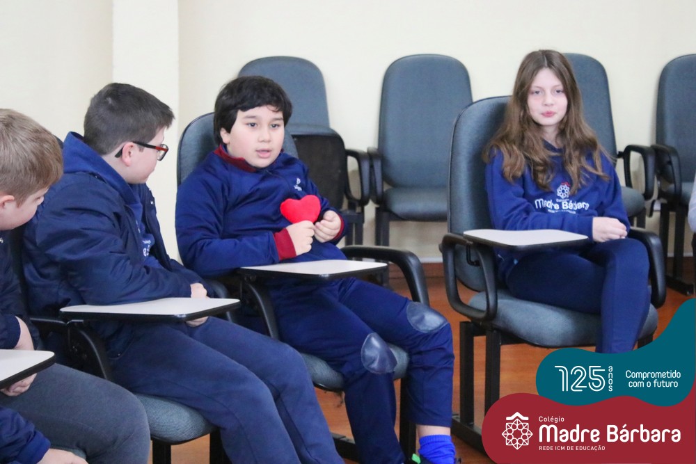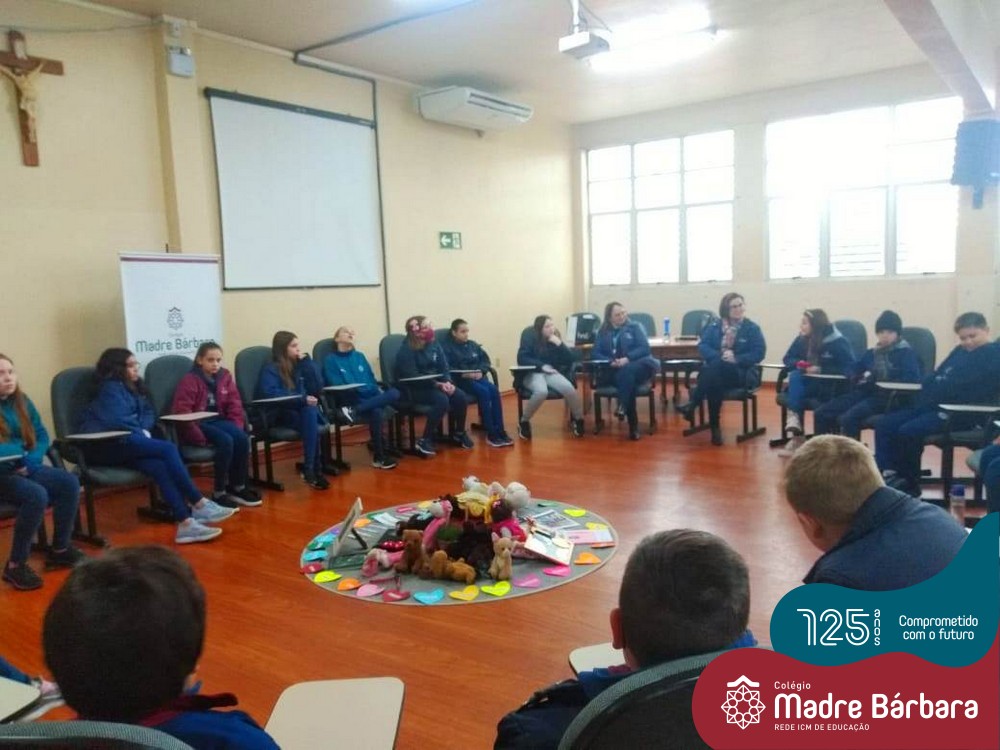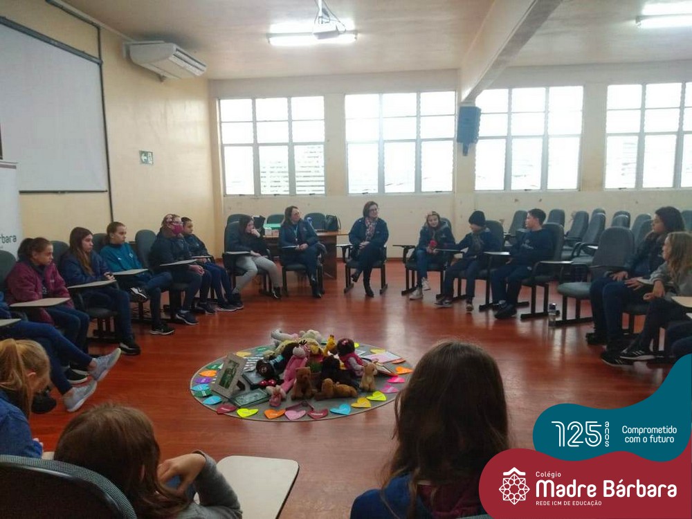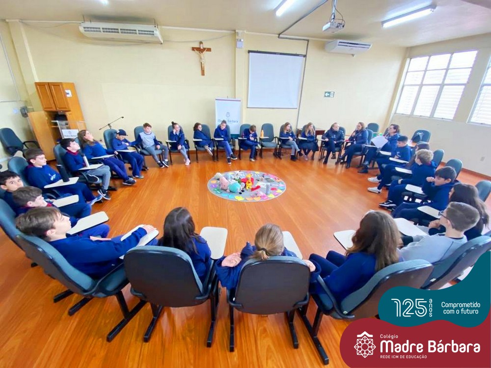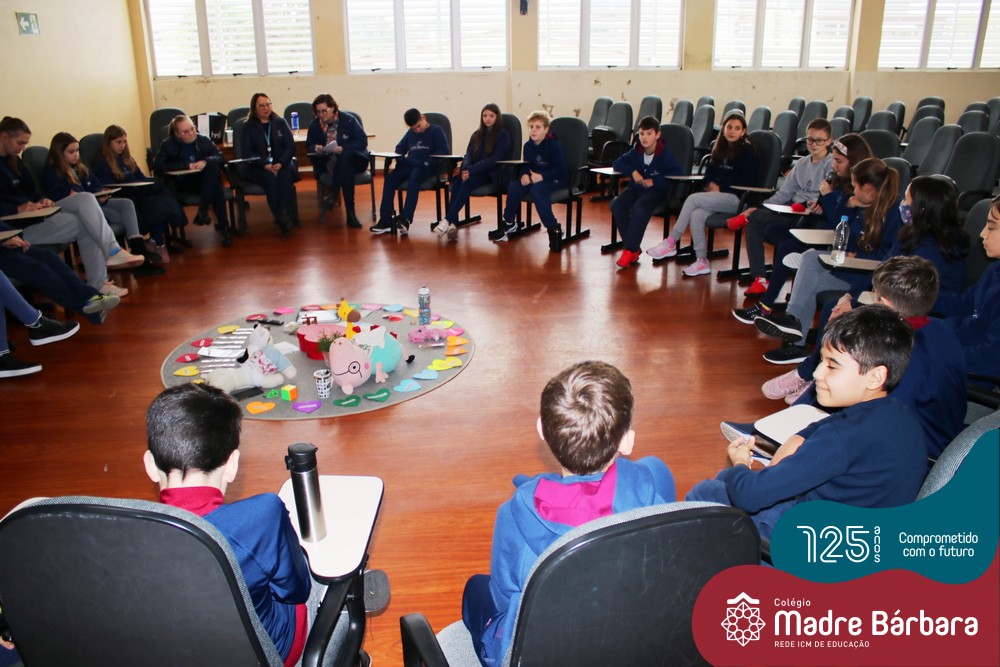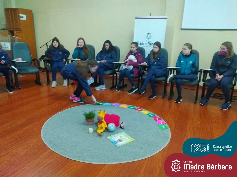 Continuando as atividades do Projeto “Escutando Sentimentos”, foram realizados nesta semana, Círculos de Construção da Paz com as turmas 44 (Prof. Viviane), 54 (Prof. Márcia), 52 (Prof. Jaqueline) e turma 53 (Prof. Fabiele). Conectados pelo coração, em sintonia com seus sentimentos, os estudantes participaram ativamente das atividades propostas para os Círculos de Construção da Paz. Os Círculos foram conduzidos pelas Facilitadoras Odete Maria Spessatto e Solange Marostega.