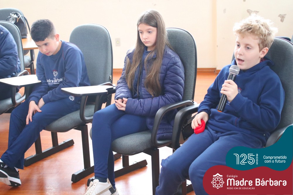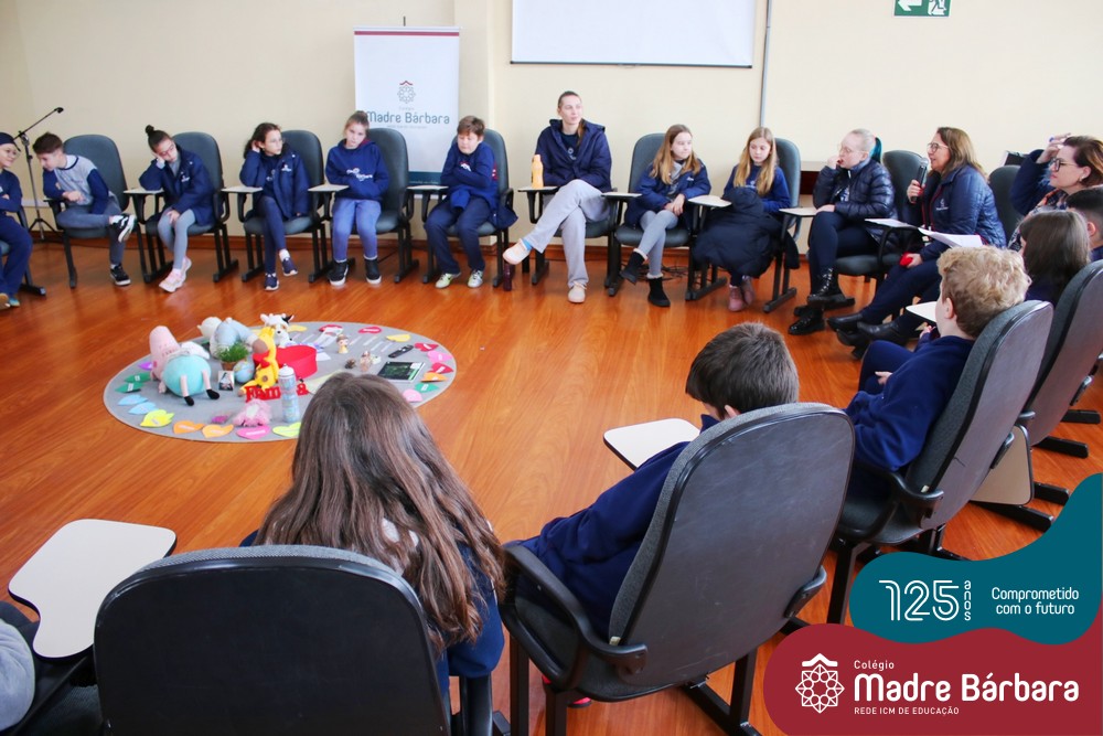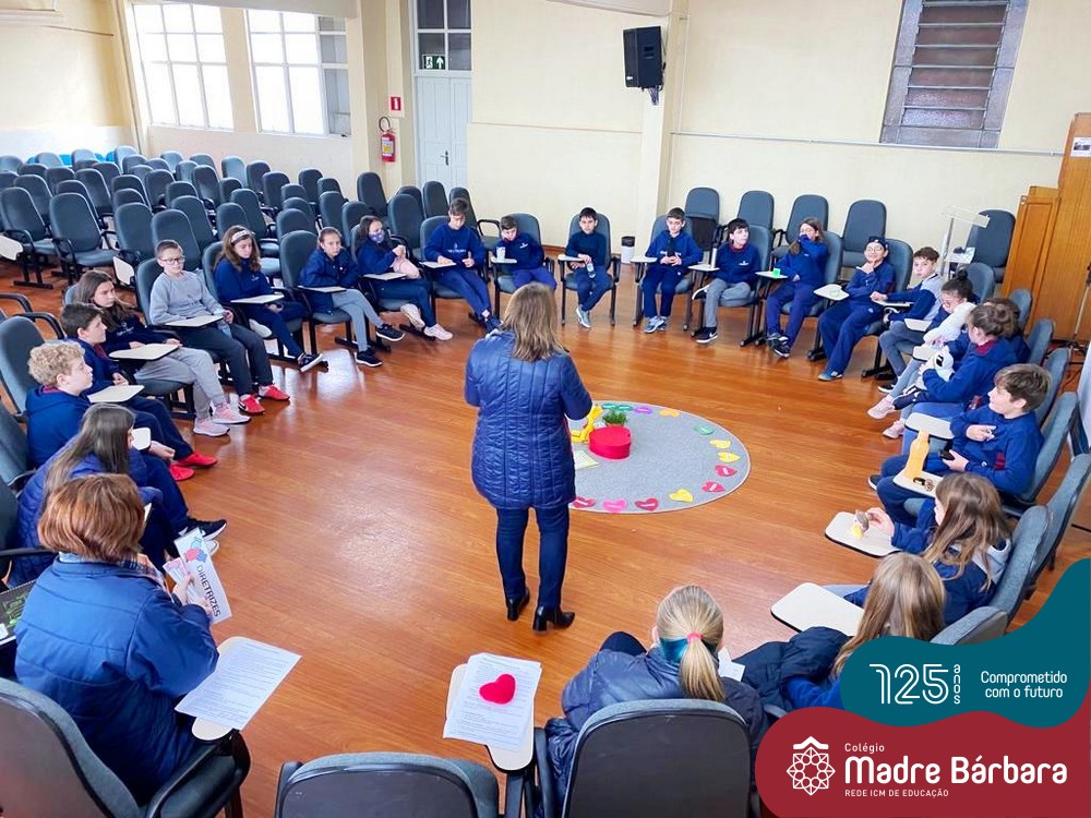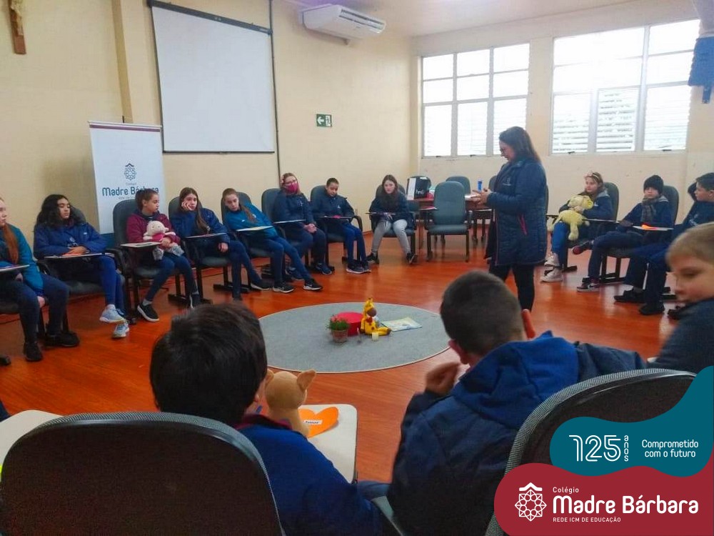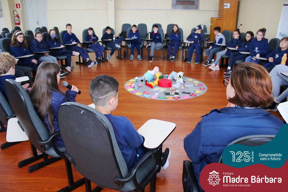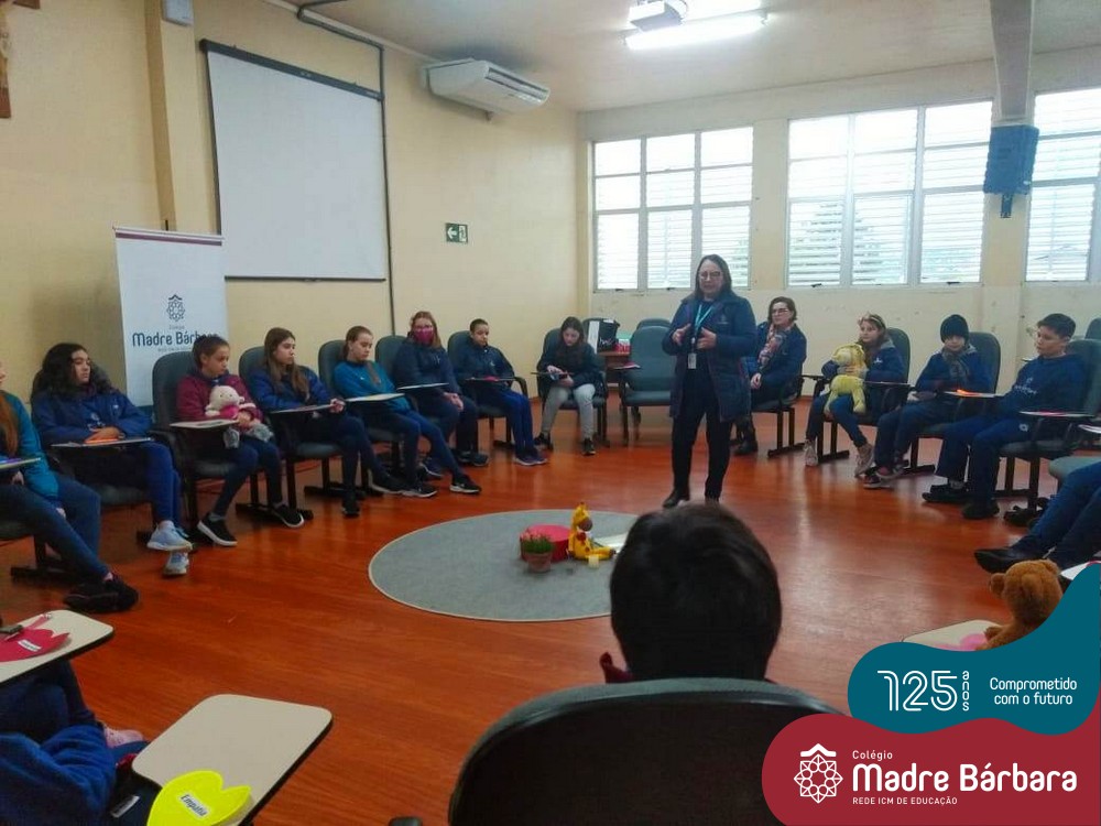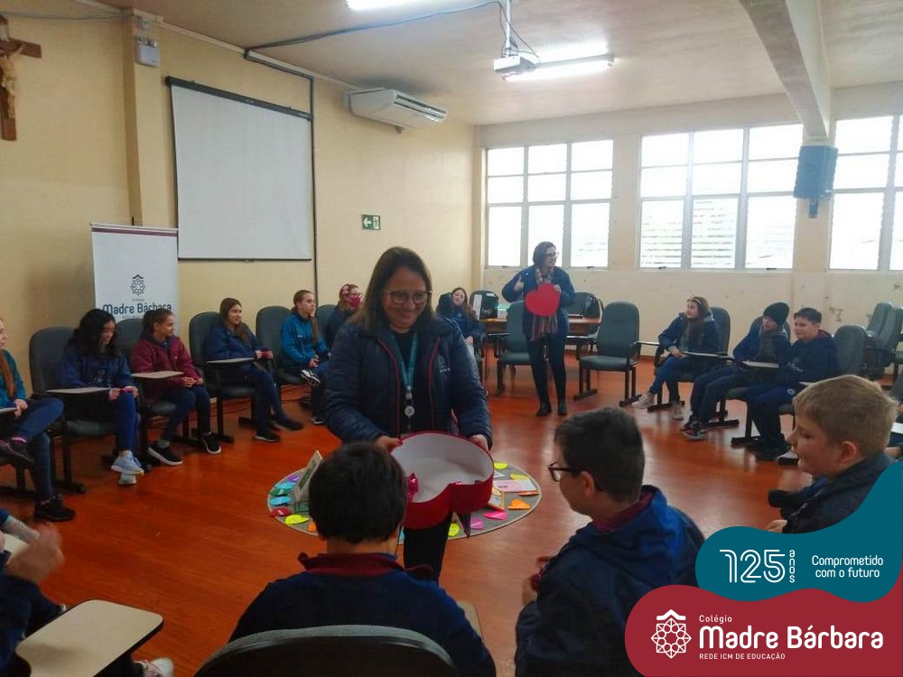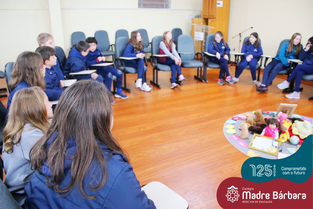 Continuando as atividades do Projeto “Escutando Sentimentos”, foram realizados nesta semana, Círculos de Construção da Paz com as turmas 44 (Prof. Viviane), 54 (Prof. Márcia), 52 (Prof. Jaqueline) e turma 53 (Prof. Fabiele). Conectados pelo coração, em sintonia com seus sentimentos, os estudantes participaram ativamente das atividades propostas para os Círculos de Construção da Paz. Os Círculos foram conduzidos pelas Facilitadoras Odete Maria Spessatto e Solange Marostega.