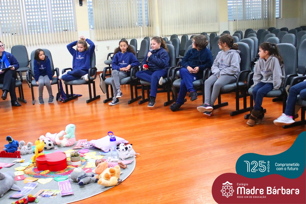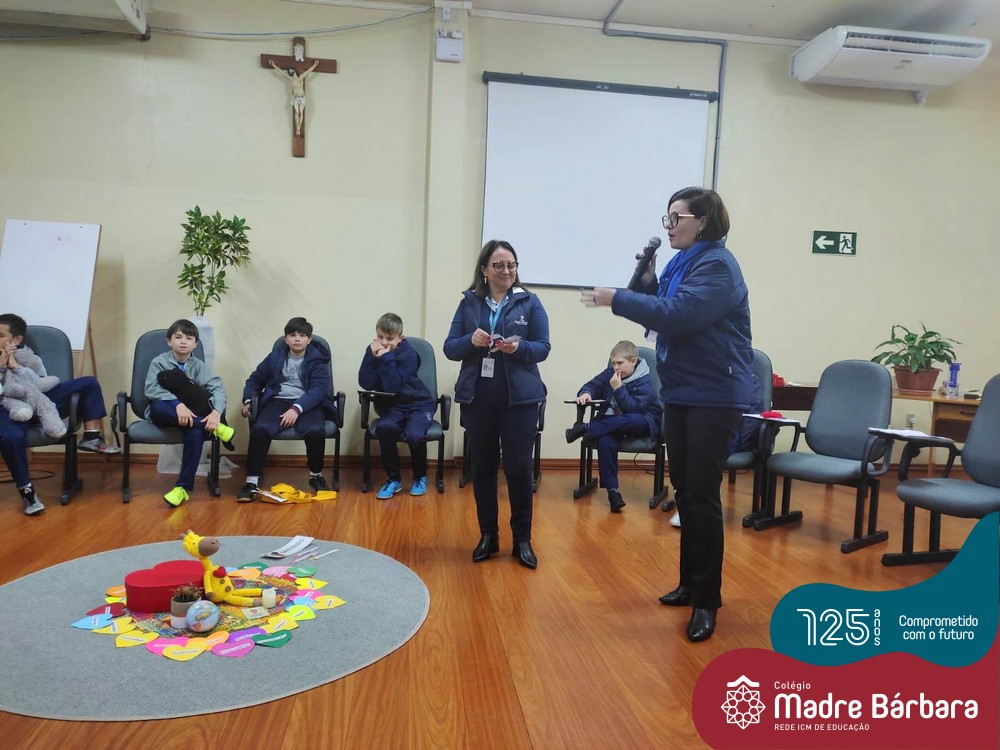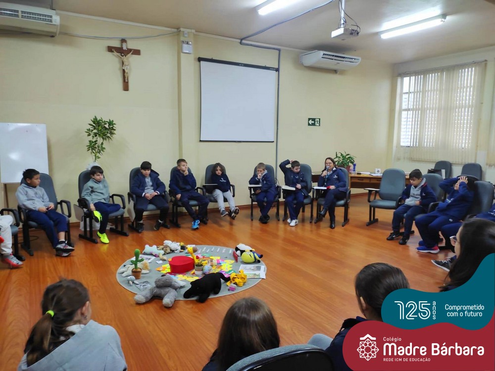 Na manhã desta segunda-feira (06.06) as Facilitadoras Odete Maria Spessatto e Solange Marostega estiveram com as turmas 41 (da professora Patrícia Krug) e 42 (da professora Joseane Dihl) realizando o Círculo de Construção da Paz e escutando os sentimentos dos estudantes. Os Círculos ocorrem para lembrar que ninguém está sozinho e que os estudantes fazem parte de um todo, que precisa ser cuidado, através de um processo circular que conecta pessoas e suas histórias de vida.