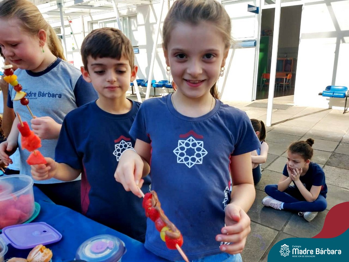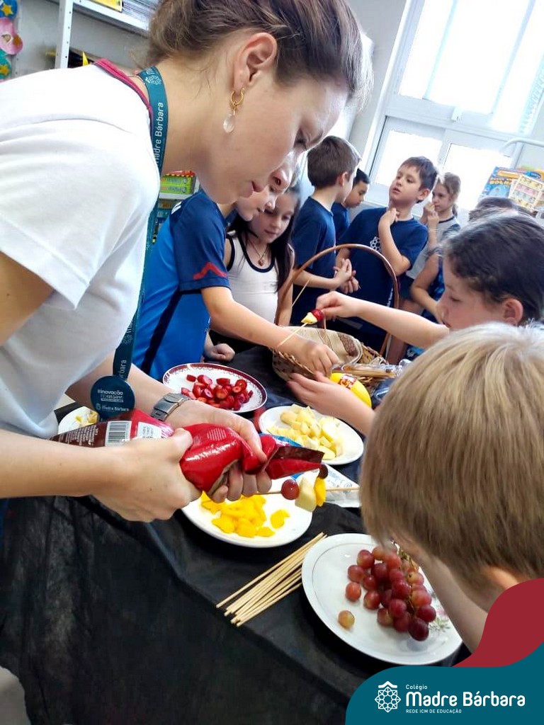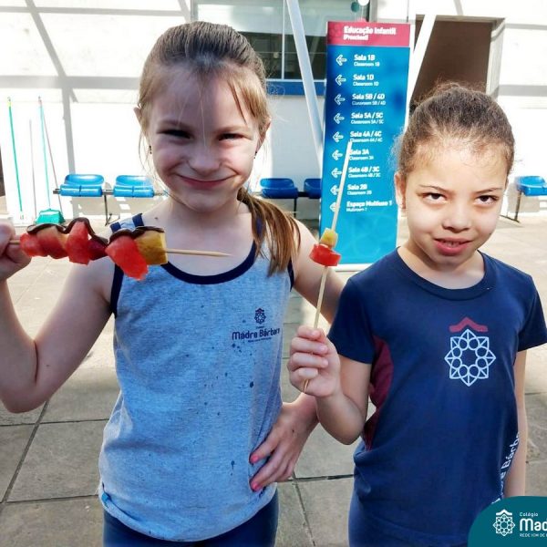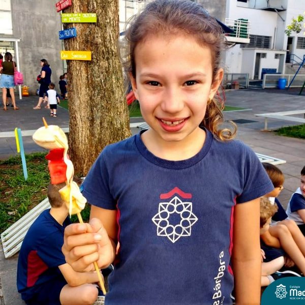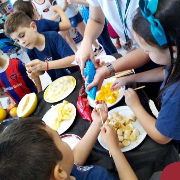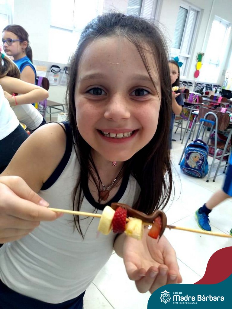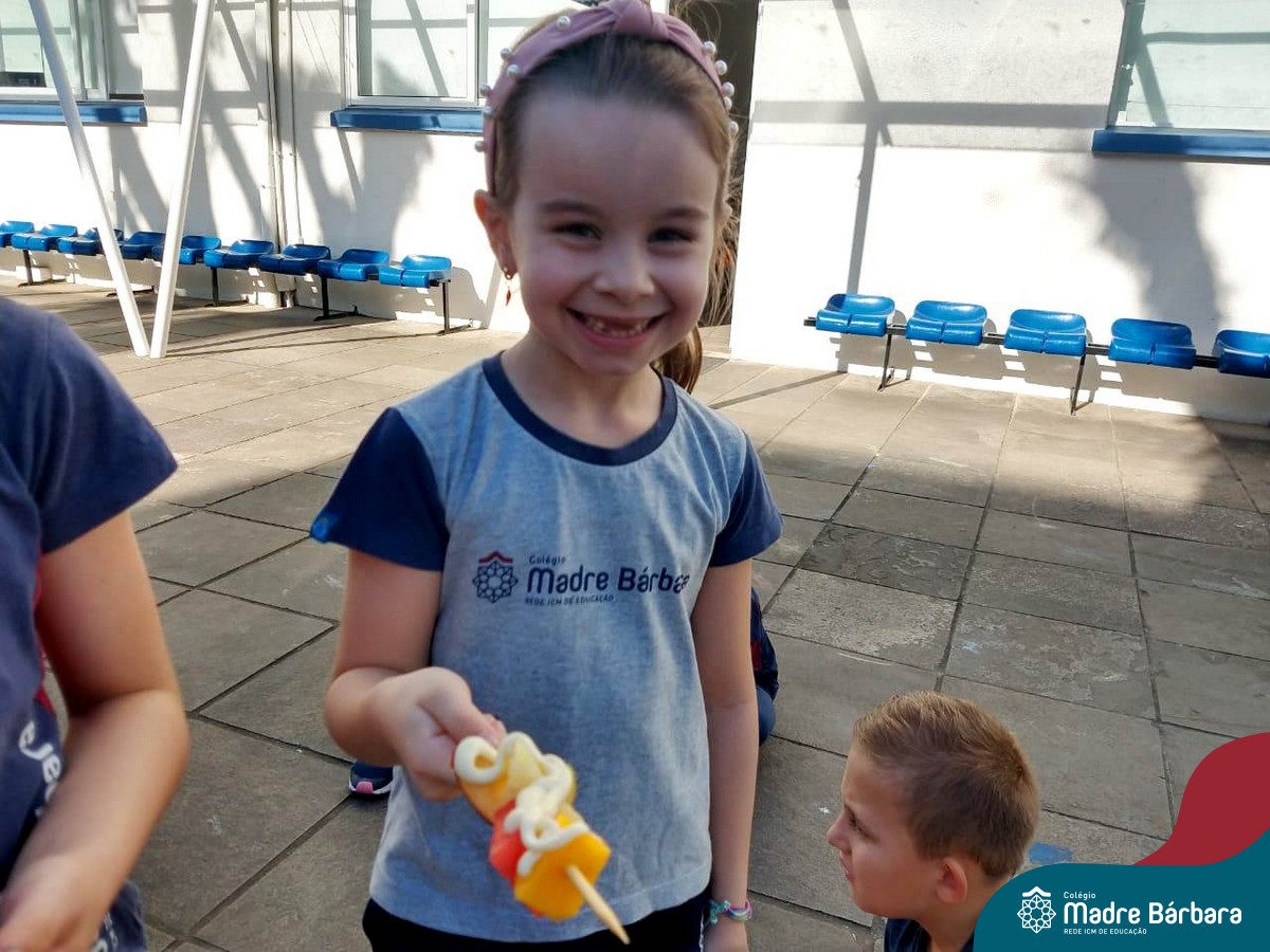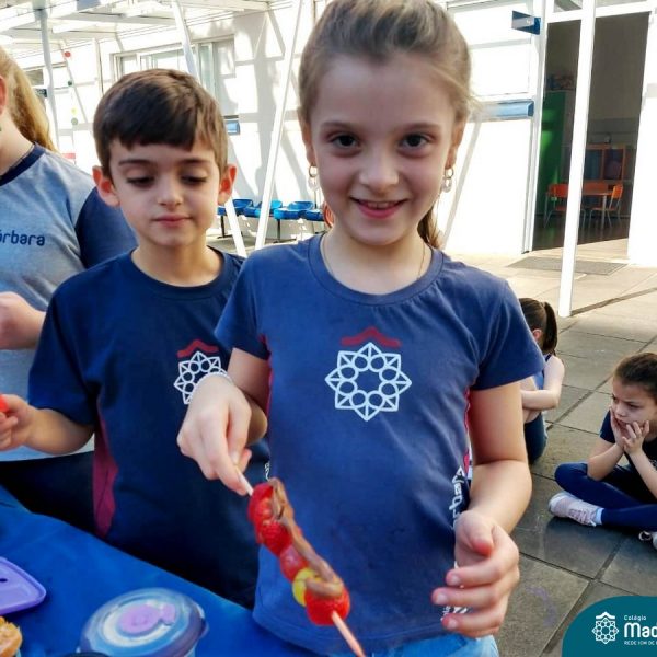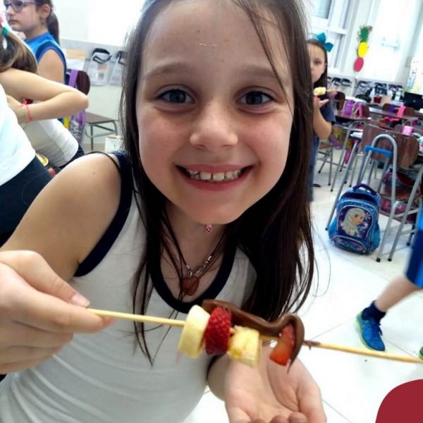 Na Semana da Criança teve o dia especial do espetinho de frutas com chocolate nos 2°s anos. As crianças puderam se deliciar e se lambuzar muito… será que amaram?!