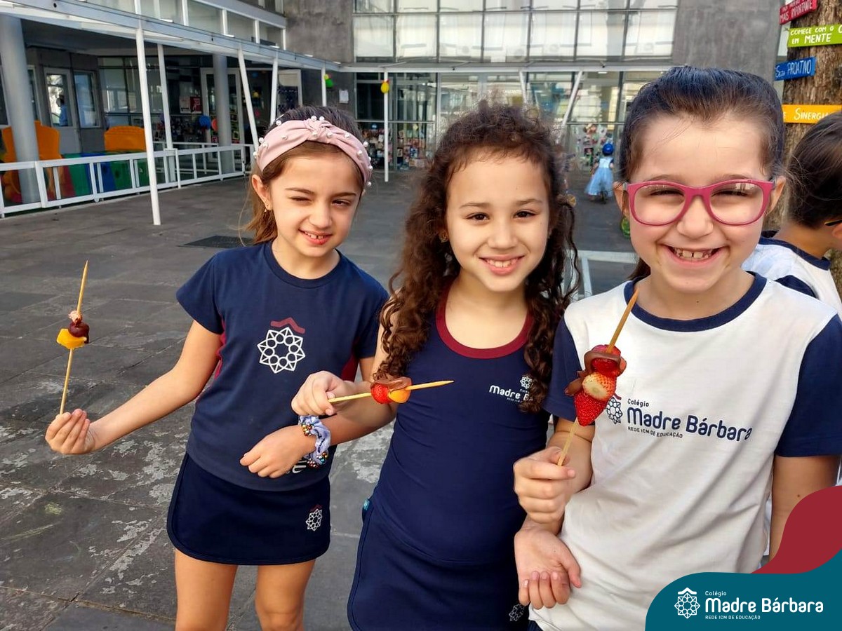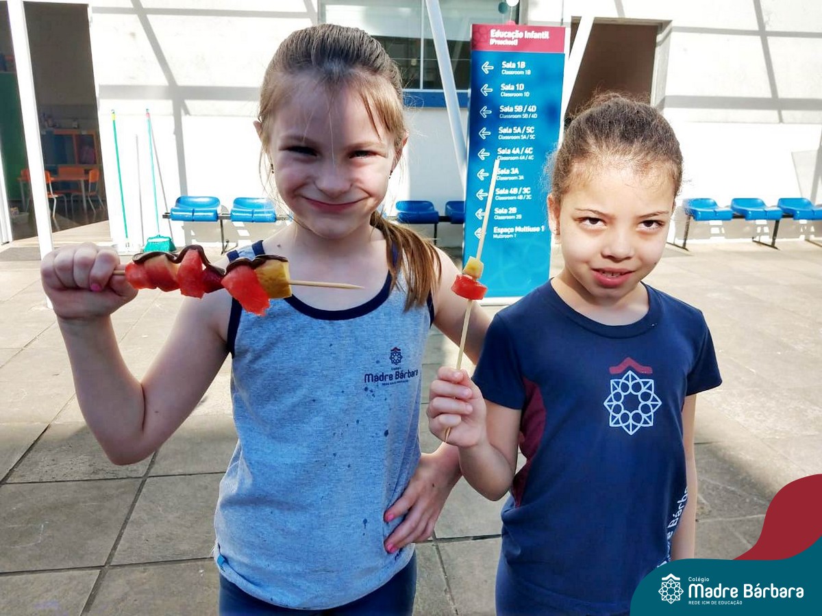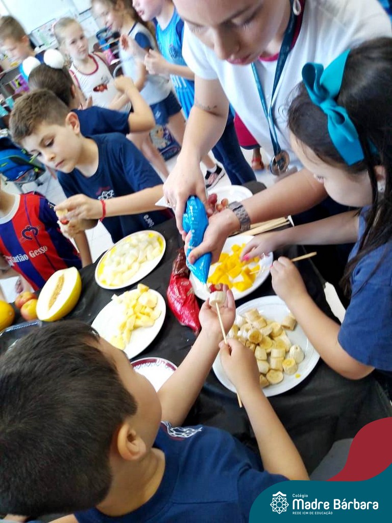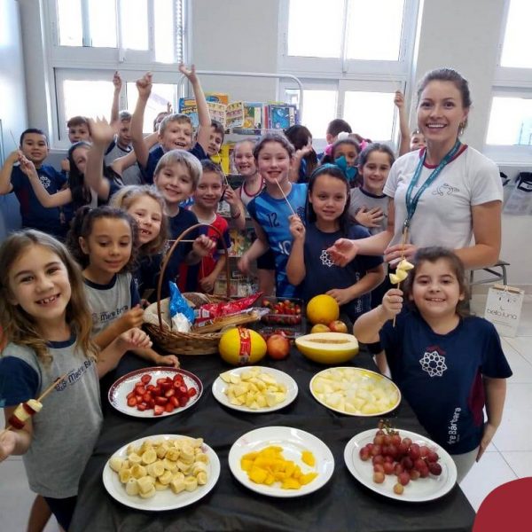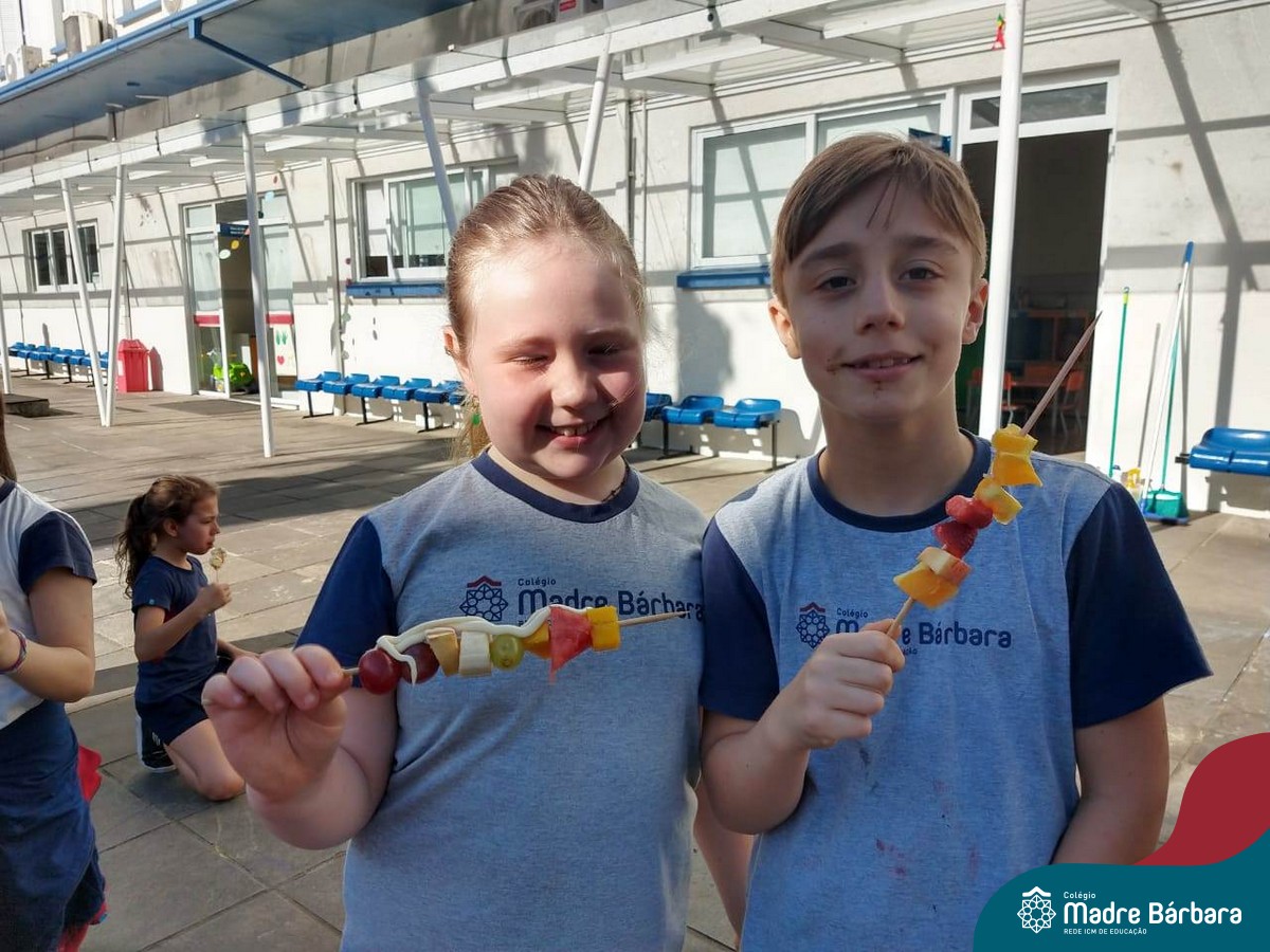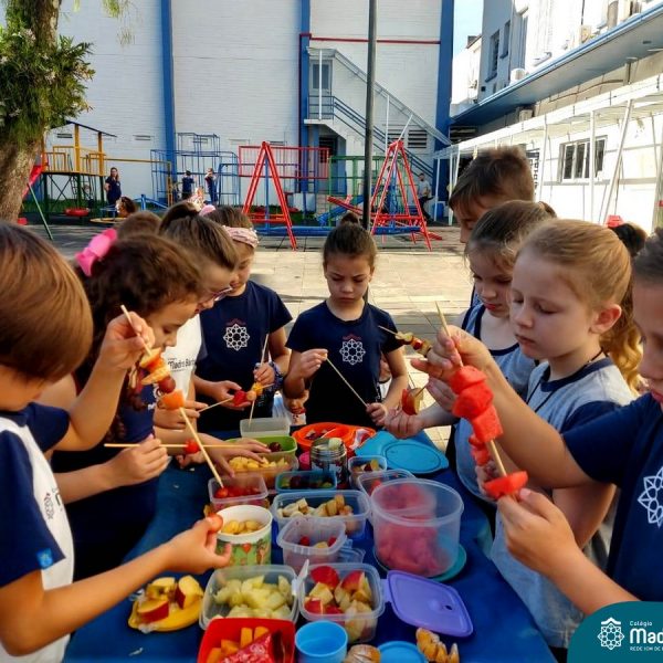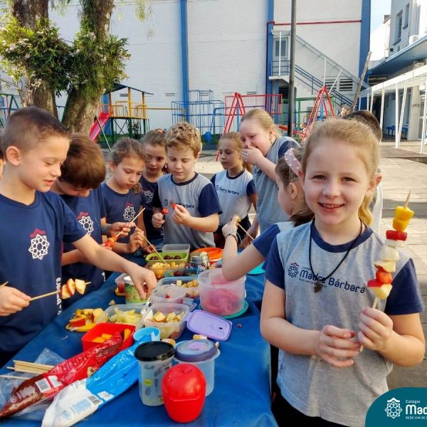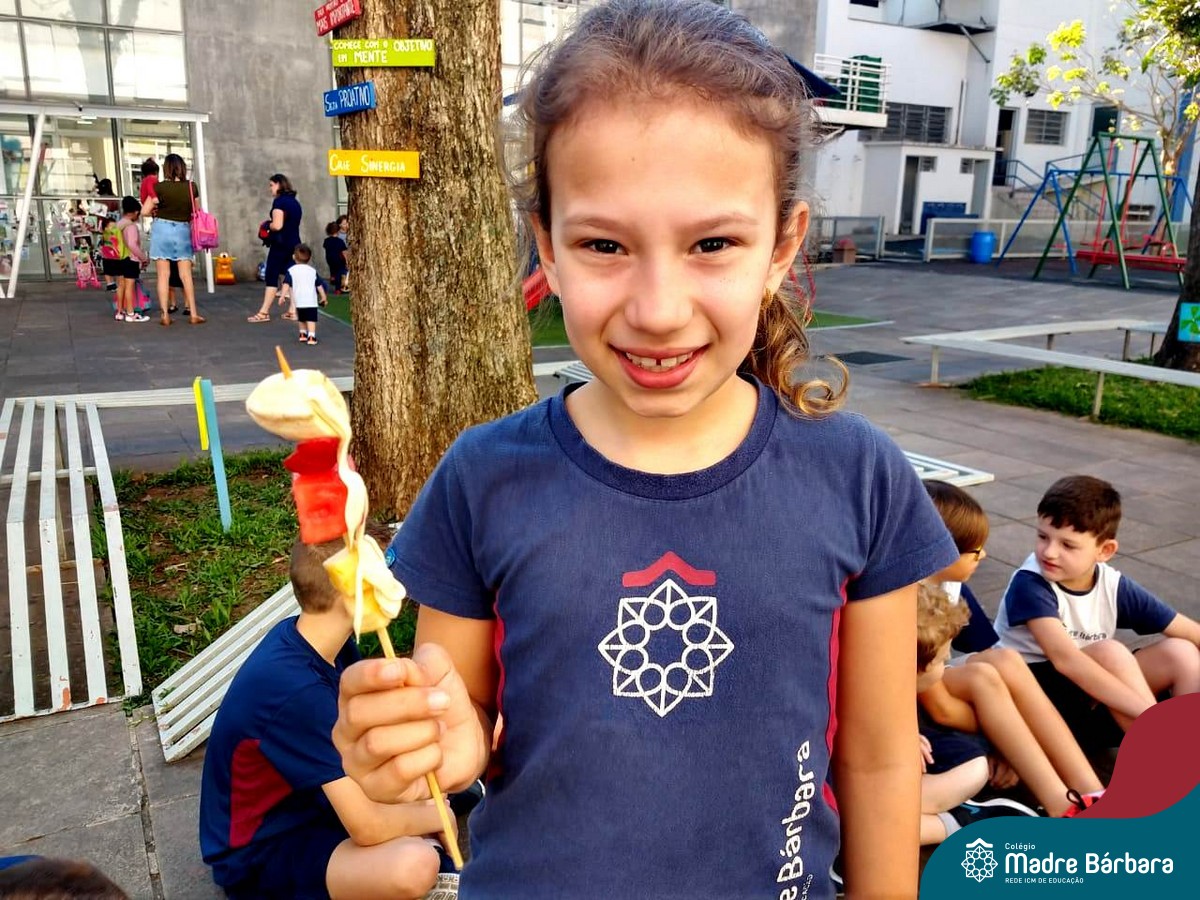 Na Semana da Criança teve o dia especial do espetinho de frutas com chocolate nos 2°s anos. As crianças puderam se deliciar e se lambuzar muito… será que amaram?!