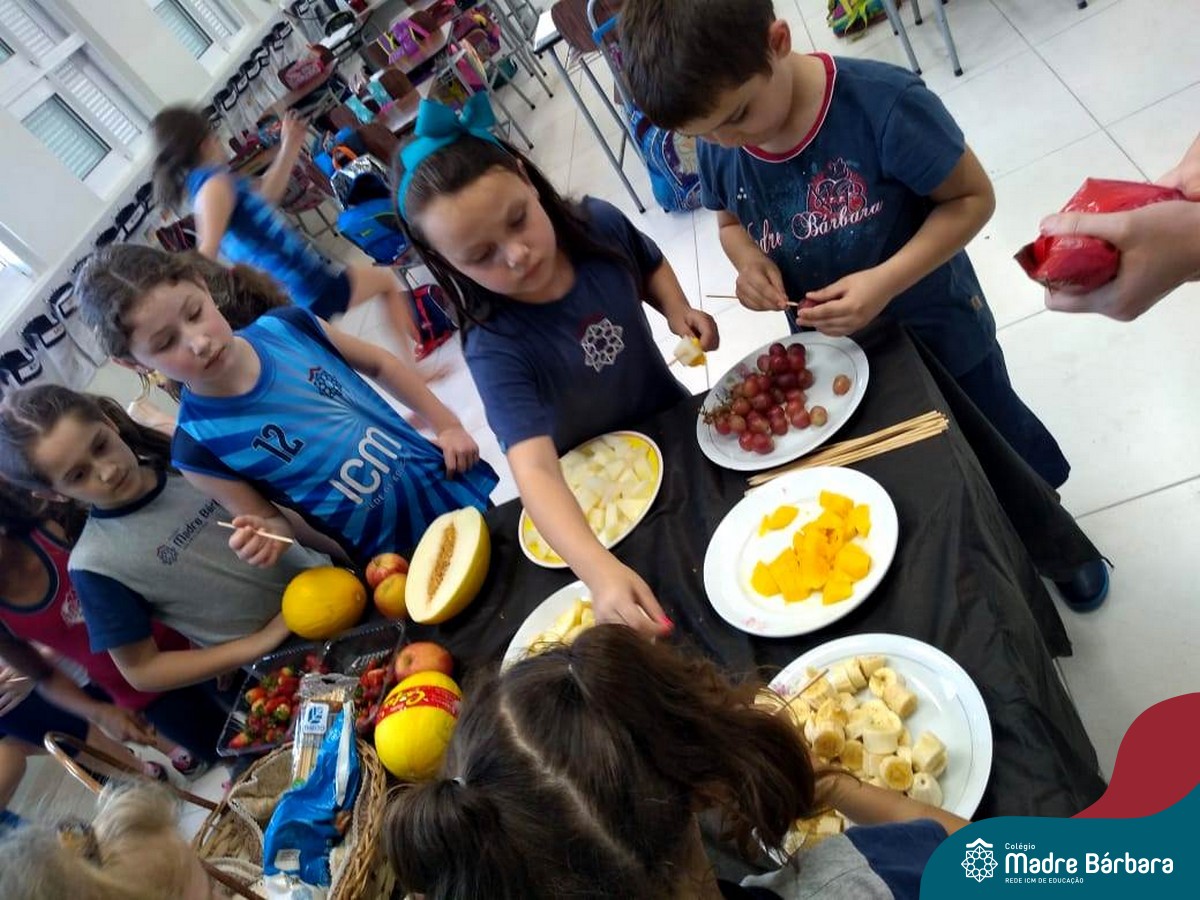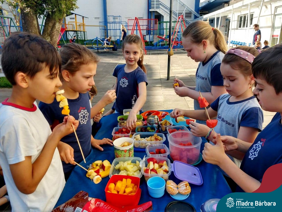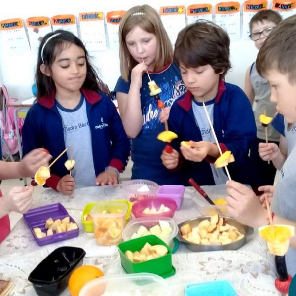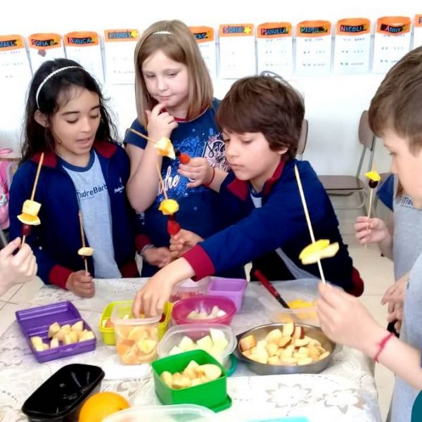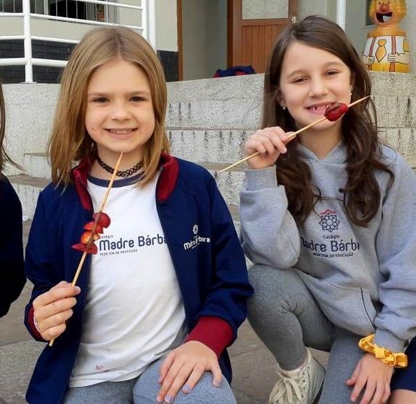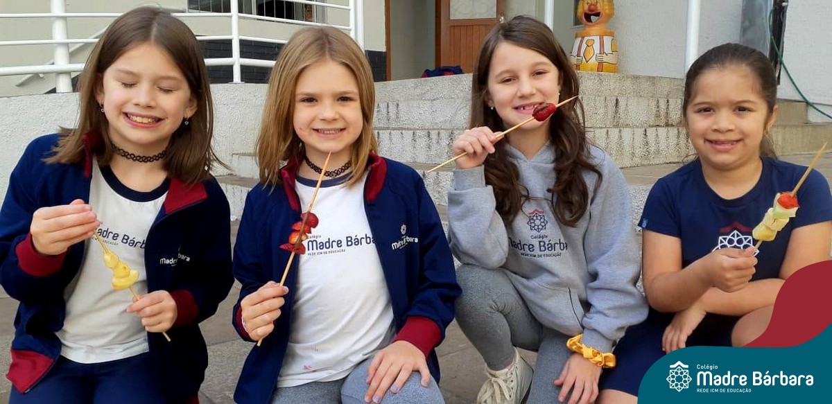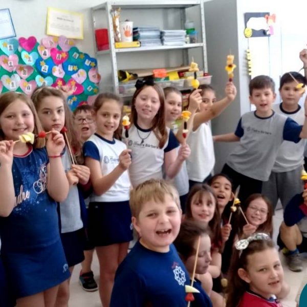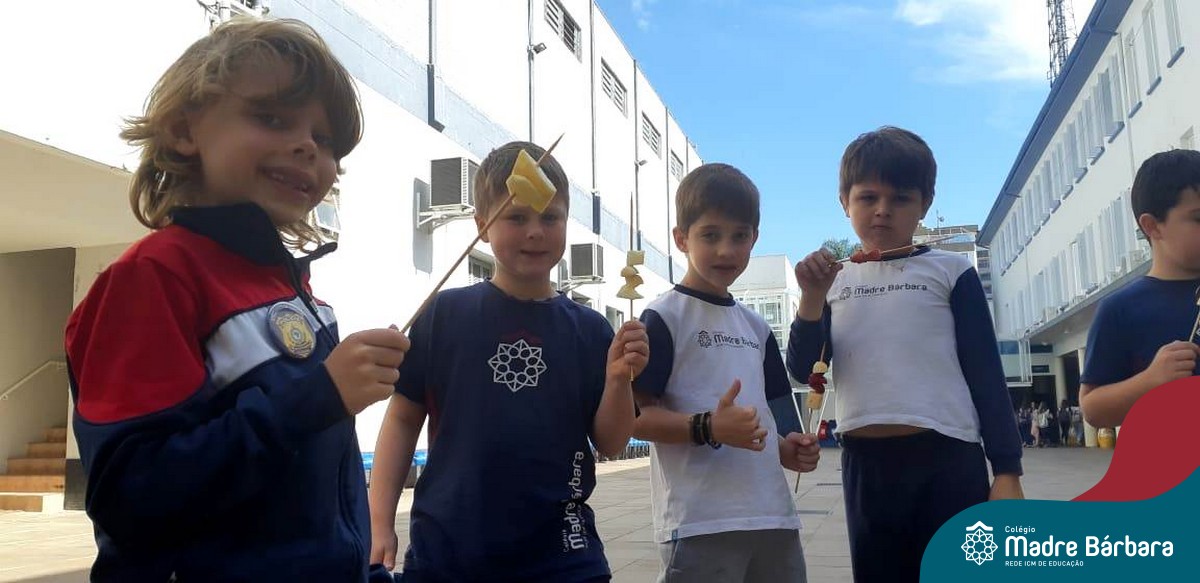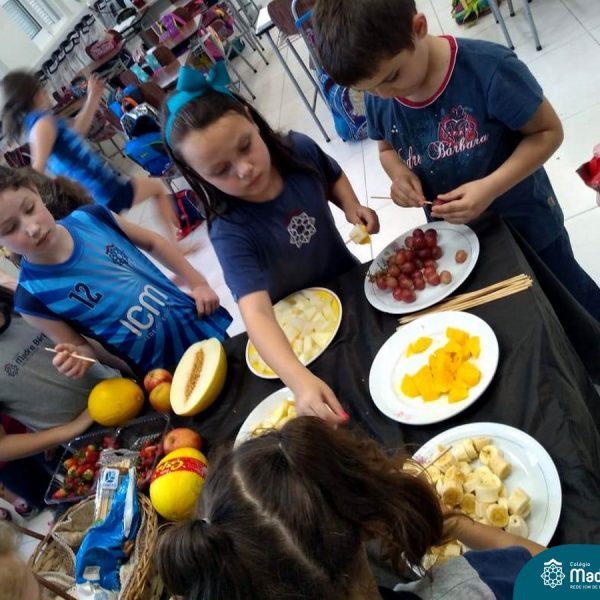Na Semana da Criança teve o dia especial do espetinho de frutas com chocolate nos 2°s anos. As crianças puderam se deliciar e se lambuzar muito… será que amaram?!