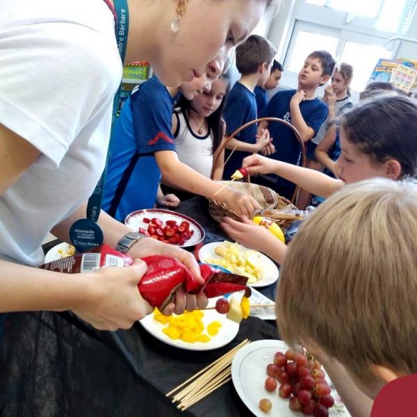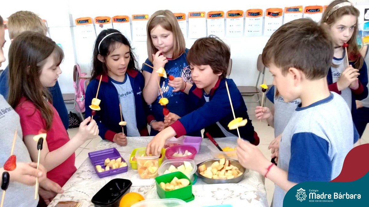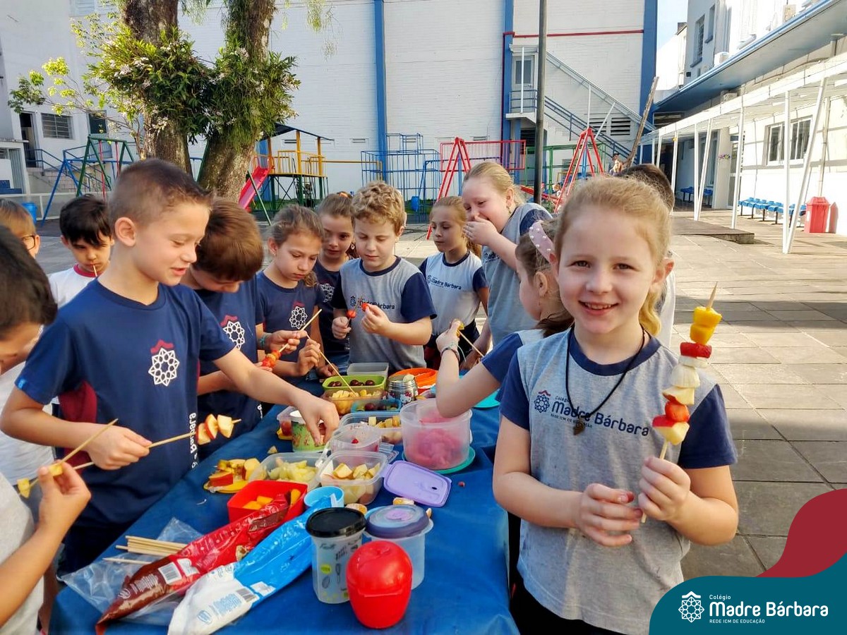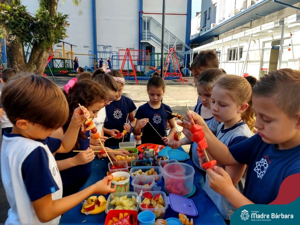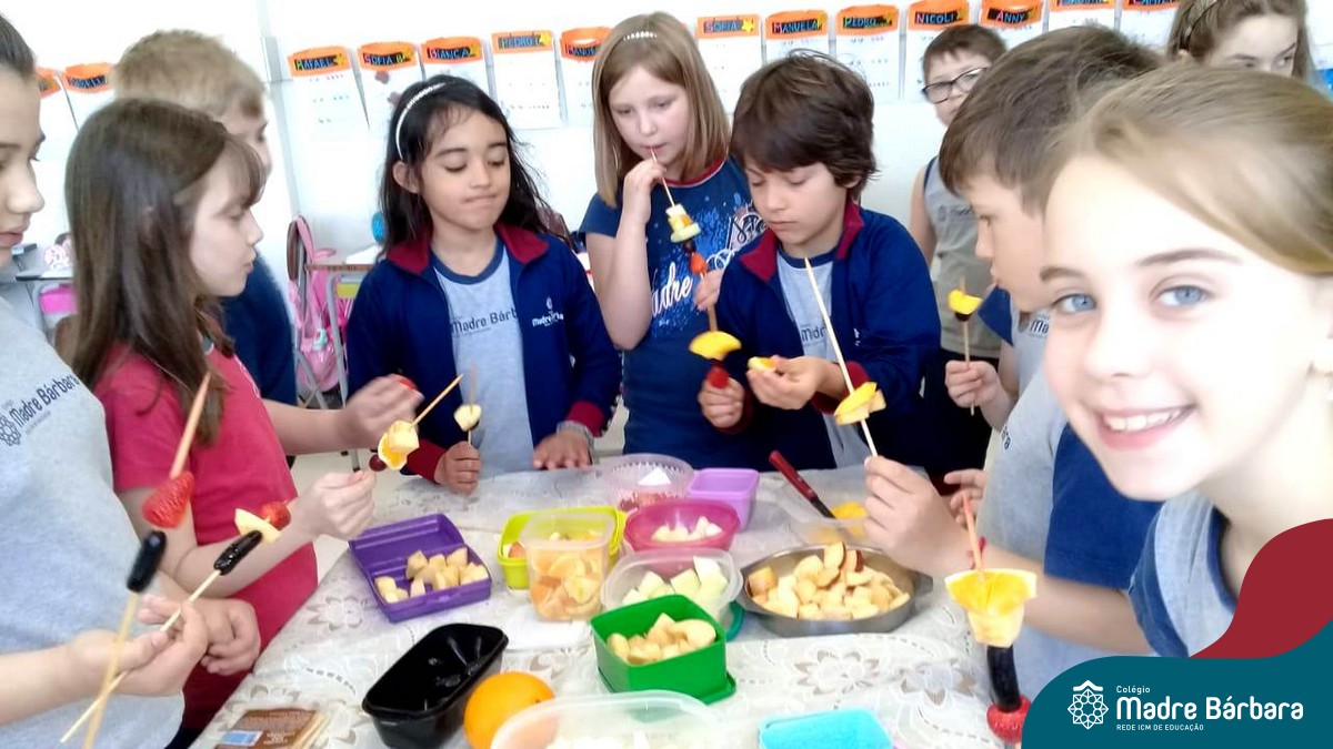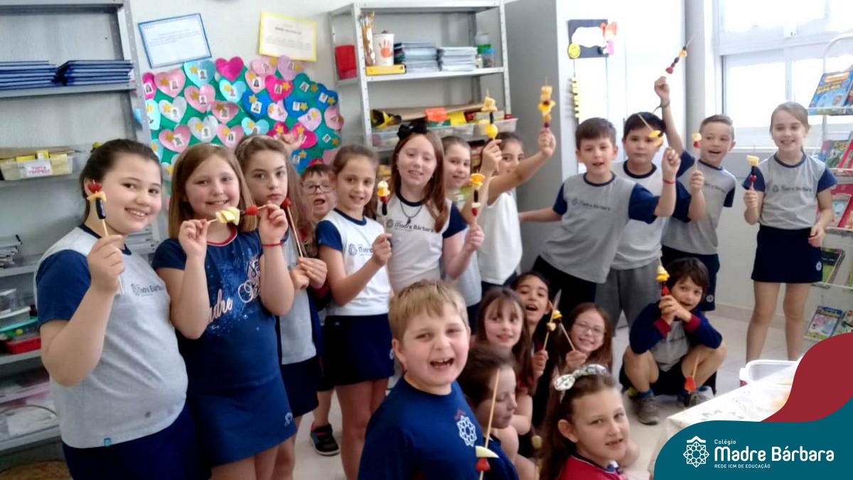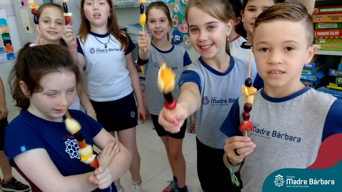 Na Semana da Criança teve o dia especial do espetinho de frutas com chocolate nos 2°s anos. As crianças puderam se deliciar e se lambuzar muito… será que amaram?!
