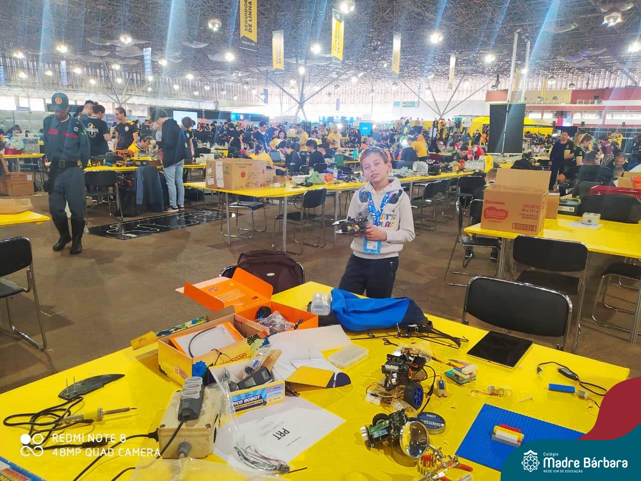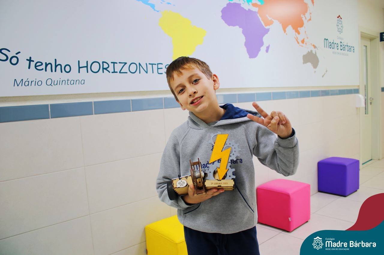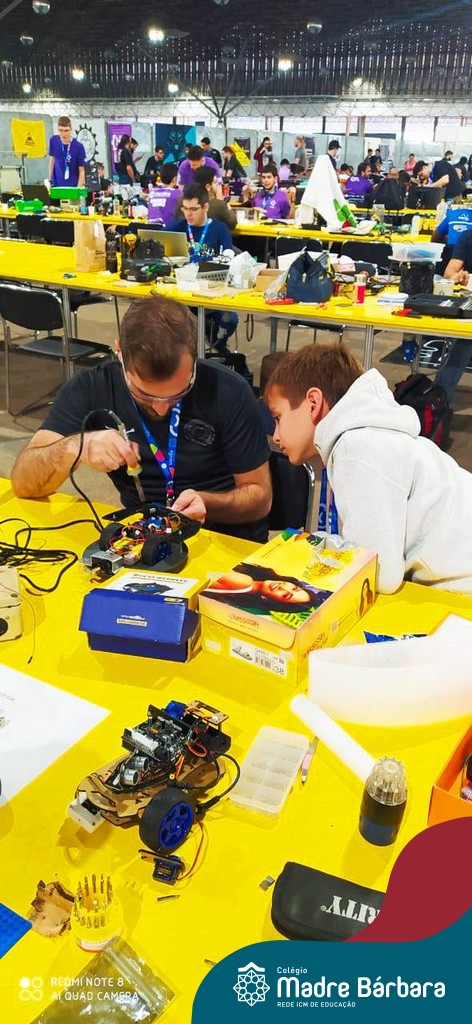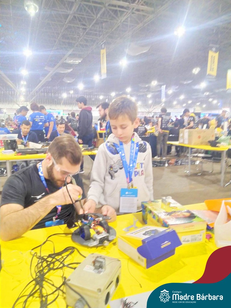O estudante do 4º ano do Ensino Fundamental – Anos Iniciais, Paolo Felipe Camilotti da turma 41, viajou para São Paulo para participar do Robô Core Experience, evento de combate de robôs no maior Festival de Tecnologia. Retornou com a premiação do segundo lugar. Antes das férias escolares, Paolo esteve, acompanhado do pai, compartilhando com as turmas o projeto executado por ele. A equipe de robótica Patetas Robots Team (PRT) é formada pelos “robotistas”: Paolo Felipe Camilotti Estrada 🇧🇷, Fernando Estrada🇵🇪, Ivan Lasso 🇨🇴 e Felipe Gonçalves 🇺🇾.