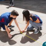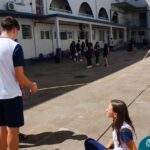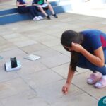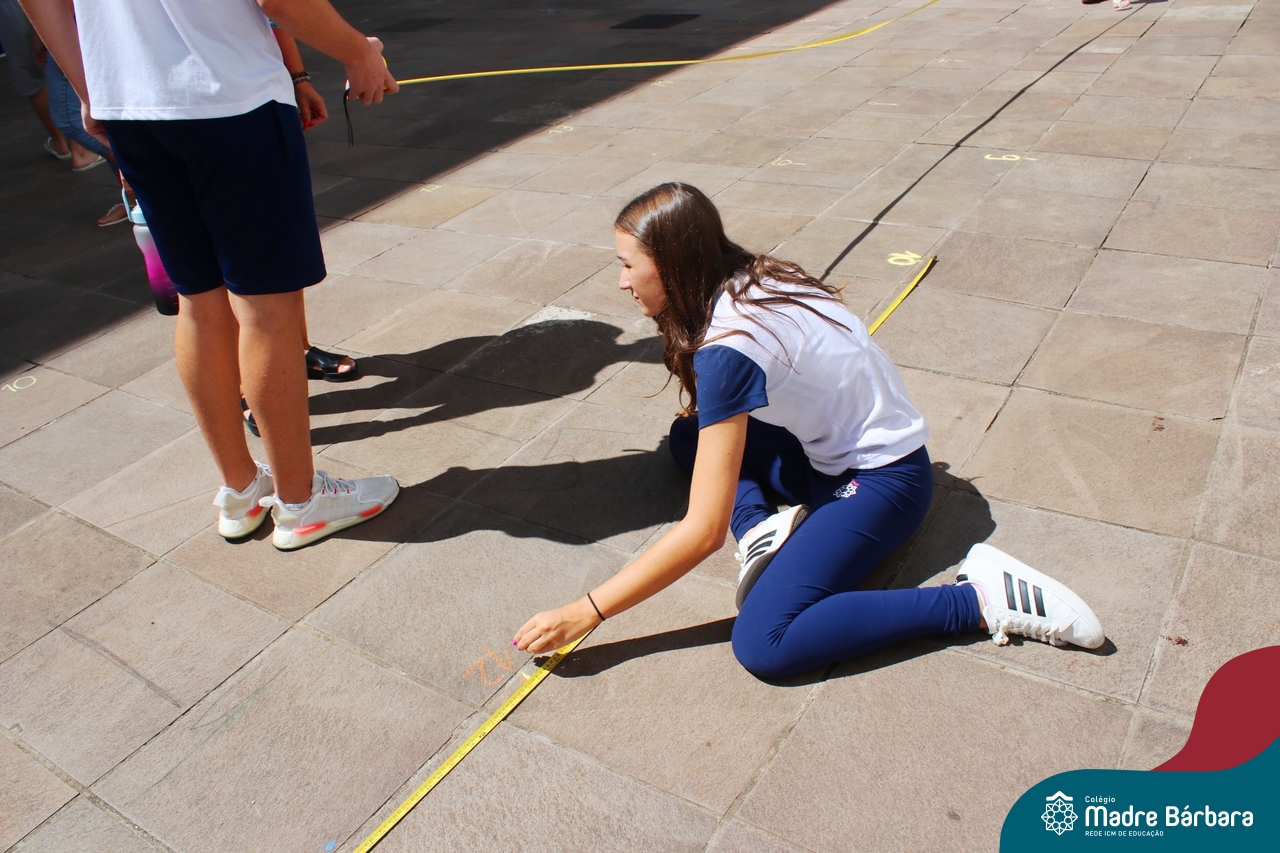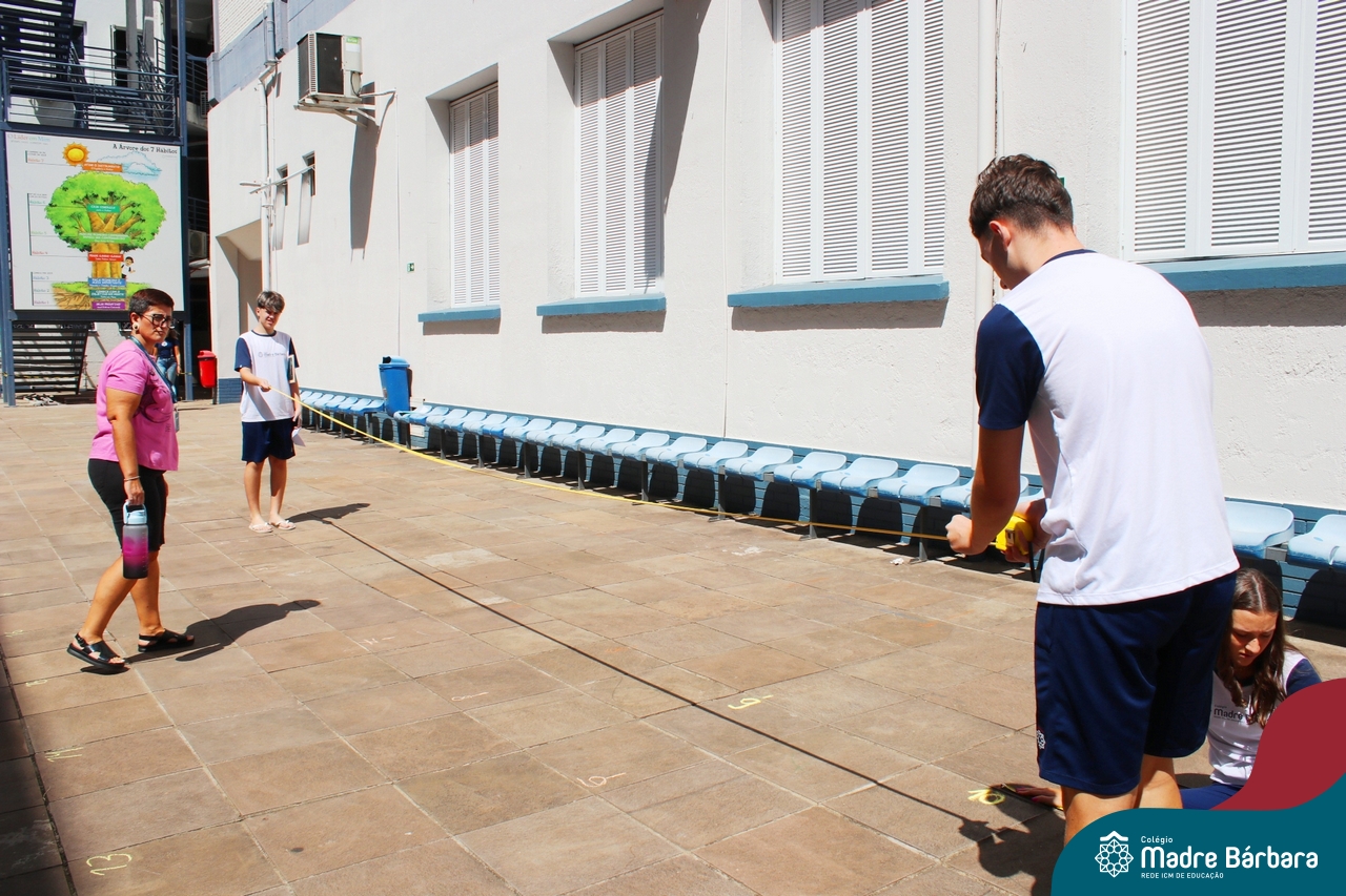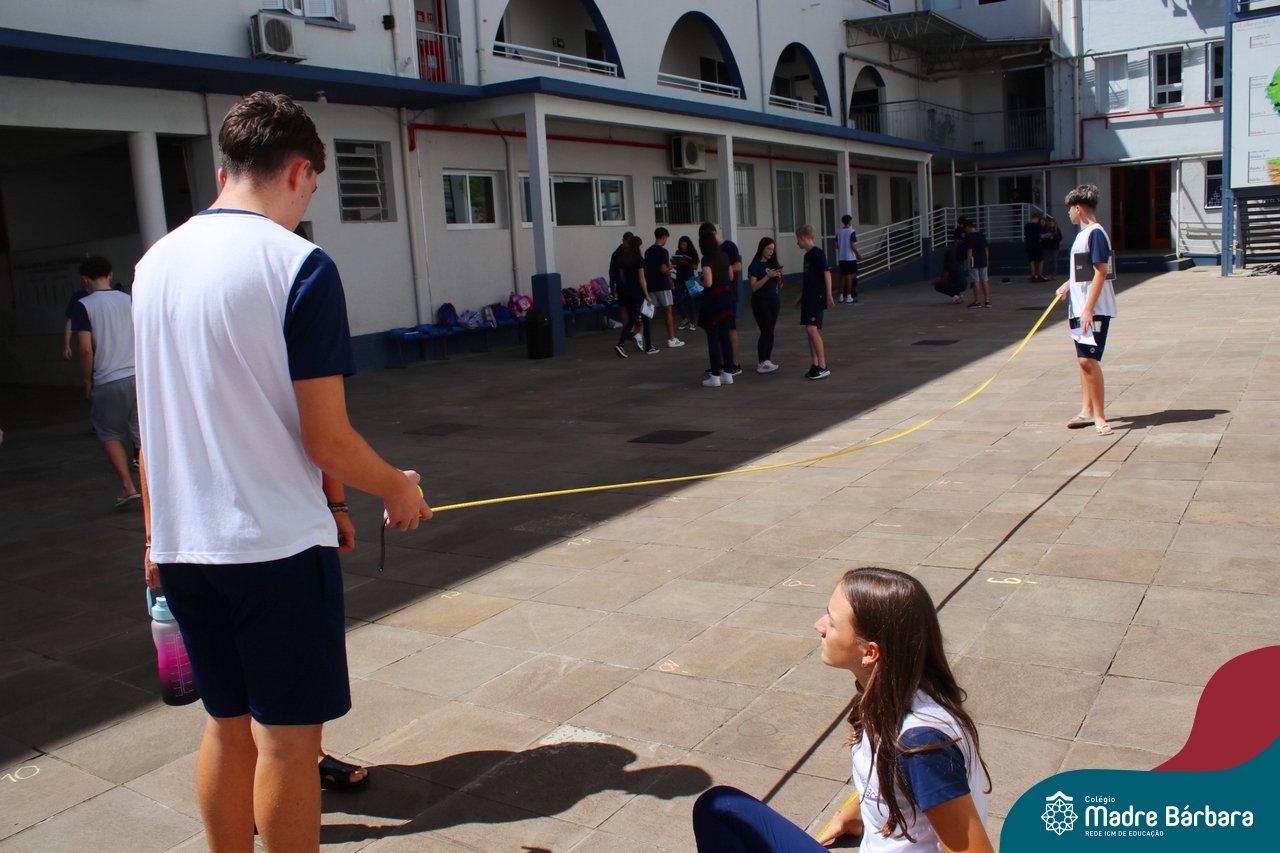 No pátio da escola, os estudantes do 1º ano do Ensino Médio, organizados em duplas ou trios, utilizaram trenas e giz para criar uma trajetória de 20 metros, marcando-a a cada metro. Em seguida, gravaram o deslocamento ao longo do percurso e registraram os dados em tabelas, que posteriormente foram transformadas em gráficos. Essa atividade prática na aula de física, buscou facilitar a compreensão e a construção do conceito de velocidade média, tornando o aprendizado mais dinâmico e visual.