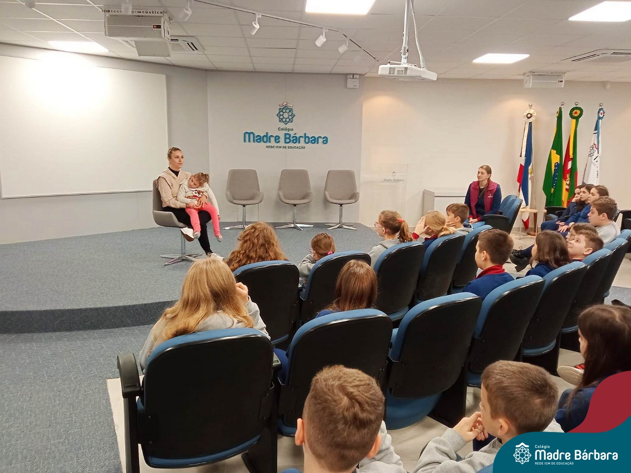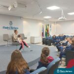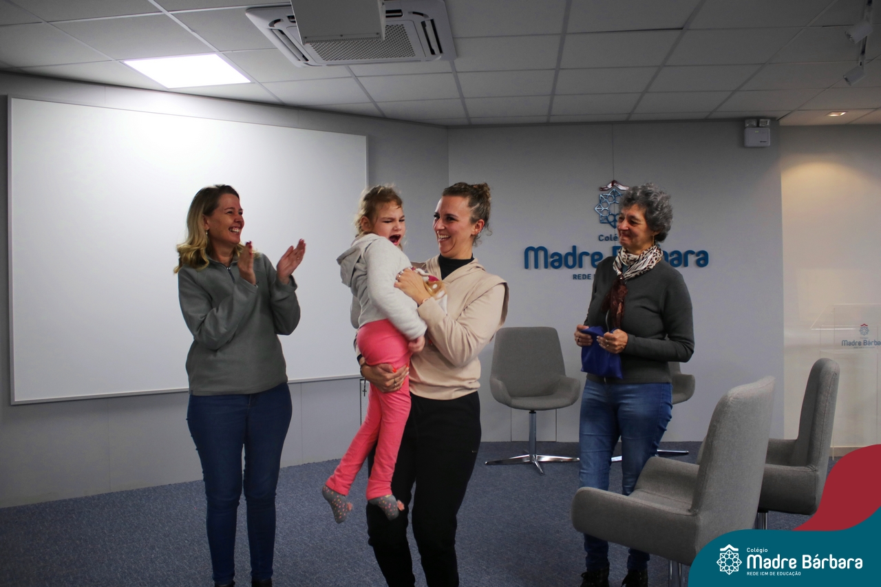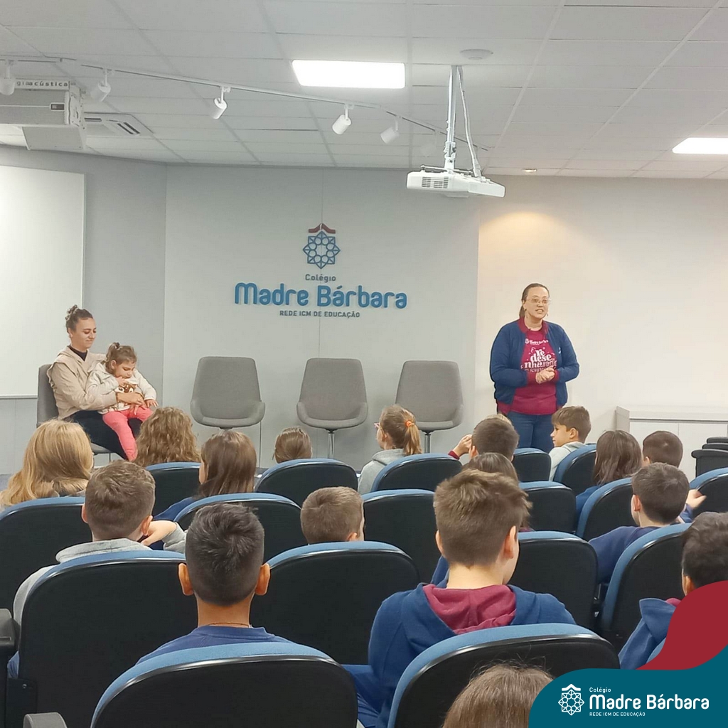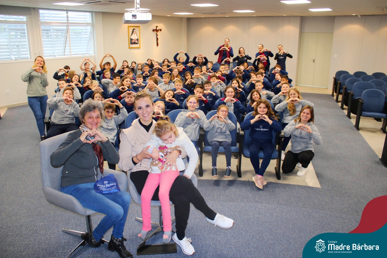 Desde 2015 o Colégio Madre Bárbara – Rede ICM realiza a arrecadação de tampinhas para serem doadas e auxiliar em tratamentos de saúde. Este ano, o Projeto dos 5ºs anos do Ensino Fundamental – Anos Iniciais para a Mostra Científico-pedagógica terá como tema “VALORizando a Solidariedade” onde irão pesquisar desde reciclagem, valor das tampinhas, importância do não-descarte para o meio ambiente, além da ação social e a forma que as tampinhas podem beneficiar aqueles que necessitam. Na manhã de segunda-feira (22.05) as turmas dos 5ºs anos receberam a menina Vitória Immich, acompanhada pela mãe Daniele e pela avó. No encontro, os estudantes puderam conhecer a rotina de vida dela, assim como os cuidados necessários que a família precisa ter no dia a dia. A mãe Danieli conversou sobre os gastos, as medicações e o que consegue fazer com a quantidade de tampas doadas pelo Colégio Madre Bárbara – Rede ICM, além de fazer com que entendam como ajudam com a doação. Danieli também contou as curiosidades e os gostos da Vitória e as atividades realizadas para melhorar a saúde e qualidade de vida.