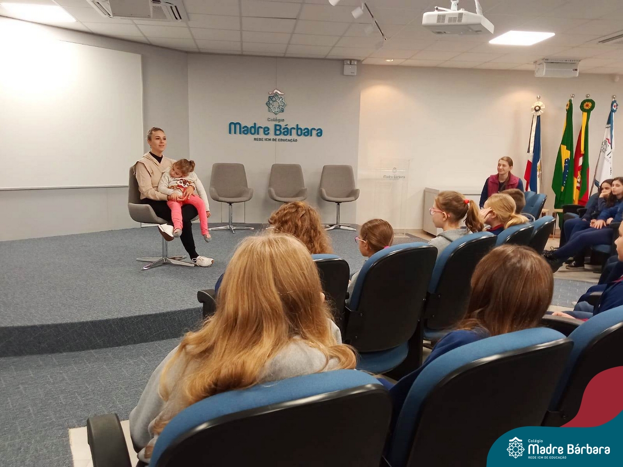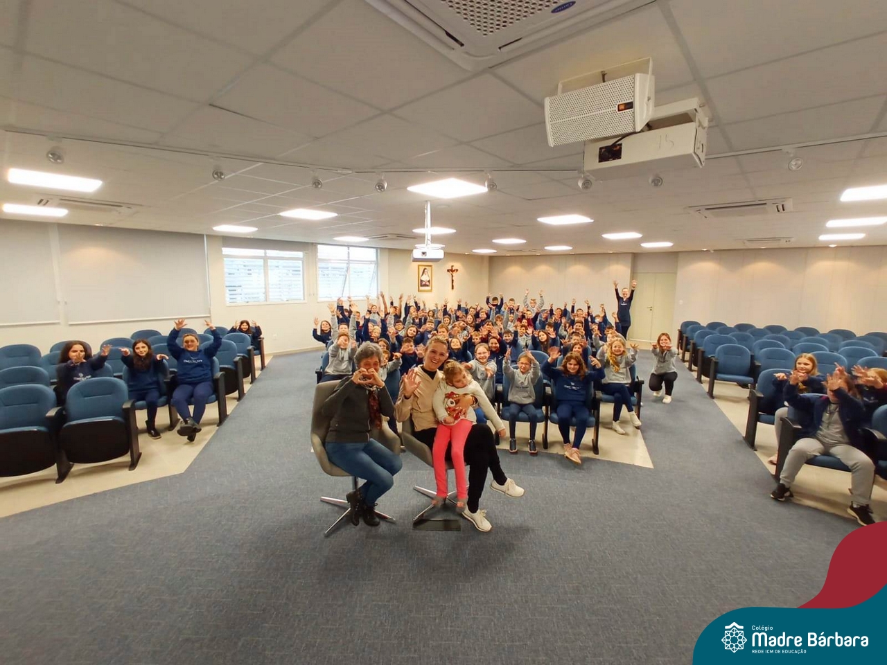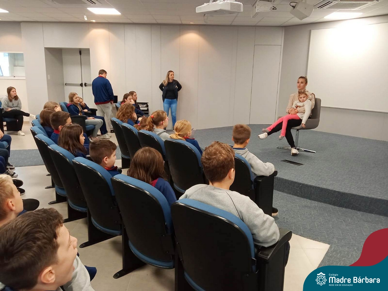 Desde 2015 o Colégio Madre Bárbara – Rede ICM realiza a arrecadação de tampinhas para serem doadas e auxiliar em tratamentos de saúde. Este ano, o Projeto dos 5ºs anos do Ensino Fundamental – Anos Iniciais para a Mostra Científico-pedagógica terá como tema “VALORizando a Solidariedade” onde irão pesquisar desde reciclagem, valor das tampinhas, importância do não-descarte para o meio ambiente, além da ação social e a forma que as tampinhas podem beneficiar aqueles que necessitam. Na manhã de segunda-feira (22.05) as turmas dos 5ºs anos receberam a menina Vitória Immich, acompanhada pela mãe Daniele e pela avó. No encontro, os estudantes puderam conhecer a rotina de vida dela, assim como os cuidados necessários que a família precisa ter no dia a dia. A mãe Danieli conversou sobre os gastos, as medicações e o que consegue fazer com a quantidade de tampas doadas pelo Colégio Madre Bárbara – Rede ICM, além de fazer com que entendam como ajudam com a doação. Danieli também contou as curiosidades e os gostos da Vitória e as atividades realizadas para melhorar a saúde e qualidade de vida.