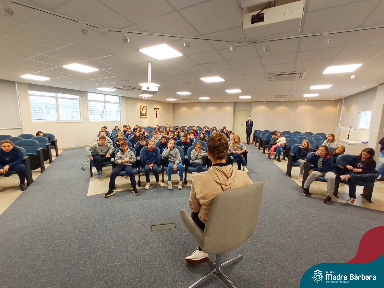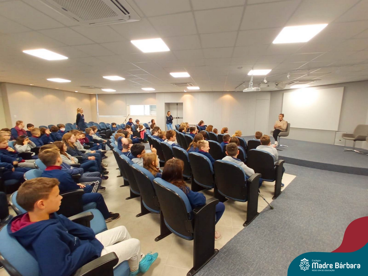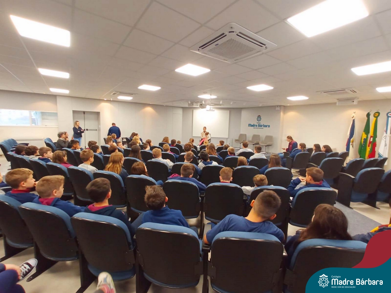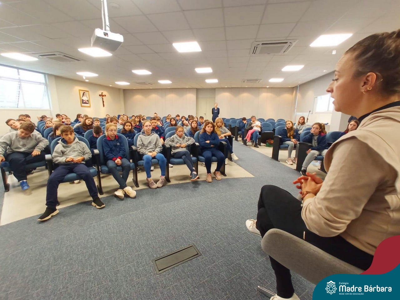 Desde 2015 o Colégio Madre Bárbara – Rede ICM realiza a arrecadação de tampinhas para serem doadas e auxiliar em tratamentos de saúde. Este ano, o Projeto dos 5ºs anos do Ensino Fundamental – Anos Iniciais para a Mostra Científico-pedagógica terá como tema “VALORizando a Solidariedade” onde irão pesquisar desde reciclagem, valor das tampinhas, importância do não-descarte para o meio ambiente, além da ação social e a forma que as tampinhas podem beneficiar aqueles que necessitam. Na manhã de segunda-feira (22.05) as turmas dos 5ºs anos receberam a menina Vitória Immich, acompanhada pela mãe Daniele e pela avó. No encontro, os estudantes puderam conhecer a rotina de vida dela, assim como os cuidados necessários que a família precisa ter no dia a dia. A mãe Danieli conversou sobre os gastos, as medicações e o que consegue fazer com a quantidade de tampas doadas pelo Colégio Madre Bárbara – Rede ICM, além de fazer com que entendam como ajudam com a doação. Danieli também contou as curiosidades e os gostos da Vitória e as atividades realizadas para melhorar a saúde e qualidade de vida.