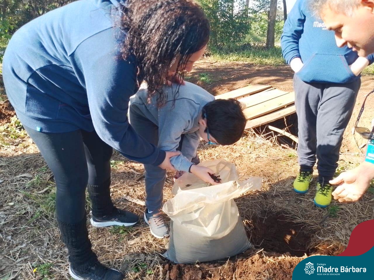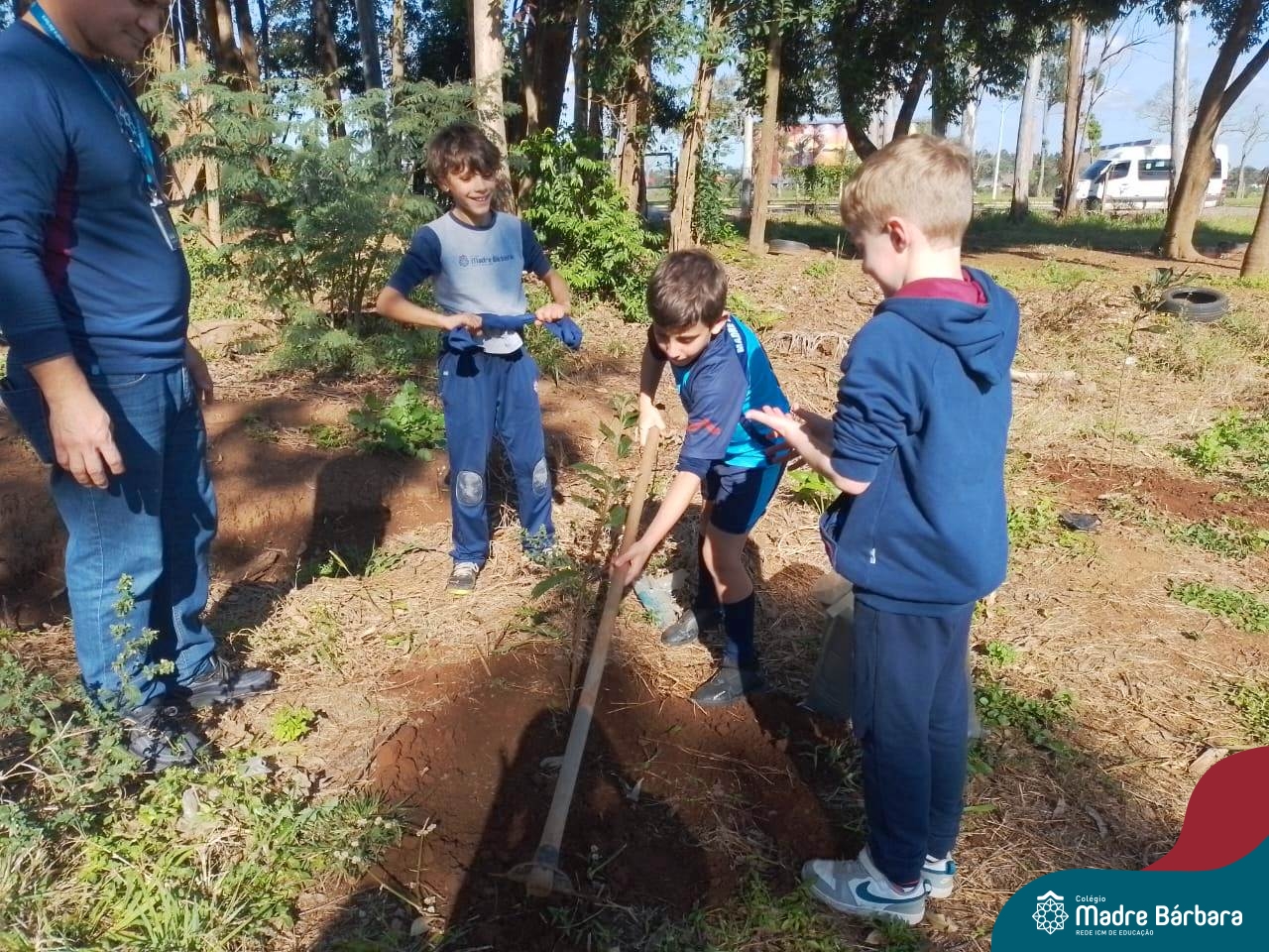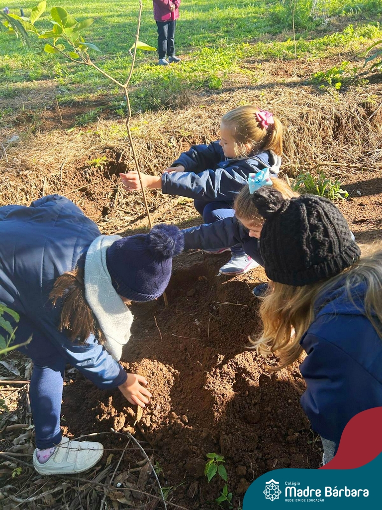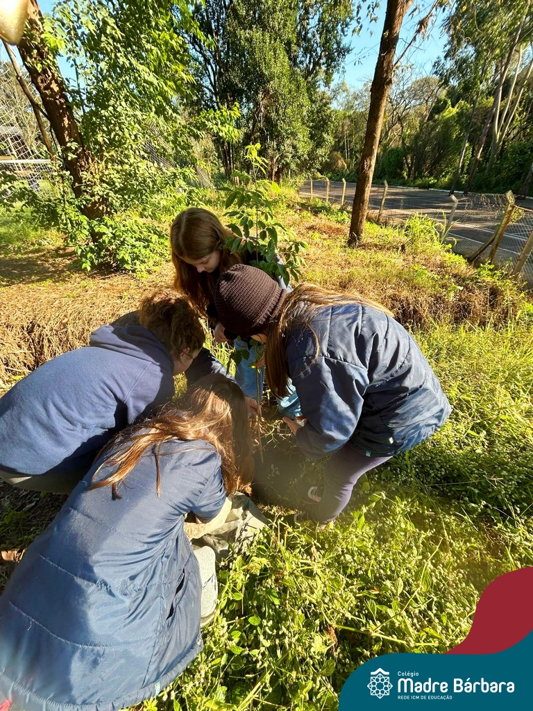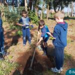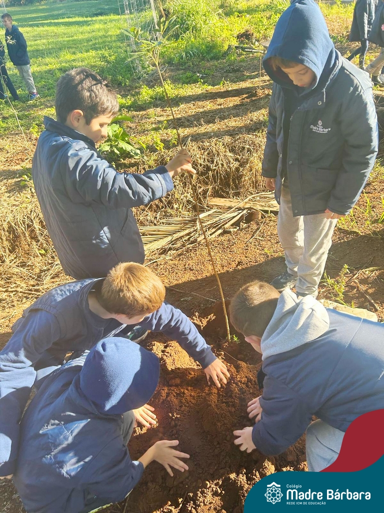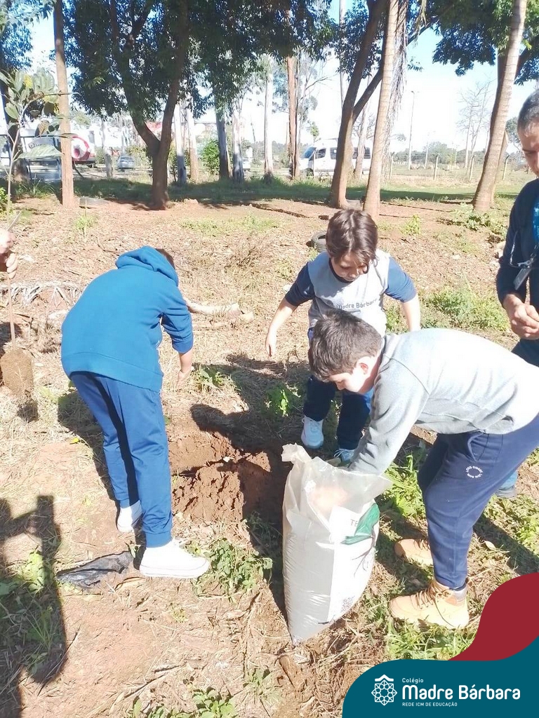 Os alunos dos 4º anos do Colégio Madre Bárbara participaram de uma ação especial de plantio de árvores nativas no espaço de formação do colégio. A atividade integra o projeto “Biomas Brasileiros”, que busca promover a conscientização ambiental por meio do estudo e da vivência prática.