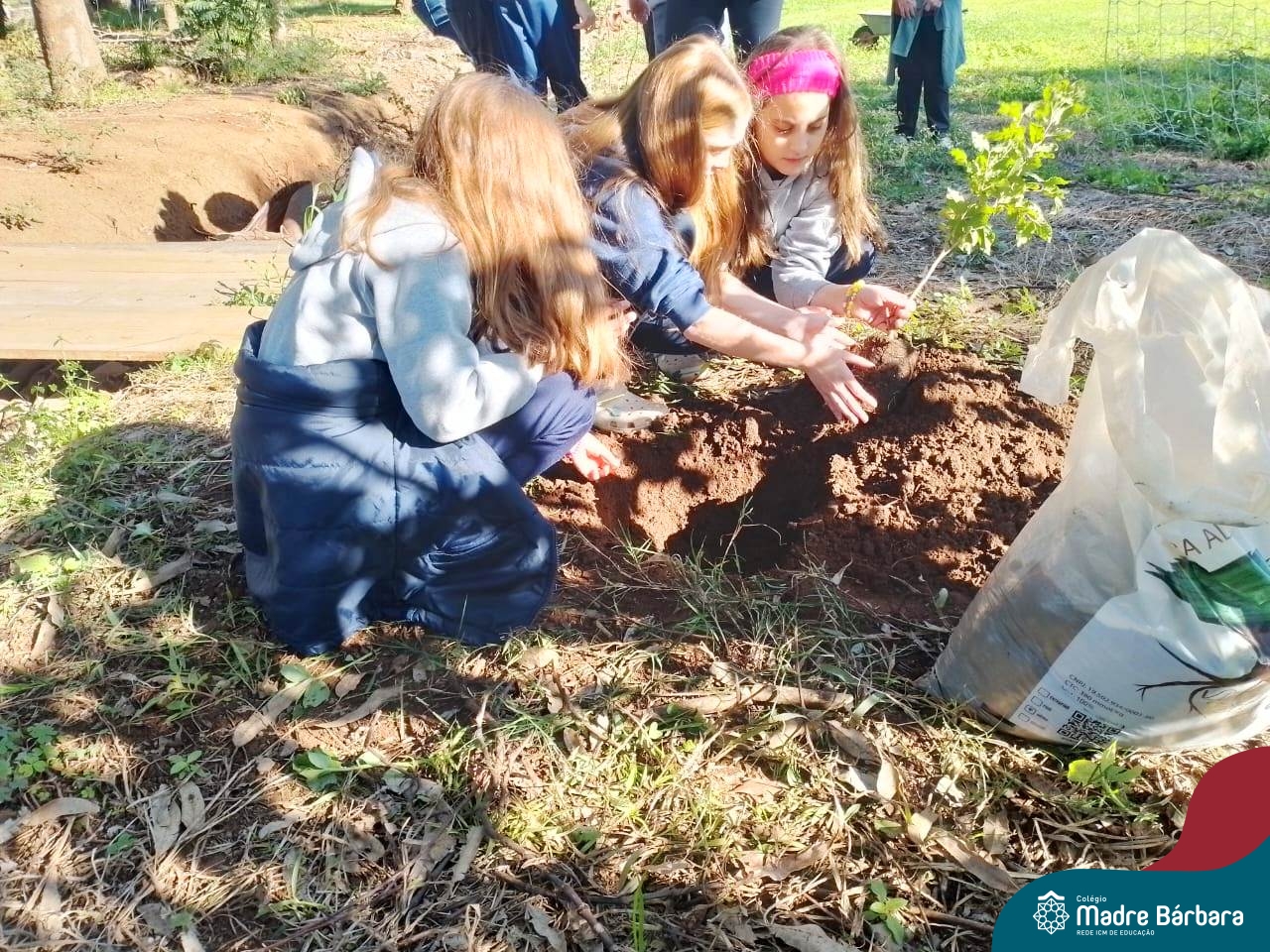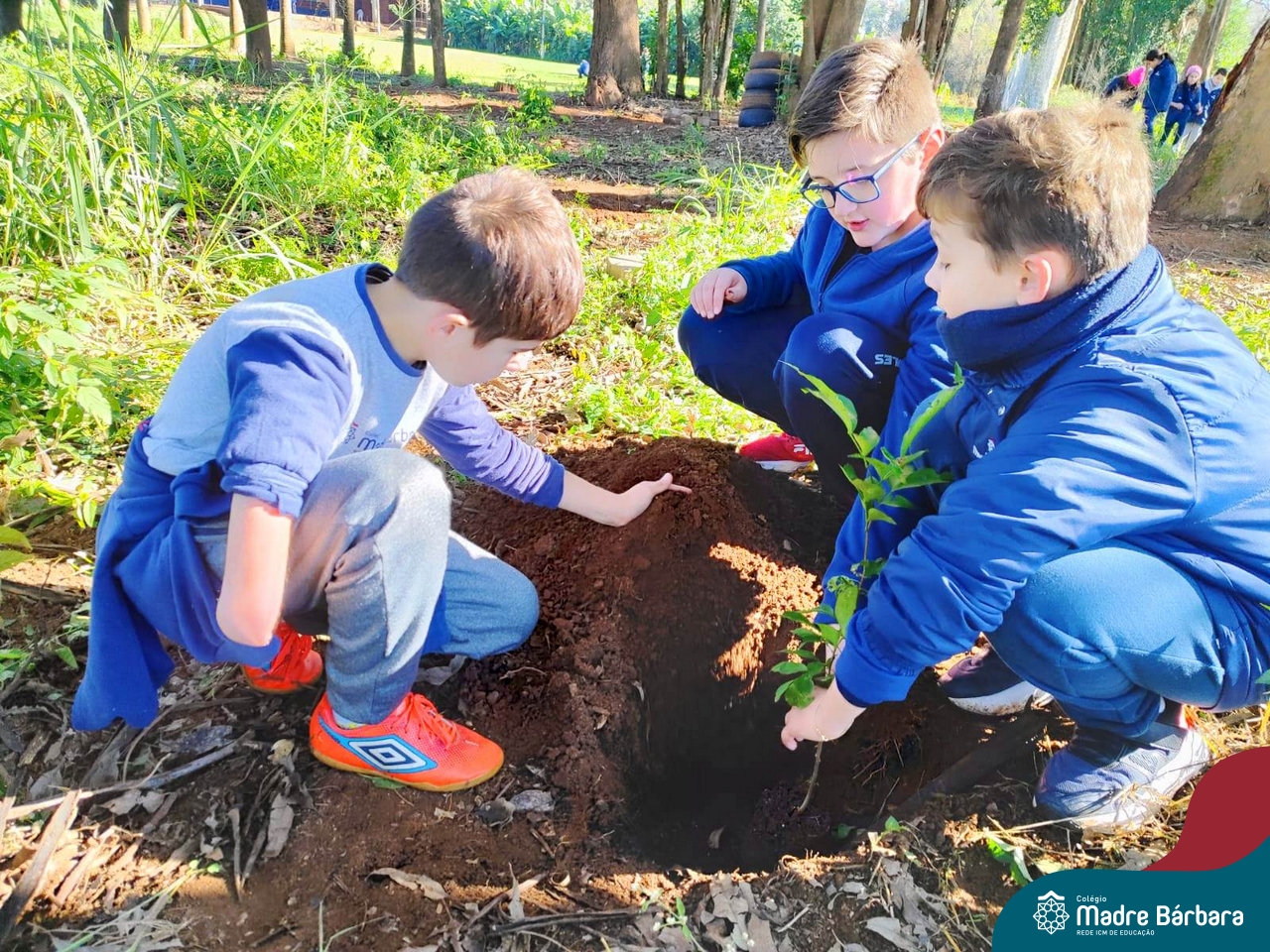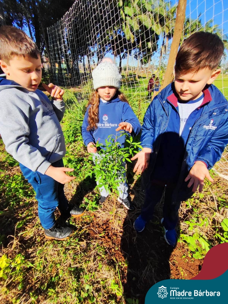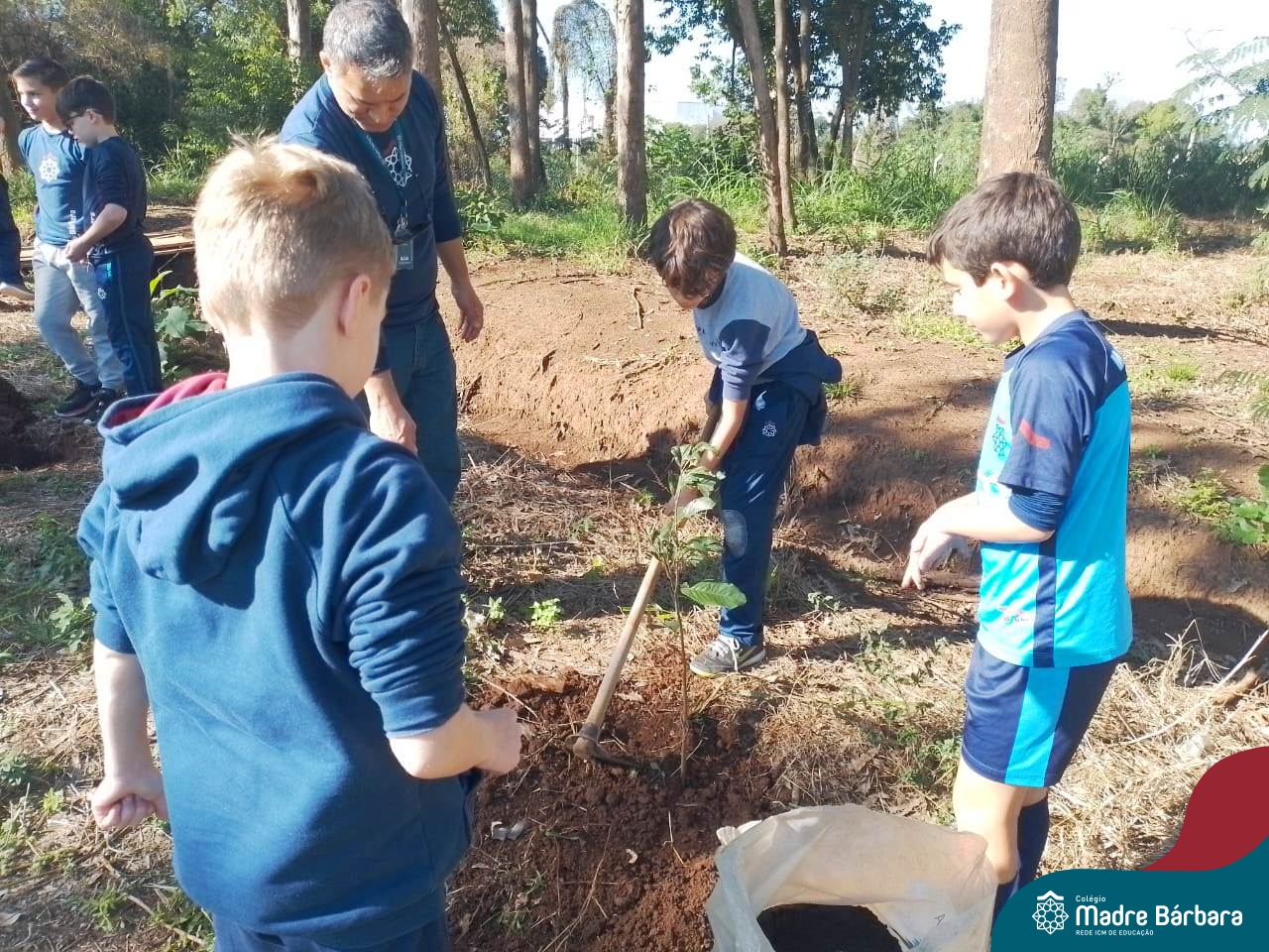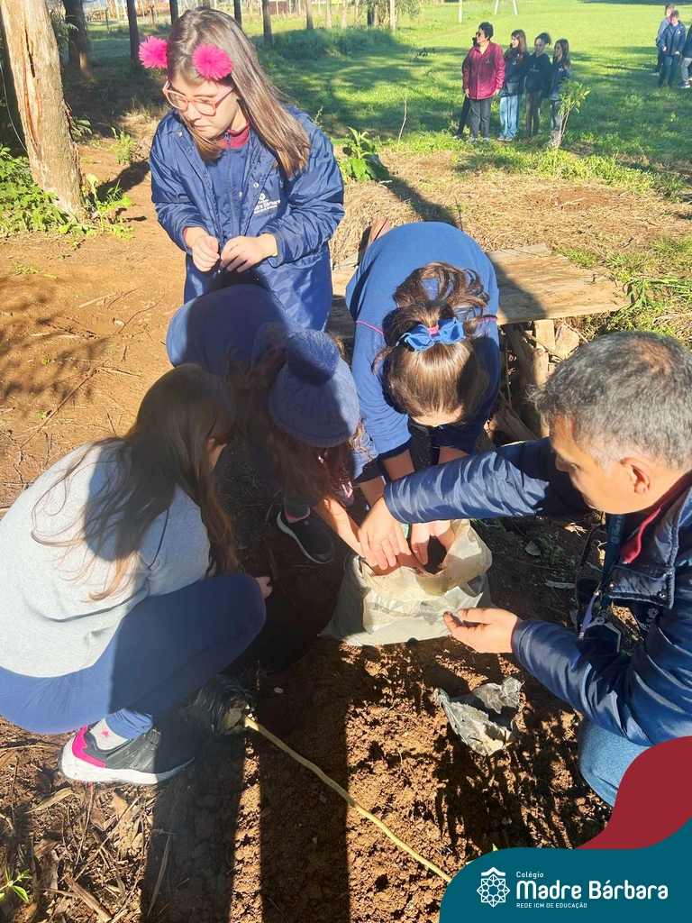 Os alunos dos 4º anos do Colégio Madre Bárbara participaram de uma ação especial de plantio de árvores nativas no espaço de formação do colégio. A atividade integra o projeto “Biomas Brasileiros”, que busca promover a conscientização ambiental por meio do estudo e da vivência prática.