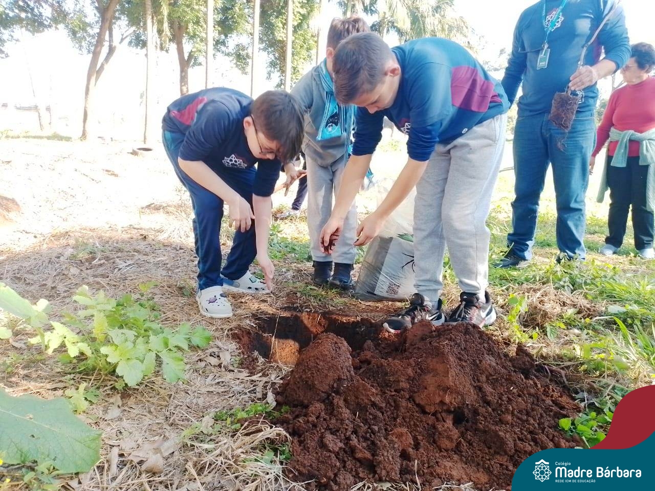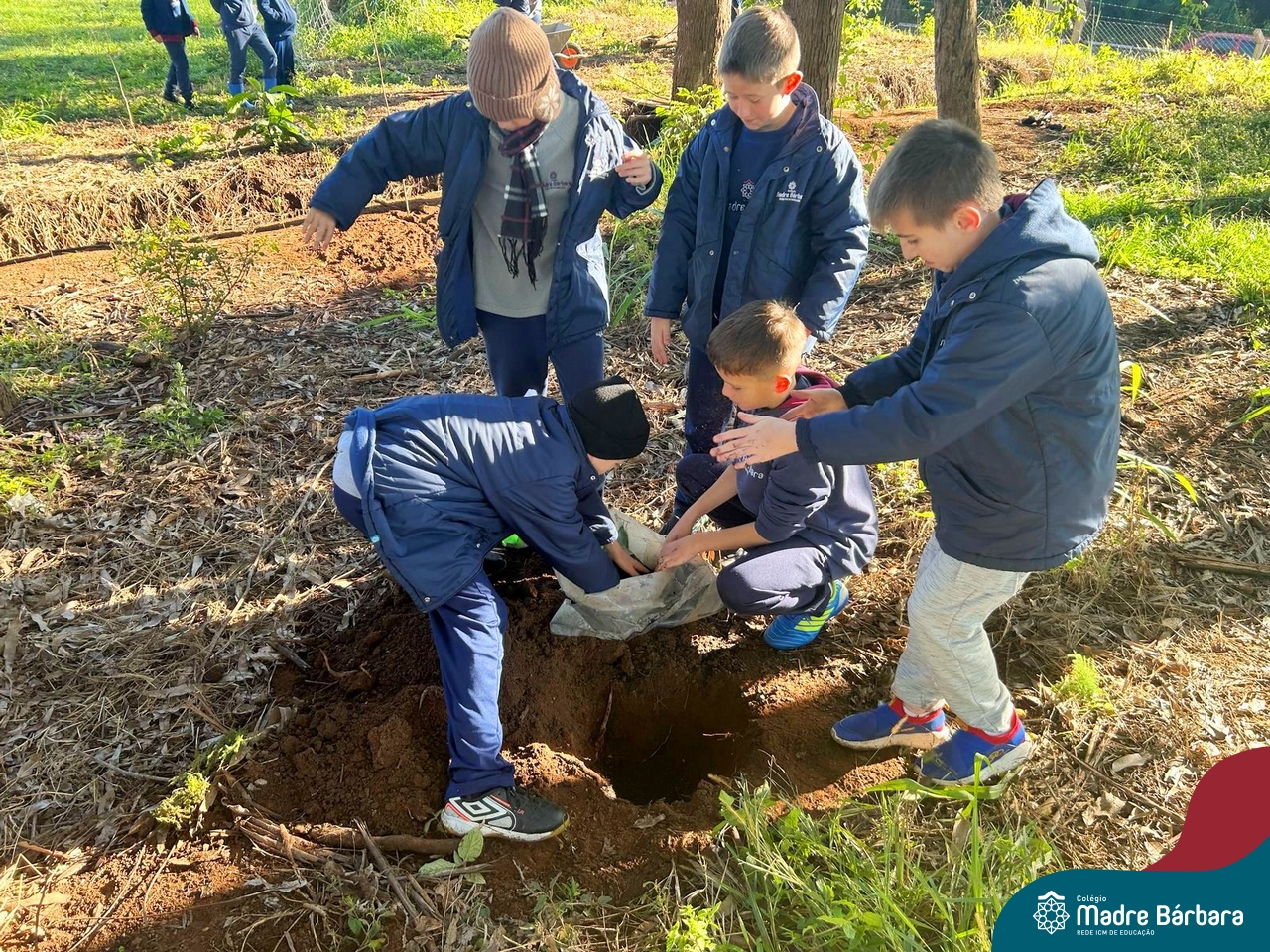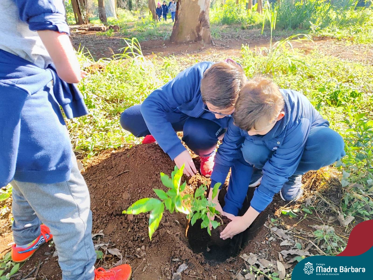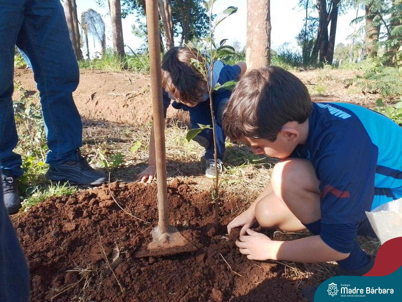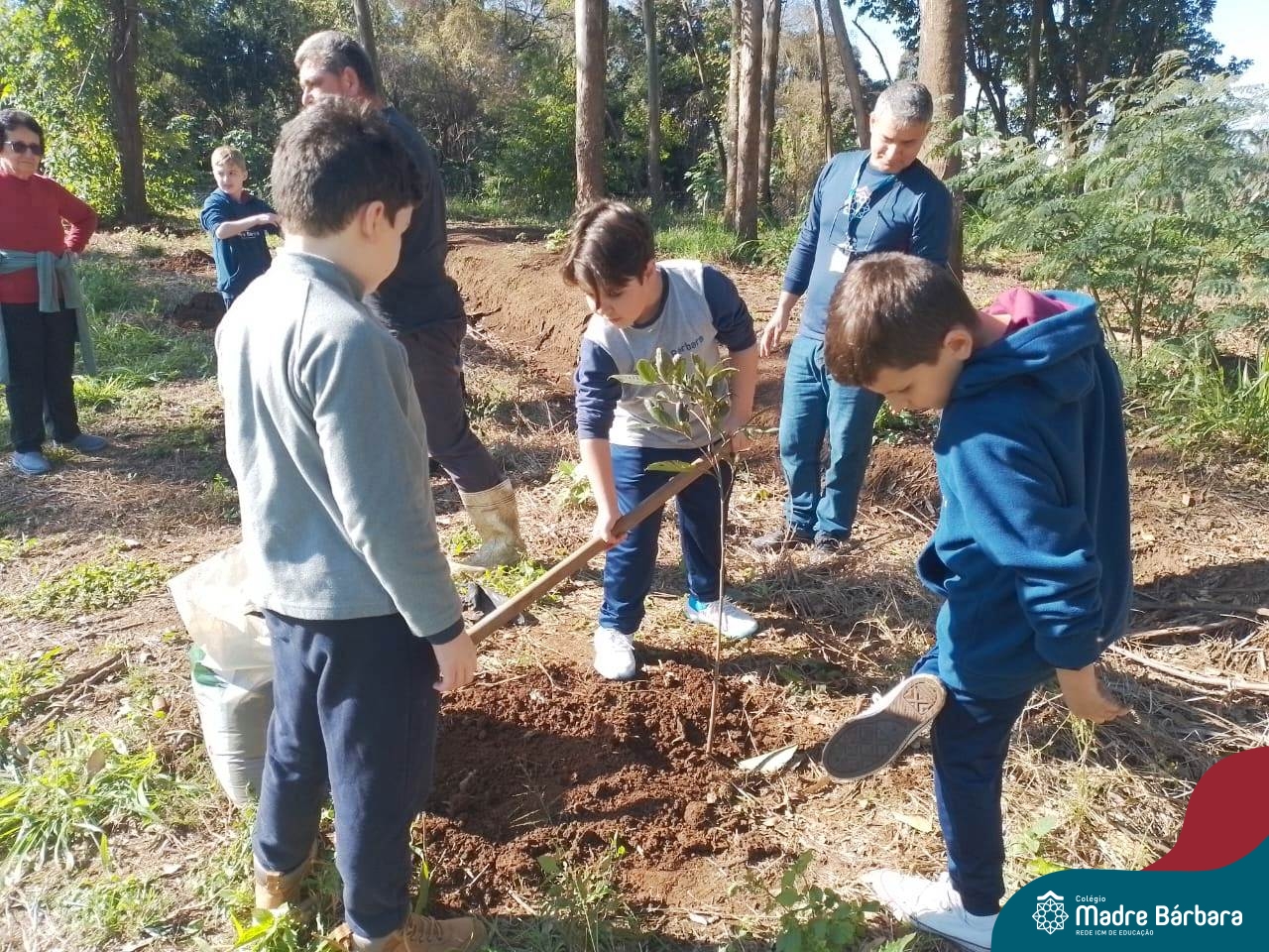 Os alunos dos 4º anos do Colégio Madre Bárbara participaram de uma ação especial de plantio de árvores nativas no espaço de formação do colégio. A atividade integra o projeto “Biomas Brasileiros”, que busca promover a conscientização ambiental por meio do estudo e da vivência prática.