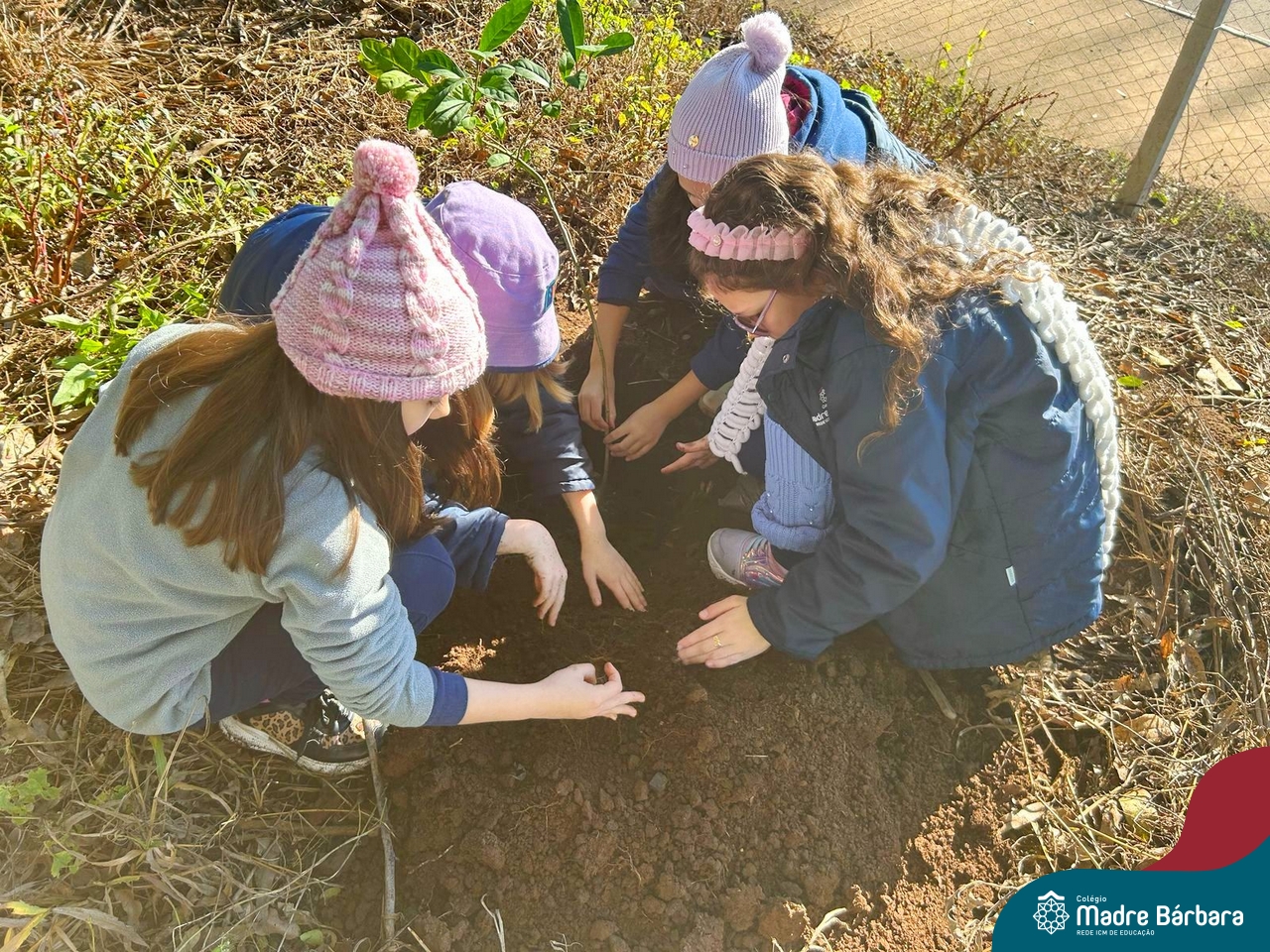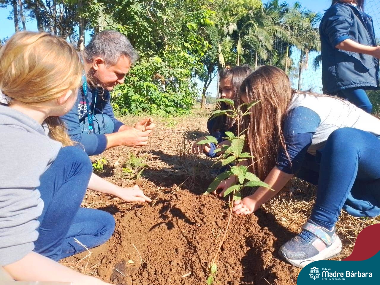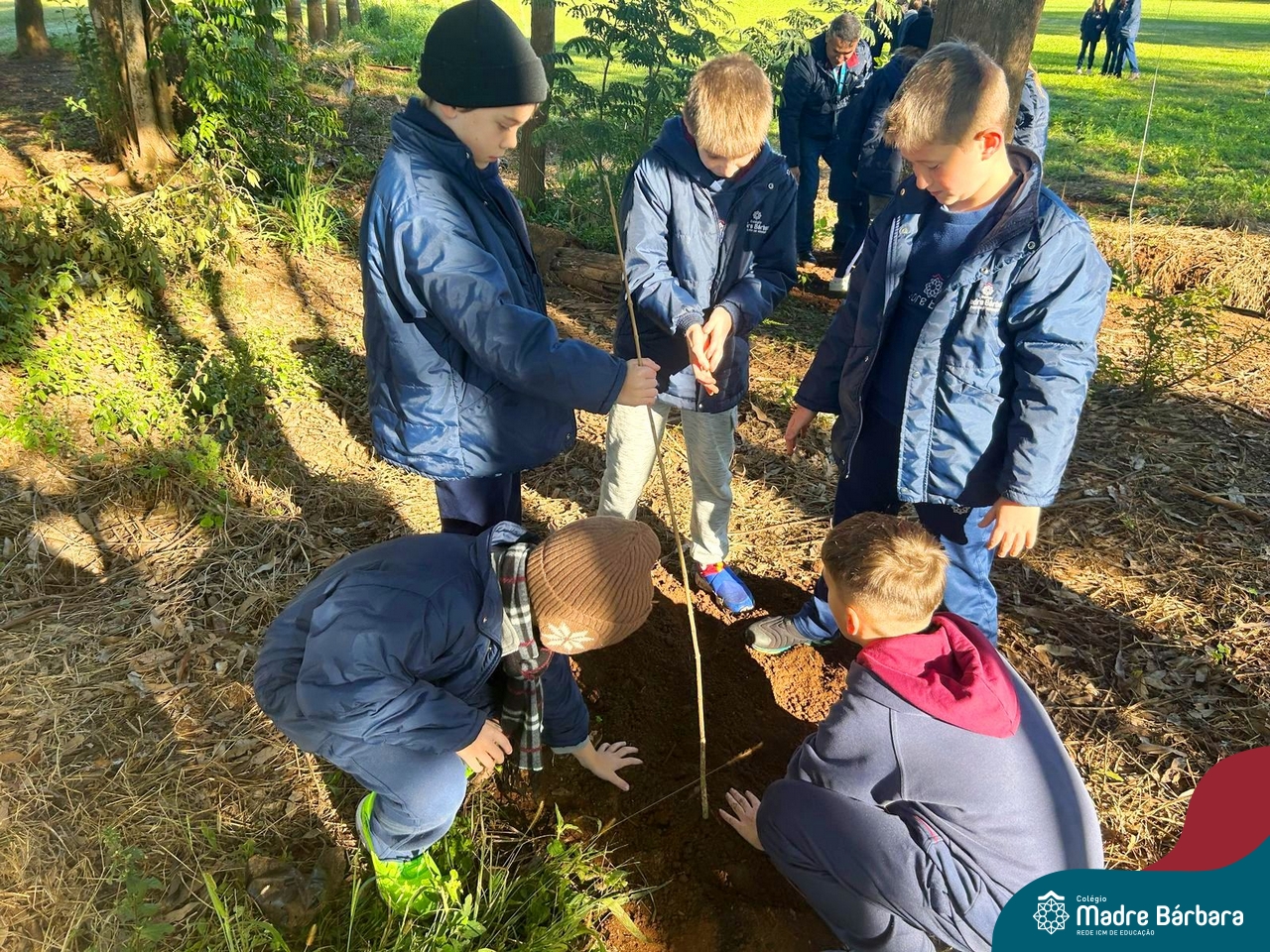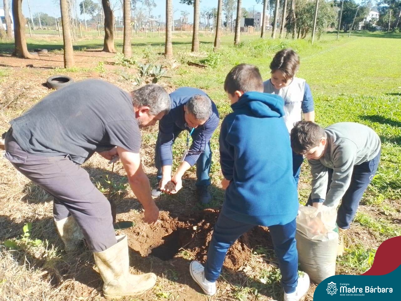 Os alunos dos 4º anos do Colégio Madre Bárbara participaram de uma ação especial de plantio de árvores nativas no espaço de formação do colégio. A atividade integra o projeto “Biomas Brasileiros”, que busca promover a conscientização ambiental por meio do estudo e da vivência prática.