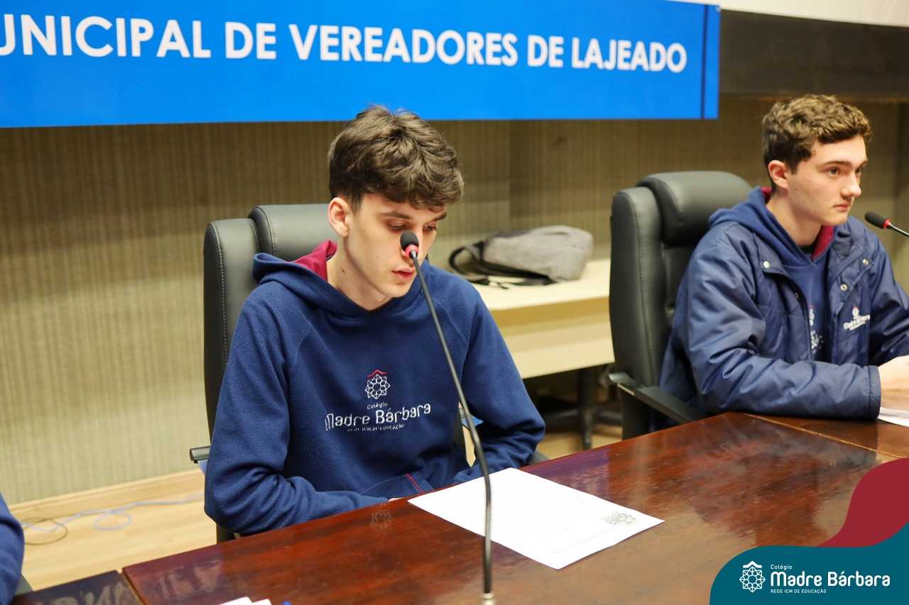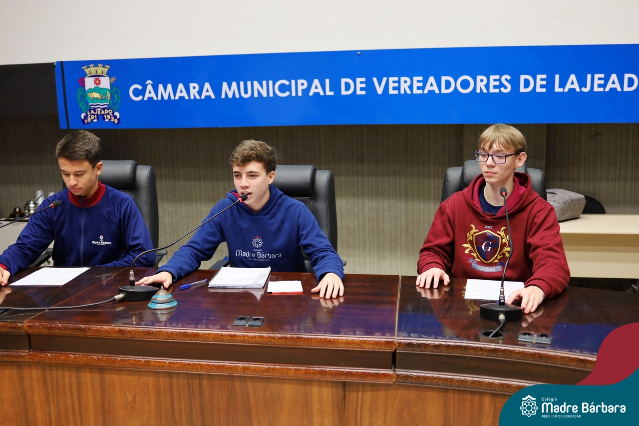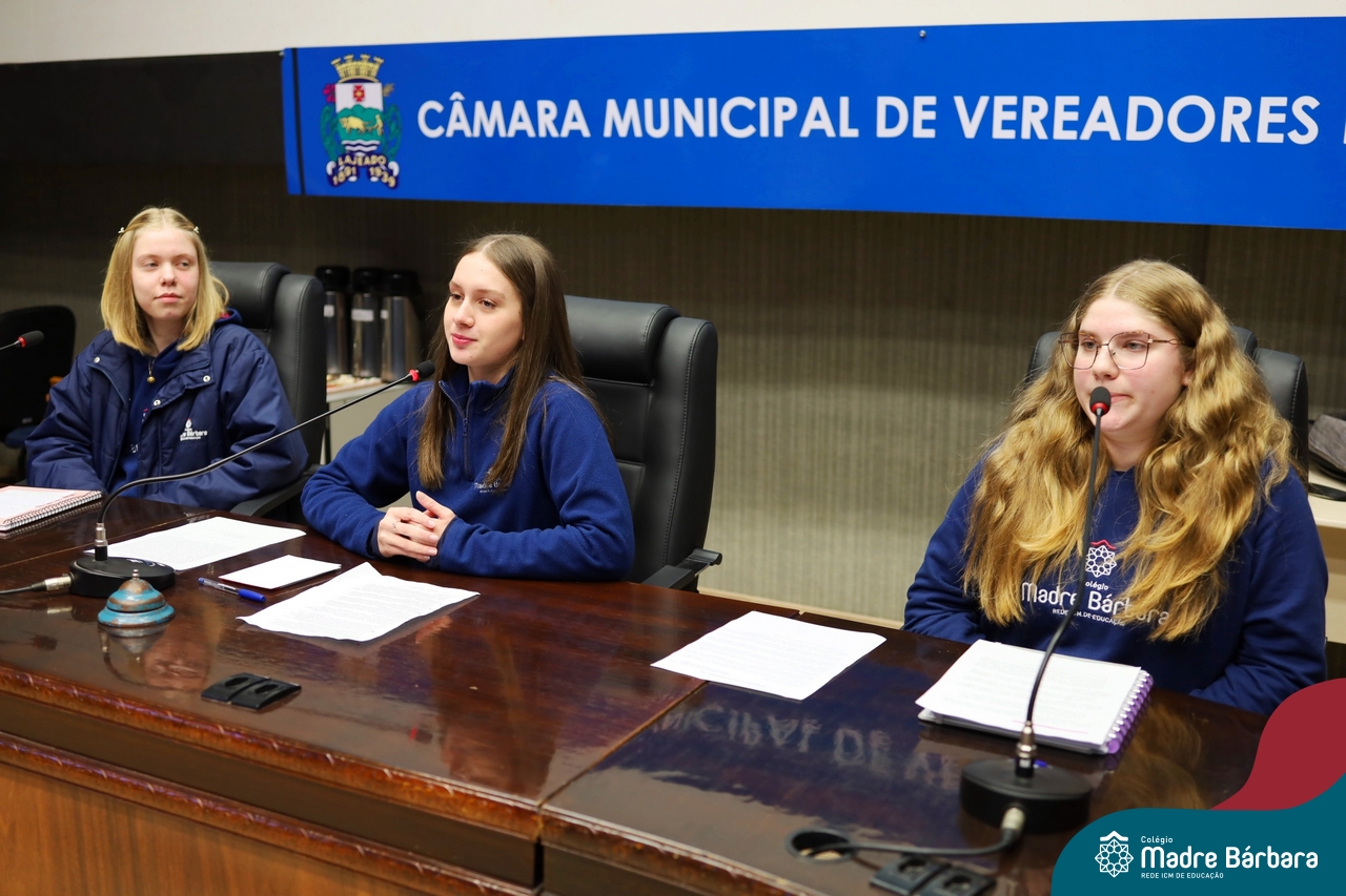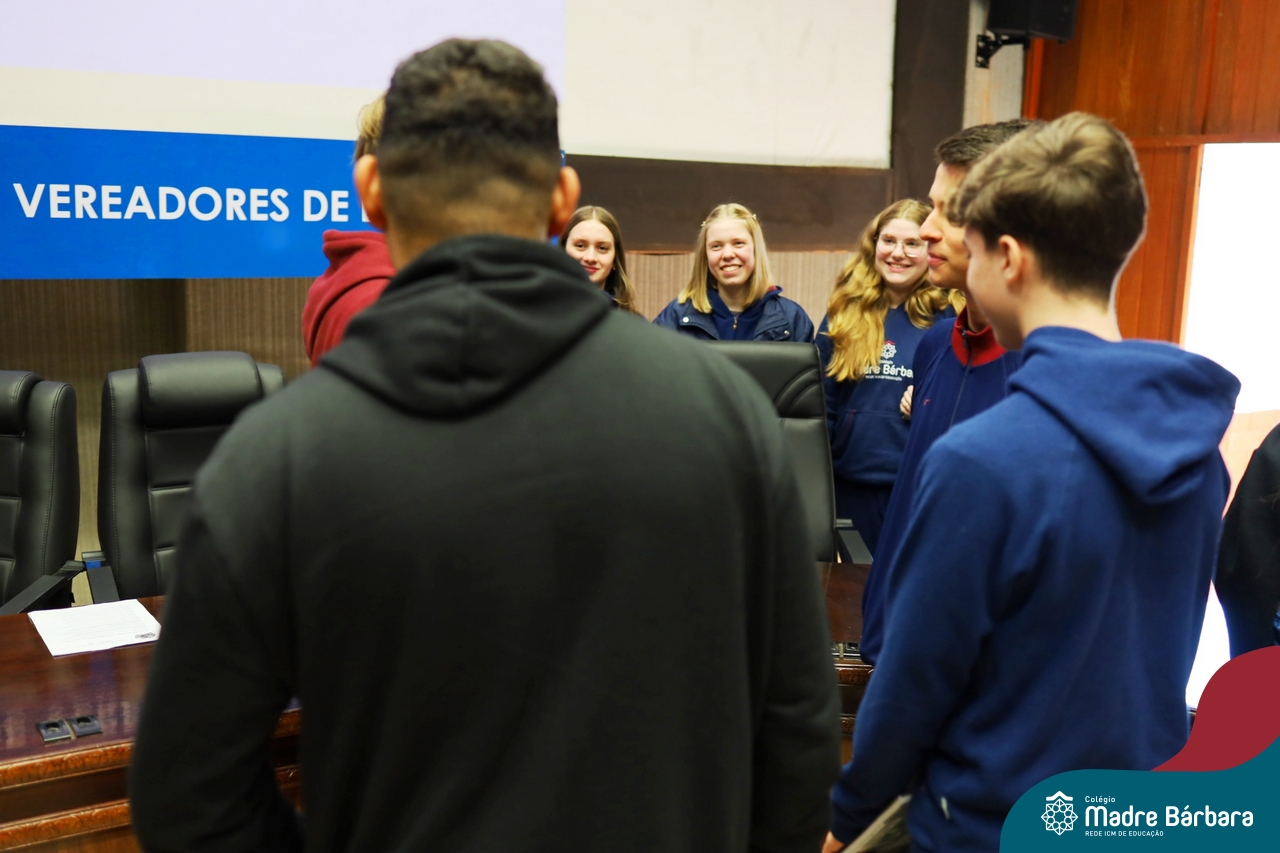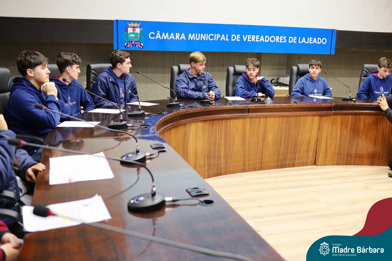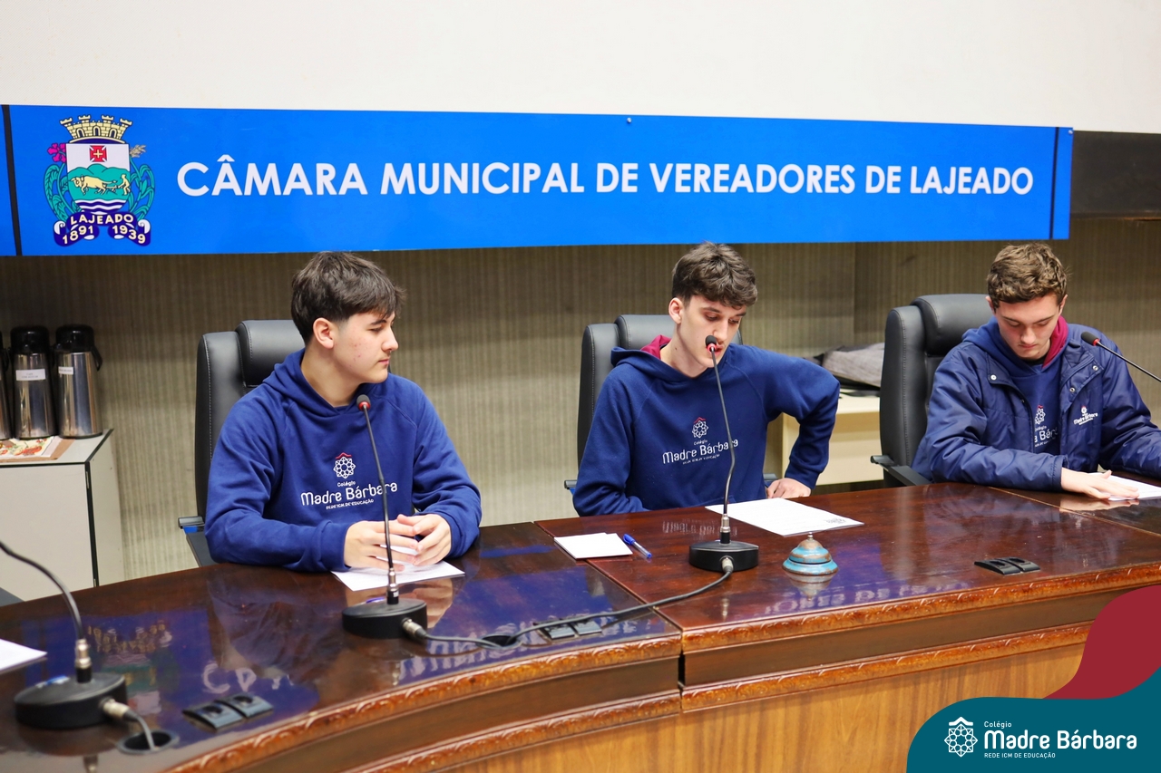 Na manhã desta segunda-feira, 07 de julho, os estudantes do 1º ano do Ensino Médio do Colégio Madre Bárbara – Rede ICM tiveram uma oportunidade única de participar de uma atividade que aproximou a teoria da prática legislativa. Durante a disciplina Modelos de Governança e Política, os alunos apresentaram seus Projetos de Lei na Câmara Municipal de Lajeado. A iniciativa foi proposta pelo professor de geografia, Lucas Schneider, que busca estimular o protagonismo juvenil, o pensamento crítico e a resiliência dos desafios da municipalidade.