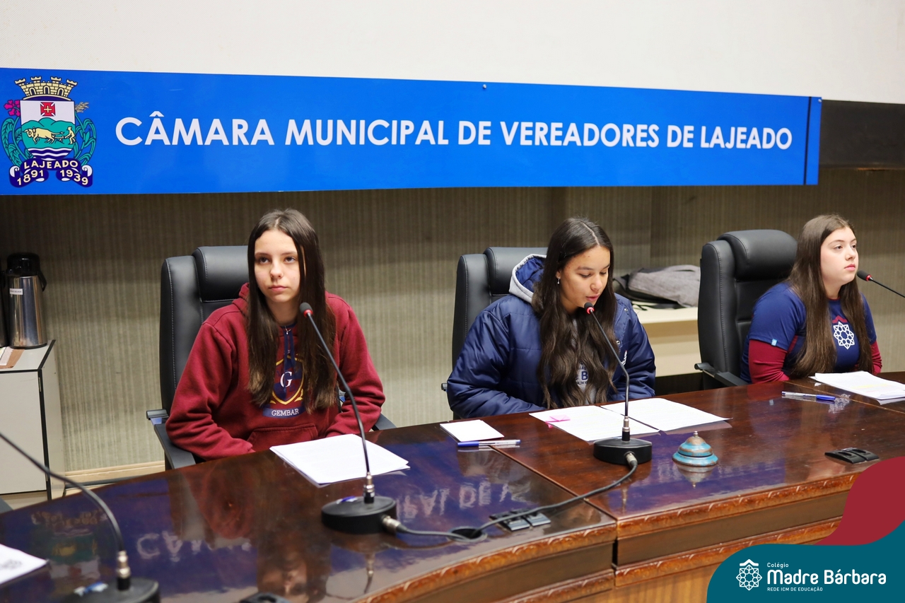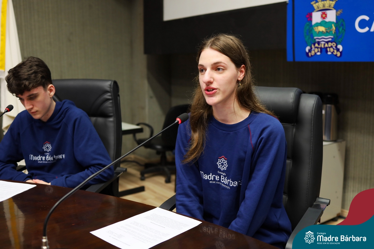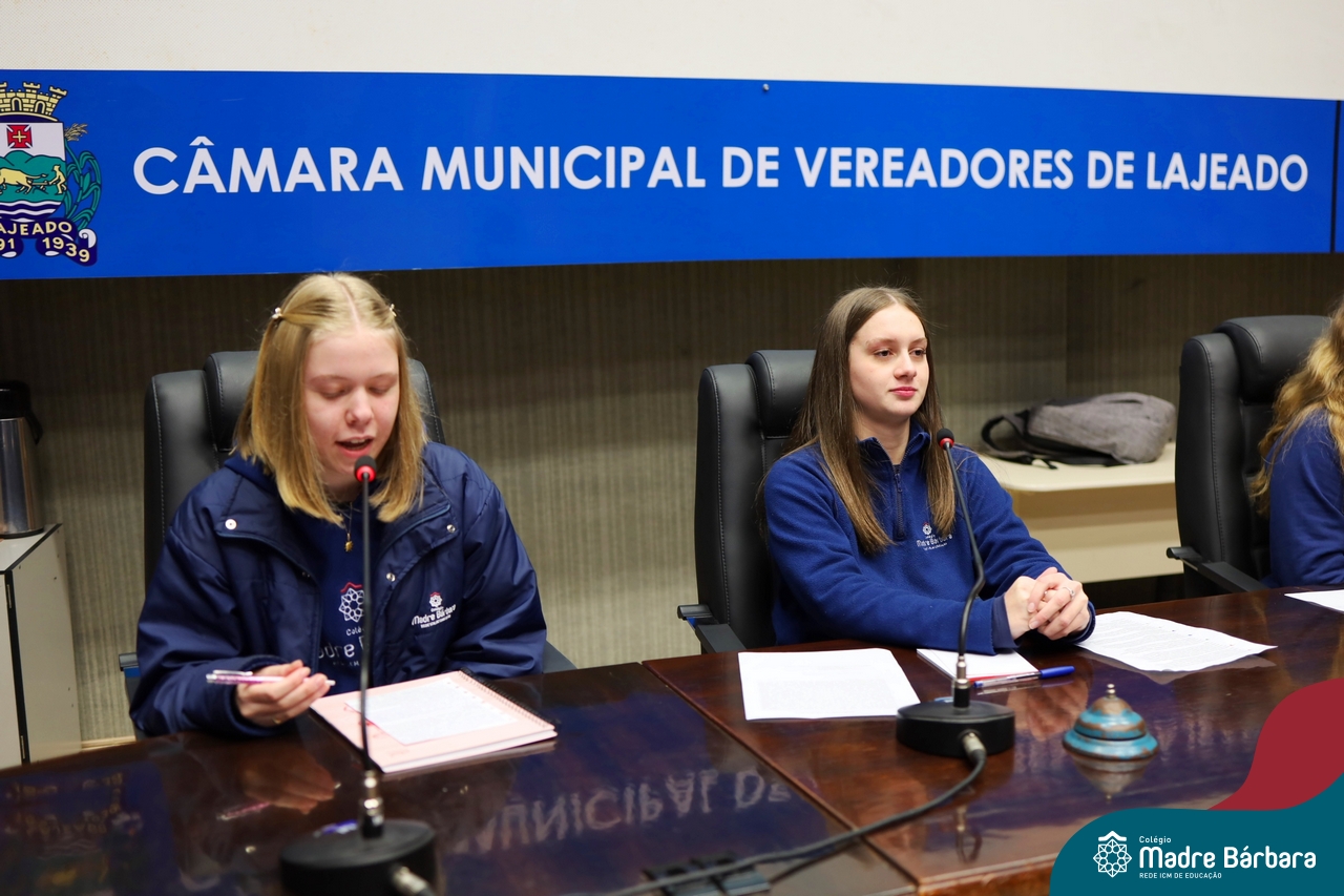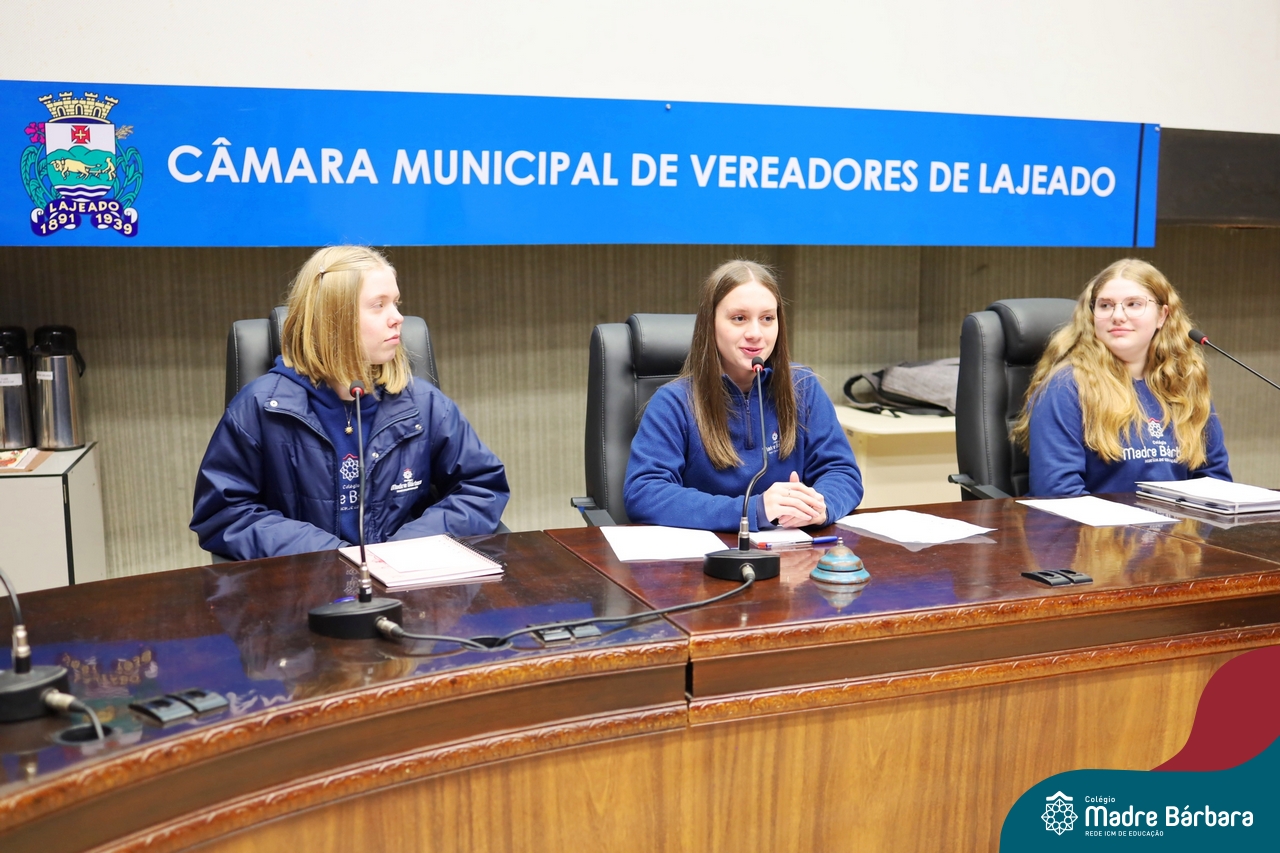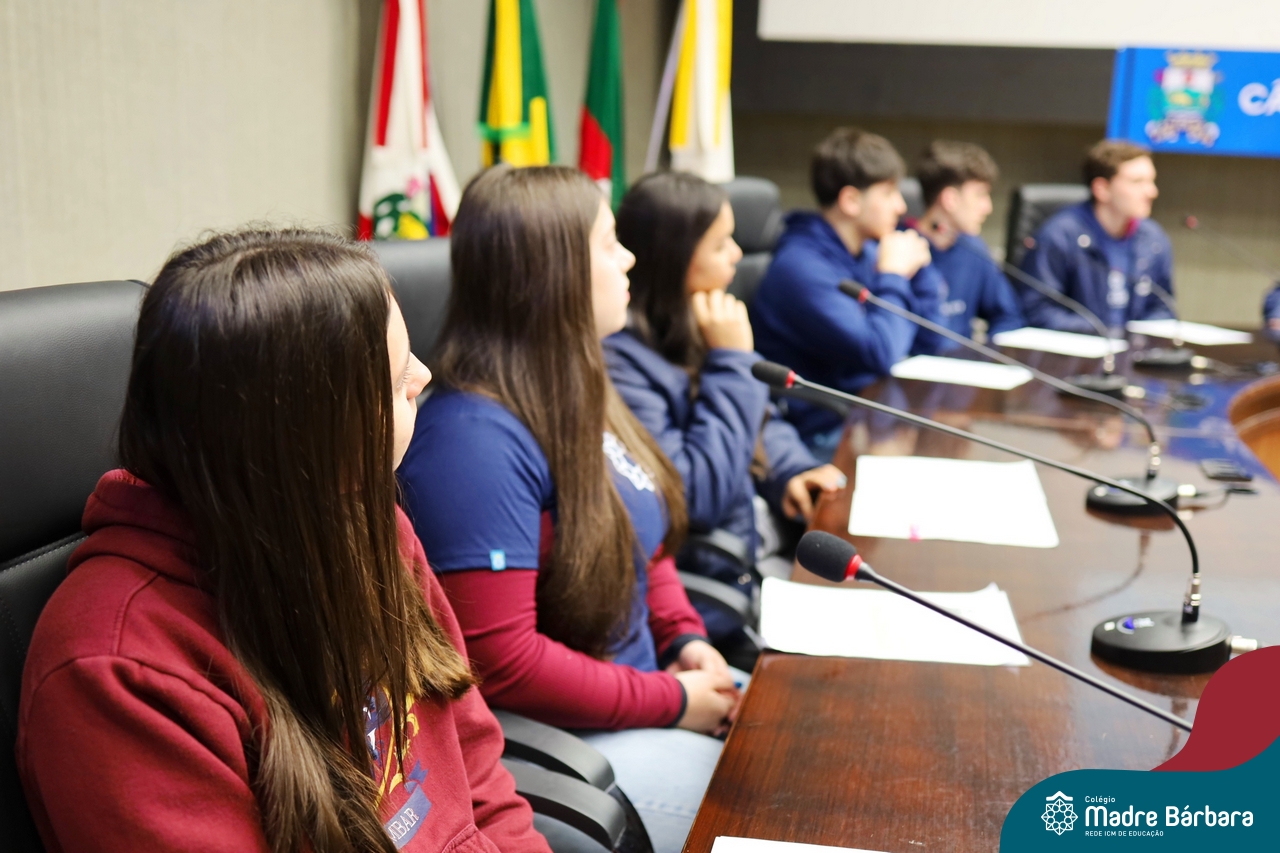 Na manhã desta segunda-feira, 07 de julho, os estudantes do 1º ano do Ensino Médio do Colégio Madre Bárbara – Rede ICM tiveram uma oportunidade única de participar de uma atividade que aproximou a teoria da prática legislativa. Durante a disciplina Modelos de Governança e Política, os alunos apresentaram seus Projetos de Lei na Câmara Municipal de Lajeado. A iniciativa foi proposta pelo professor de geografia, Lucas Schneider, que busca estimular o protagonismo juvenil, o pensamento crítico e a resiliência dos desafios da municipalidade.