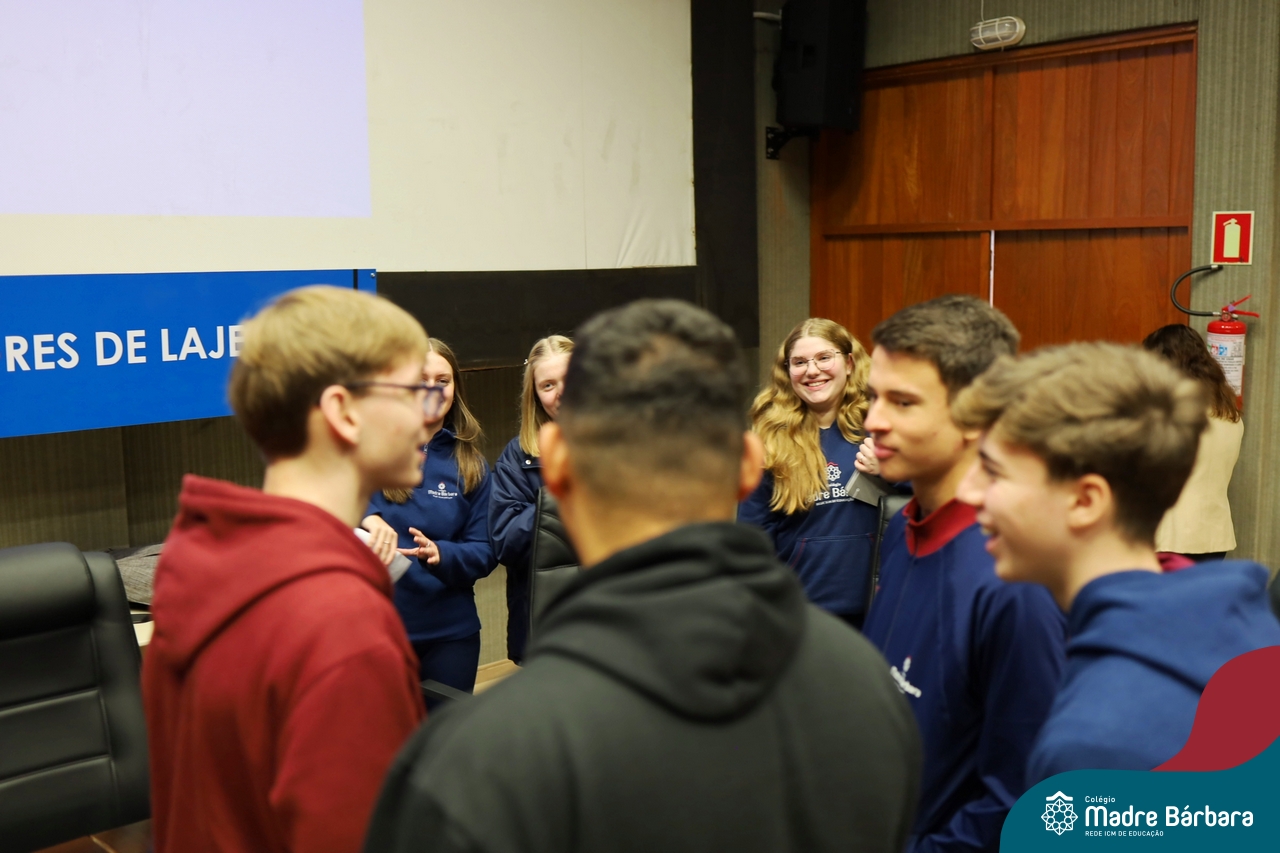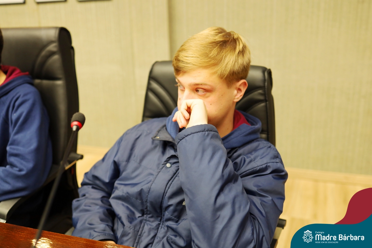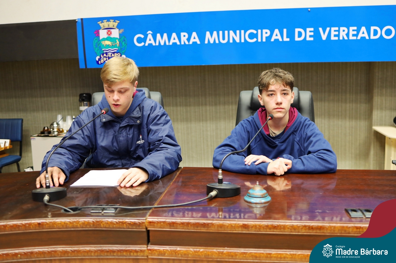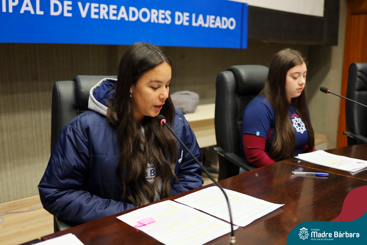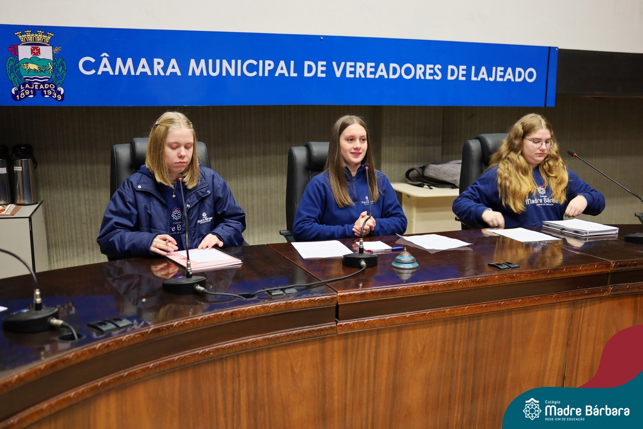 Na manhã desta segunda-feira, 07 de julho, os estudantes do 1º ano do Ensino Médio do Colégio Madre Bárbara – Rede ICM tiveram uma oportunidade única de participar de uma atividade que aproximou a teoria da prática legislativa. Durante a disciplina Modelos de Governança e Política, os alunos apresentaram seus Projetos de Lei na Câmara Municipal de Lajeado. A iniciativa foi proposta pelo professor de geografia, Lucas Schneider, que busca estimular o protagonismo juvenil, o pensamento crítico e a resiliência dos desafios da municipalidade.