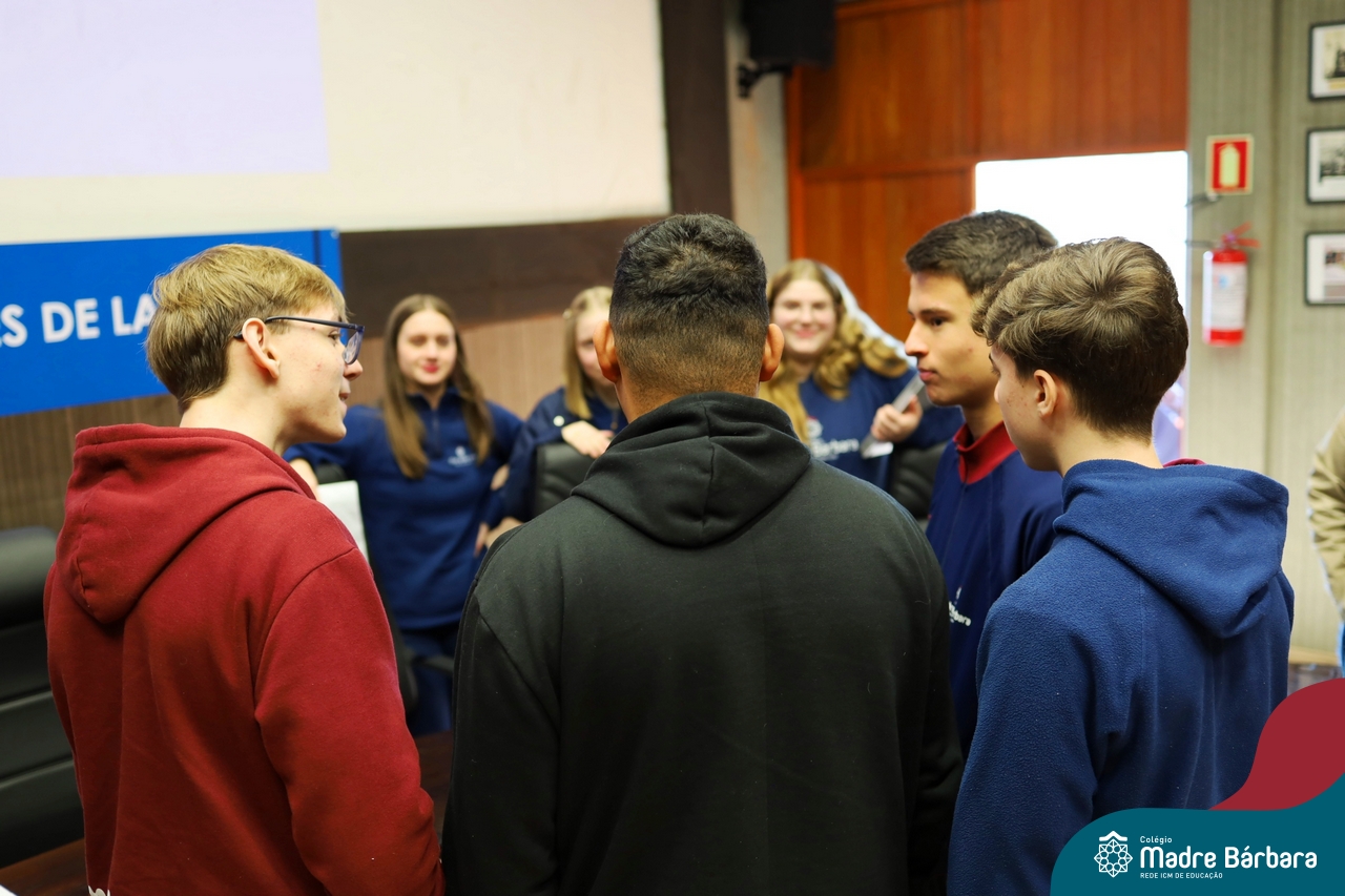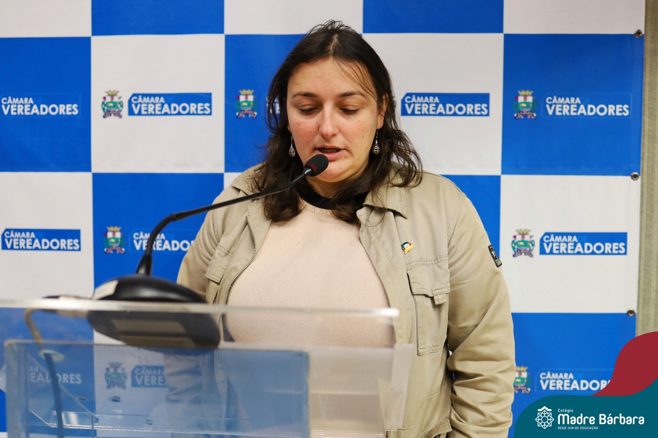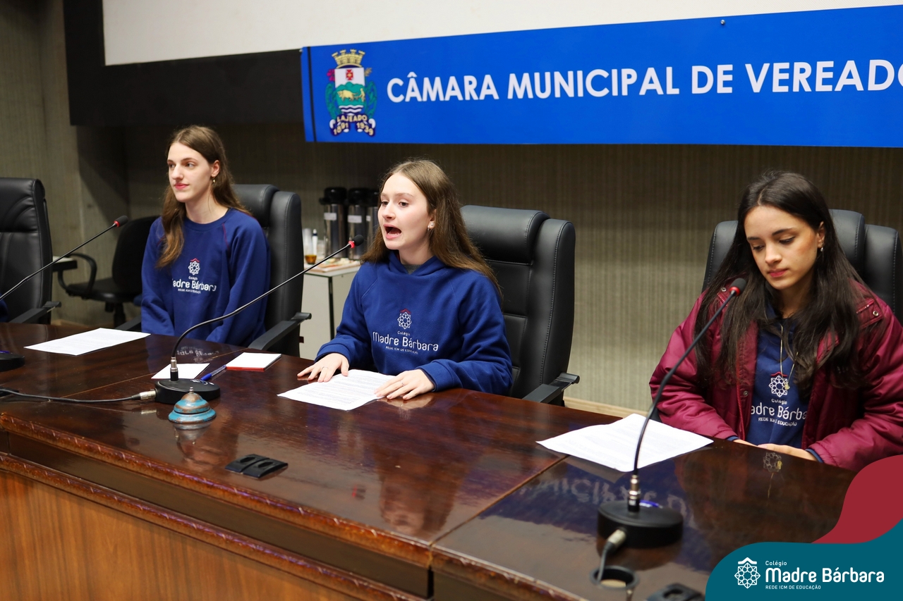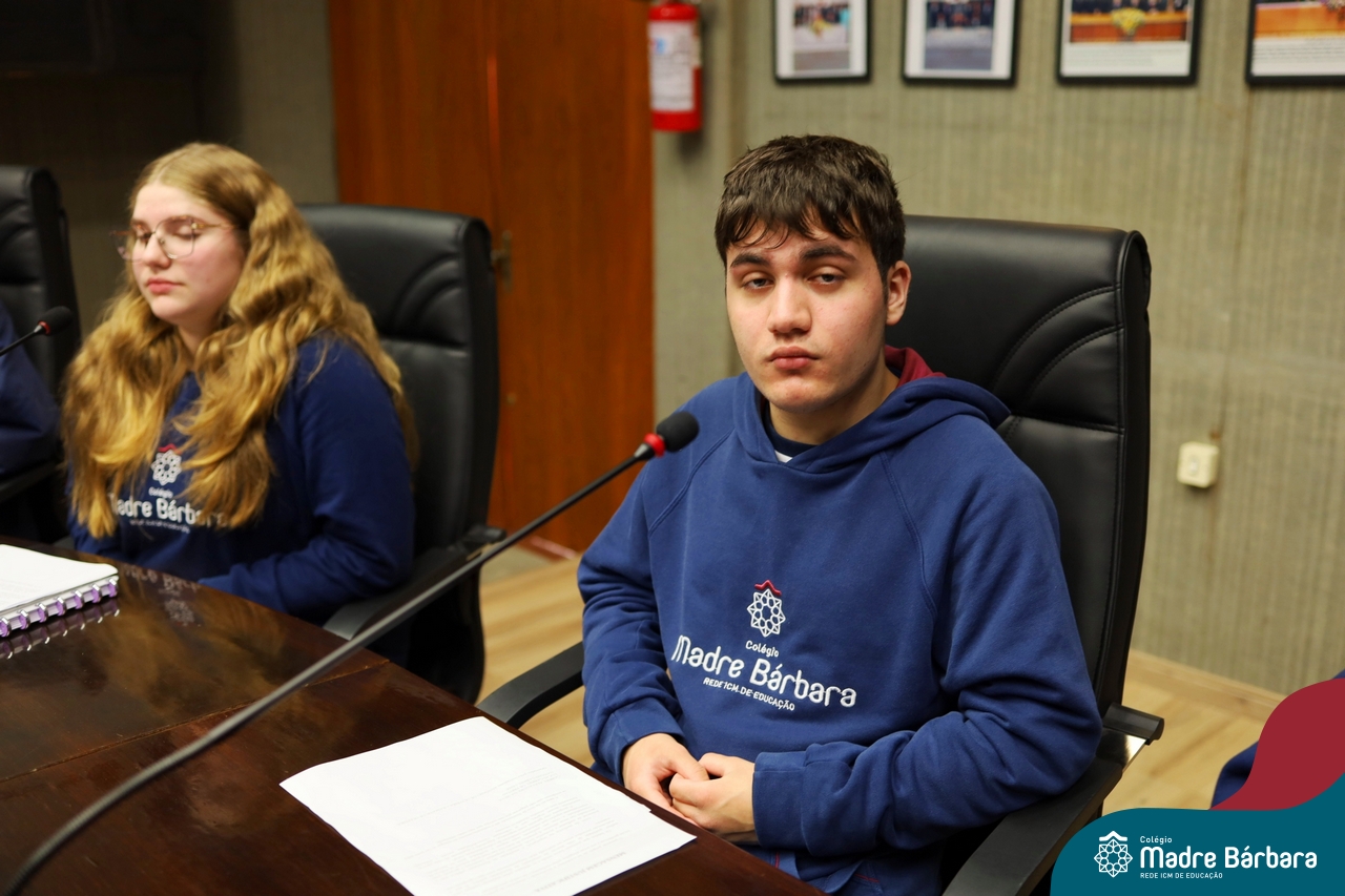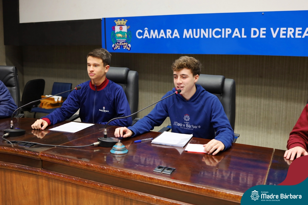 Na manhã desta segunda-feira, 07 de julho, os estudantes do 1º ano do Ensino Médio do Colégio Madre Bárbara – Rede ICM tiveram uma oportunidade única de participar de uma atividade que aproximou a teoria da prática legislativa. Durante a disciplina Modelos de Governança e Política, os alunos apresentaram seus Projetos de Lei na Câmara Municipal de Lajeado. A iniciativa foi proposta pelo professor de geografia, Lucas Schneider, que busca estimular o protagonismo juvenil, o pensamento crítico e a resiliência dos desafios da municipalidade.