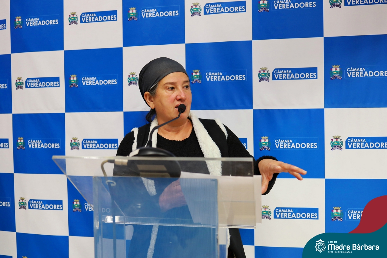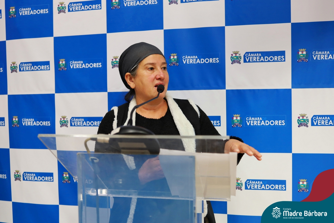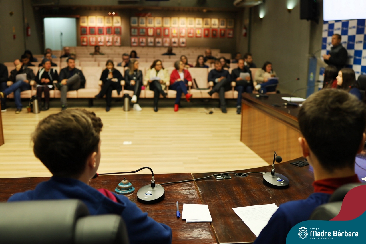 A diretora do Colégio, Maria Elena Jacques, também expressou sua gratidão aos vereadores e autoridades presentes, ressaltando o impacto positivo da atividade. “Vocês deram um exemplo de responsabilidade e humanidade, ensinando nossos alunos a criar projetos de lei, a entender suas responsabilidades e limitações, e a entender valores essenciais como a negociação e o compromisso social.”
