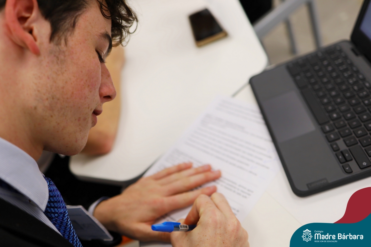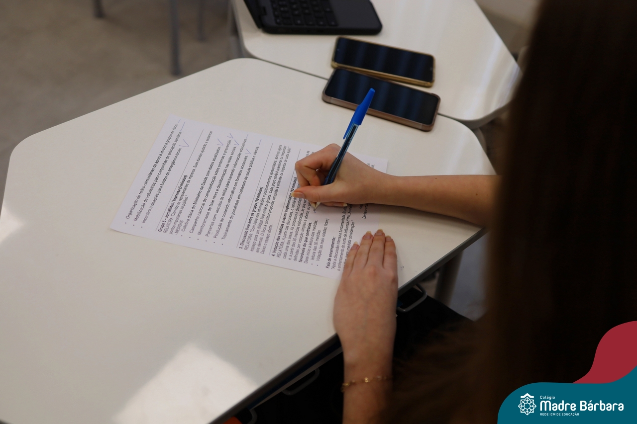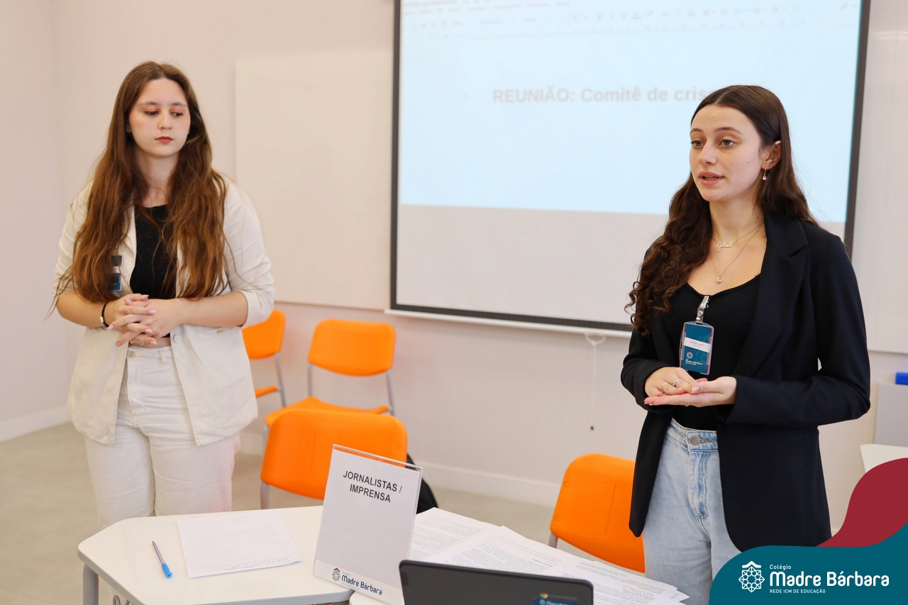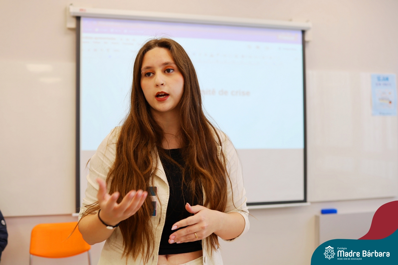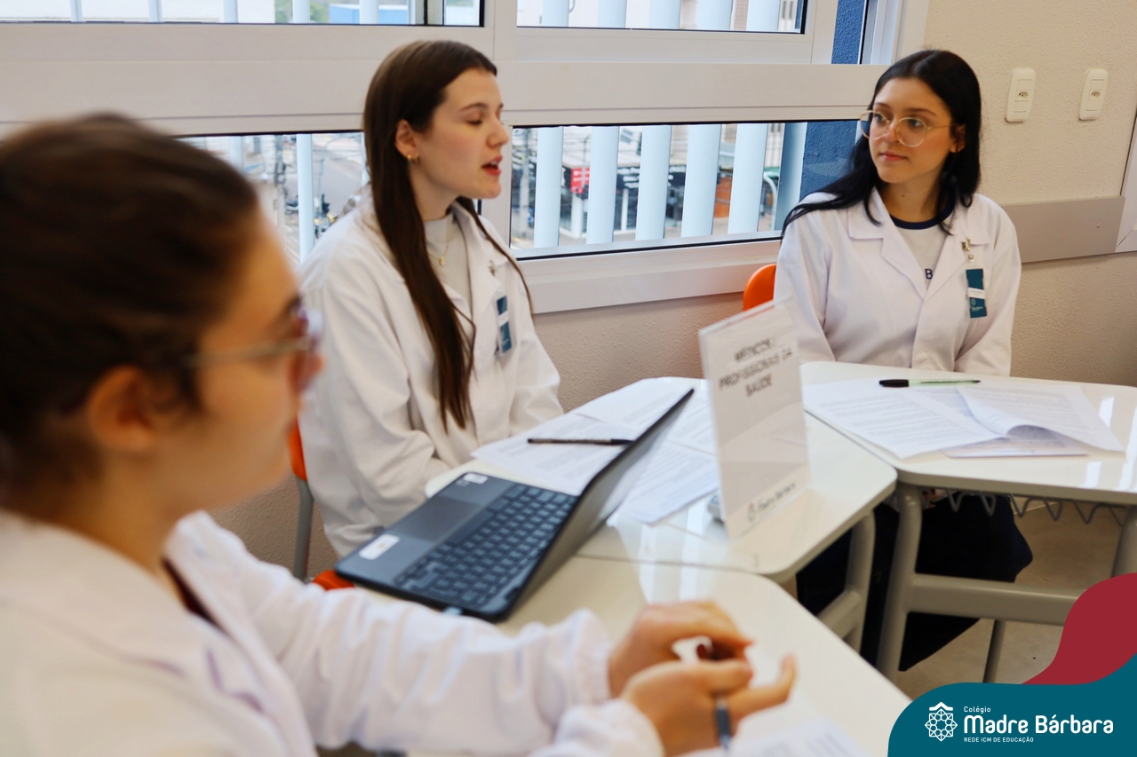 Na tarde de quarta-feira (09.07) os estudantes do 3º ano do Ensino Médio que estão participando do Itinerário Formativo “Casos clínicos em saúde humana” receberam um desafio de uma simulação através de uma “comunicação oficial” solicitando a organização de um “Comitê de Crise” para que cada estado e município tenham as definições quanto a uma superlotação de hospitais e uma epidemia de influenza. Para contextualizar, a professora Ângela Lenz apresentou matérias veiculadas tanto na Independente quanto na A Hora, quanto à lotação que teve na região há algum tempo atrás, no Hospital Bruno Born (HBB) em relação a casos de influenza.