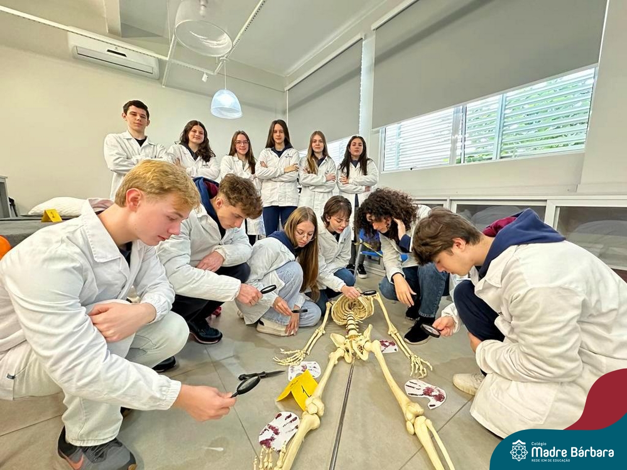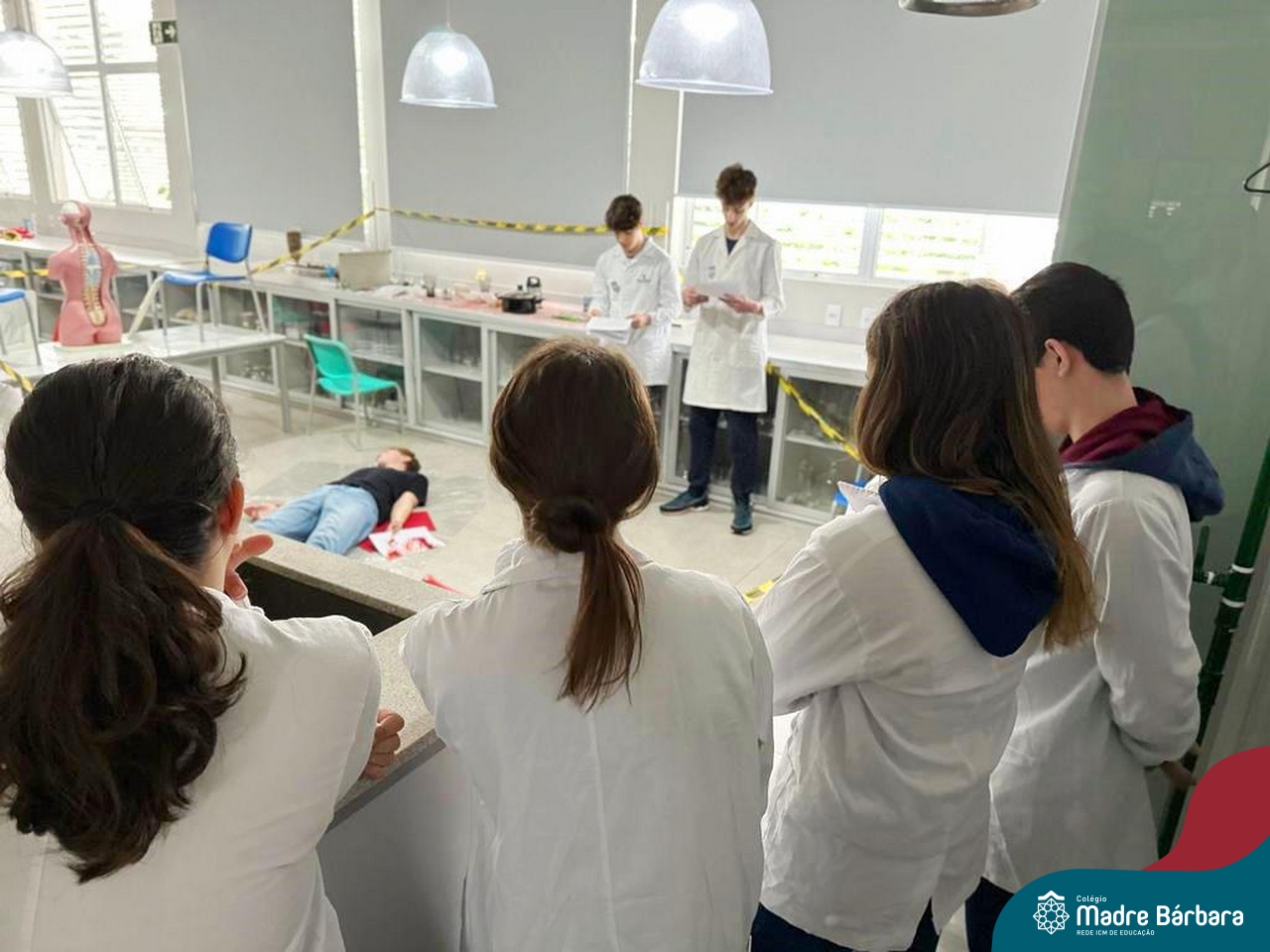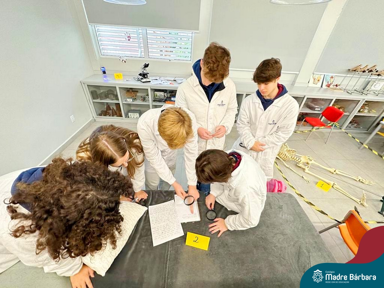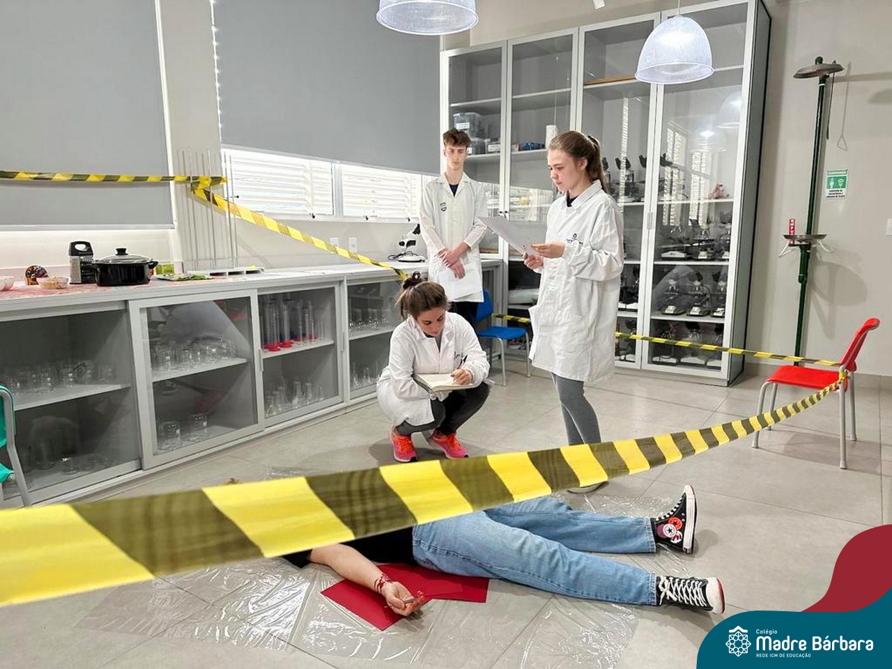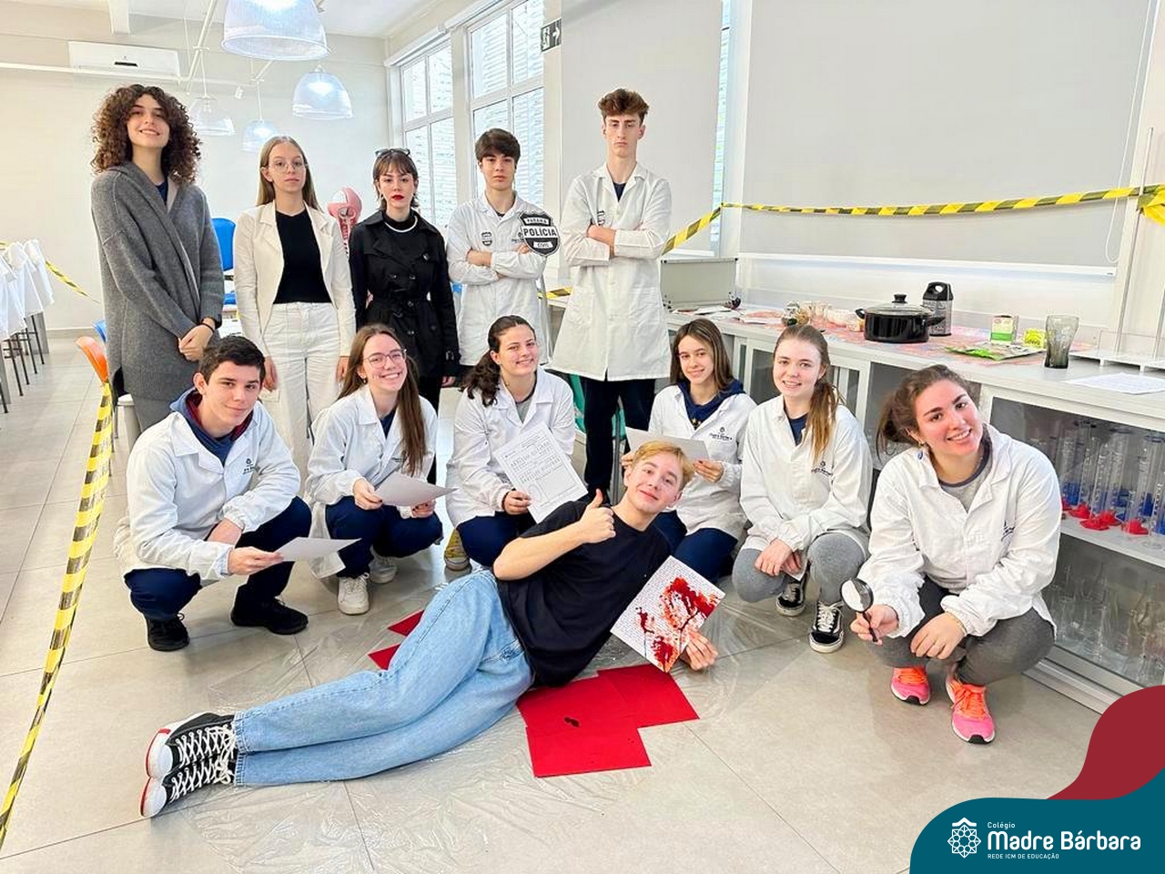 A turma do 2º ano do Ensino Médio, que está participando do Itinerário de Investigação Forense, do Novo Ensino Médio, surpreendeu ao montar cenas de crimes. Durante o semestre, diversos foram os aprendizados para que chegassem a este momento. Acompanhados pela professora responsável pelo Itinerário, Ângela Lenz, conversaram sobre direito com o promotor de justiça, Carlos Fioriolli, aprenderam a fazer coleta das impressões digitais para fazer as análises probatórias criminais e também estiveram no Posto Médico Legal (PML) de Lajeado, conversando com o médico perito, Bruno Bersch Lieske, onde compreenderam melhor as bases técnicas para a análise e julgamento de causas criminais.