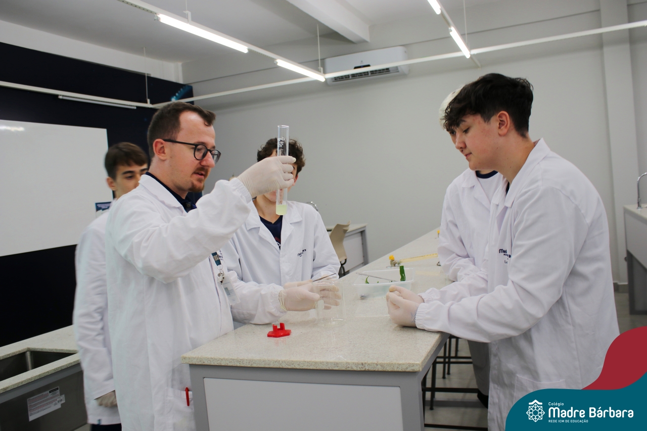 Os estudantes da 1ª série do Novo Ensino Médio foram desafiados a relacionar o uso de produtos naturais na formulação de cosméticos. A partir da sua pesquisa, os estudantes formularam um xampu à base de produtos naturais, fazendo uso de produtos regionais. A proposta de ensino faz parte do itinerário formativo, do Novo Ensino Médio, Investigação Científica: da Cosmetologia à Farmácia e é coordenada pelo professor de Química Aliar Anacleto Jung.