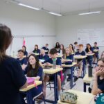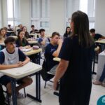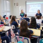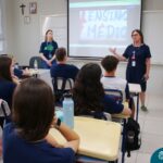 Nesta terça-feira (05.11) os estudantes dos 9ºs anos do Ensino Fundamental – Anos Finais puderam ter mais um “gostinho” de como será o Ensino Médio do Colégio. O Projeto “Partiu Ensino Médio” busca apresentar aos alunos a estrutura do Ensino Médio bem como as experiências que irão vivenciar em 2025. A ação é organizada pela coordenação pedagógica, marketing e psicologia escolar do Colégio Madre Bárbara – Rede ICM, proporcionou aos alunos um bate-papo com os alunos sobre a dedicação e foco nos estudos nesta reta final, valorizando a trajetória de cada um. Foi apresentado um vídeo, com depoimentos de alunos que já estão no Ensino Médio no qual compartilharam as expectativas, as oportunidades e os impactos na vida de cada um. Na ocasião, os estudantes foram convidados a conhecer as instalações do 4º pavimento onde serão as salas do Ensino Médio no próximo ano. Valeu galera. E aí, partiu Ensino Médio?