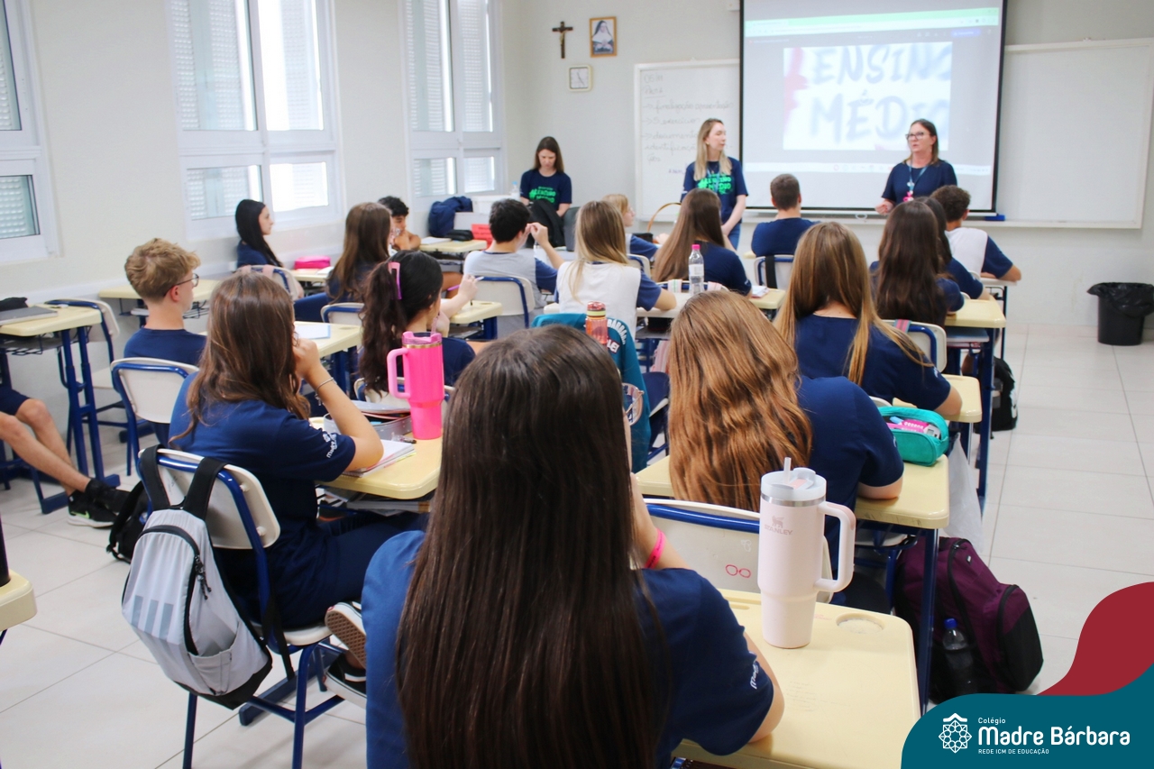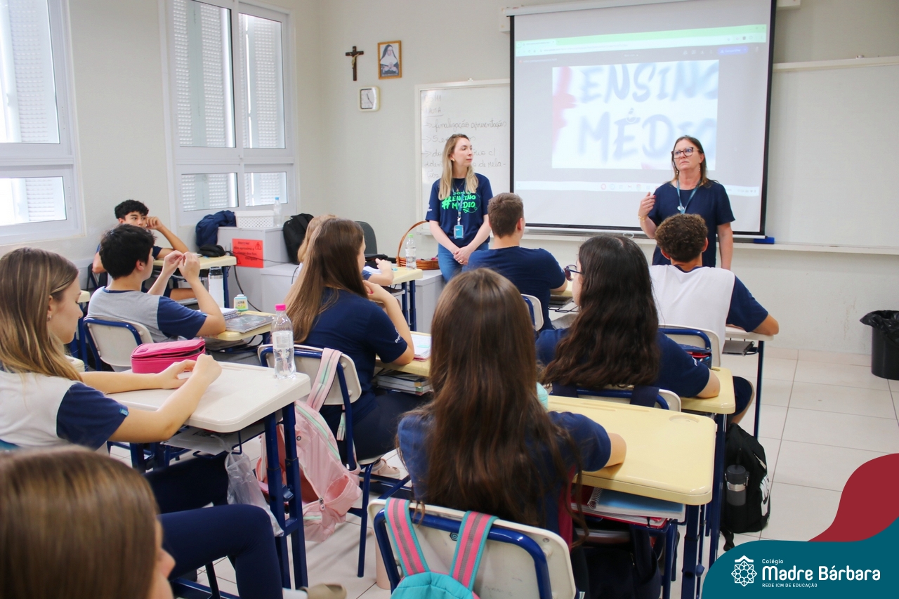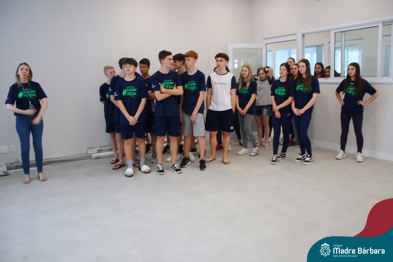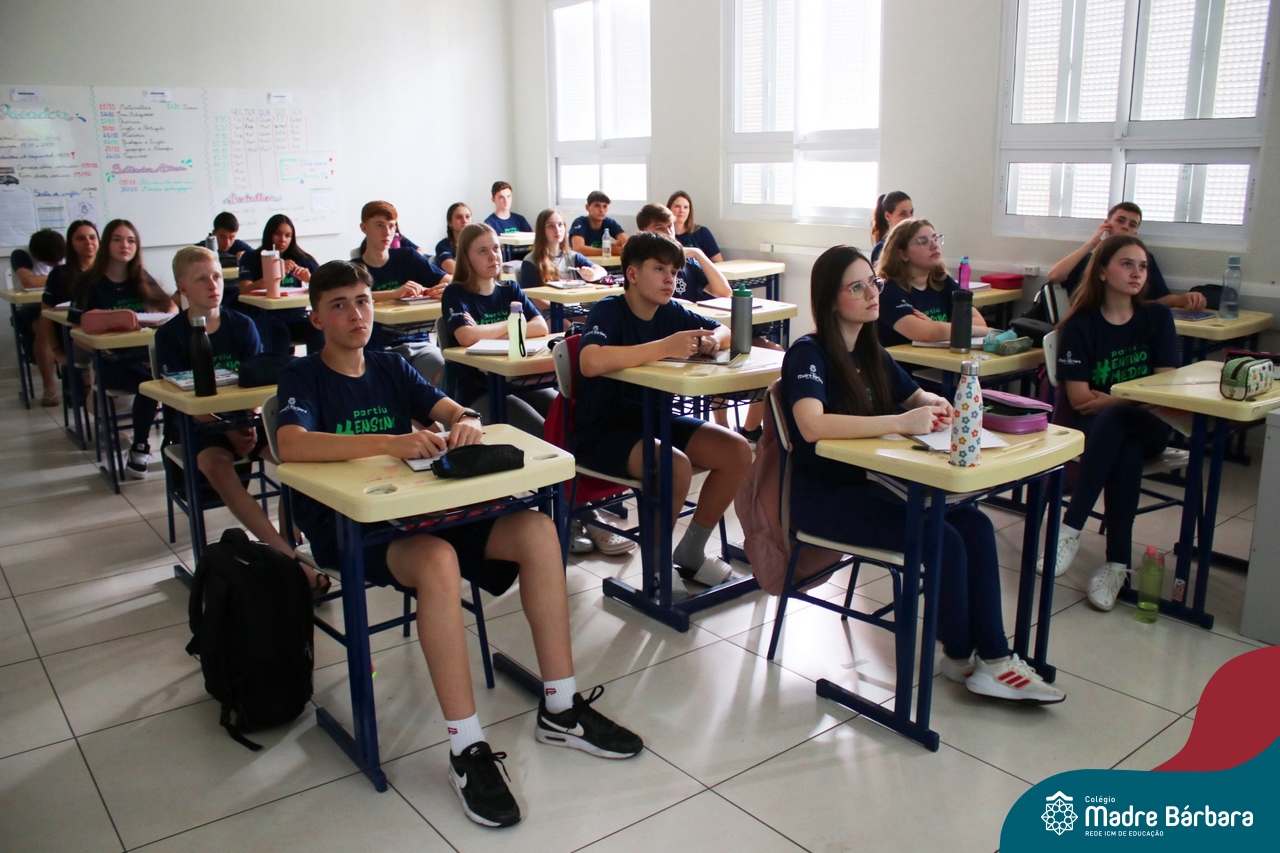 Nesta terça-feira (05.11) os estudantes dos 9ºs anos do Ensino Fundamental – Anos Finais puderam ter mais um “gostinho” de como será o Ensino Médio do Colégio. O Projeto “Partiu Ensino Médio” busca apresentar aos alunos a estrutura do Ensino Médio bem como as experiências que irão vivenciar em 2025. A ação é organizada pela coordenação pedagógica, marketing e psicologia escolar do Colégio Madre Bárbara – Rede ICM, proporcionou aos alunos um bate-papo com os alunos sobre a dedicação e foco nos estudos nesta reta final, valorizando a trajetória de cada um. Foi apresentado um vídeo, com depoimentos de alunos que já estão no Ensino Médio no qual compartilharam as expectativas, as oportunidades e os impactos na vida de cada um. Na ocasião, os estudantes foram convidados a conhecer as instalações do 4º pavimento onde serão as salas do Ensino Médio no próximo ano. Valeu galera. E aí, partiu Ensino Médio?